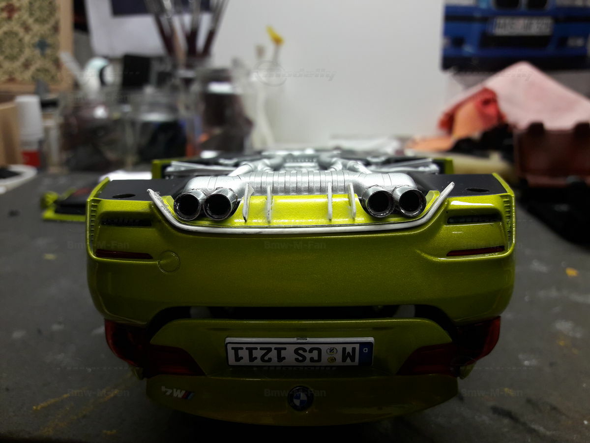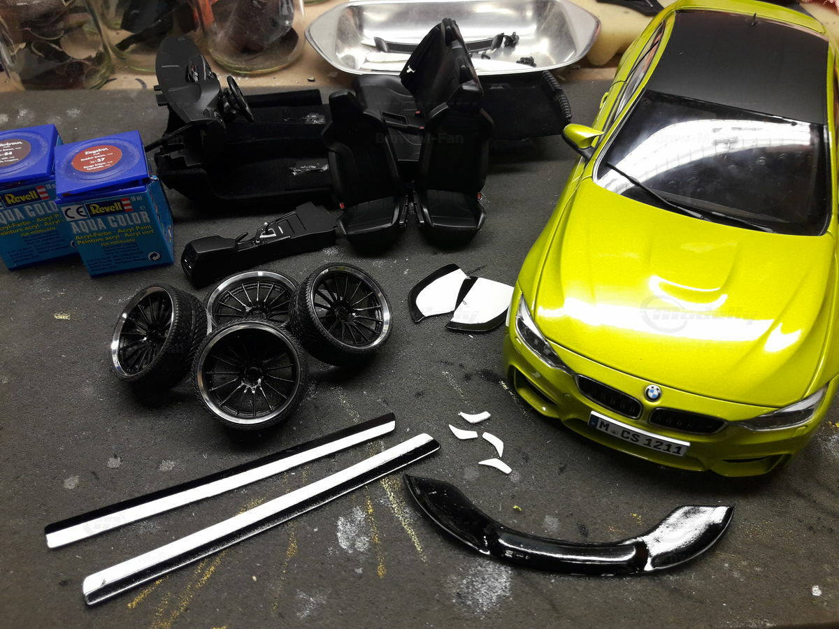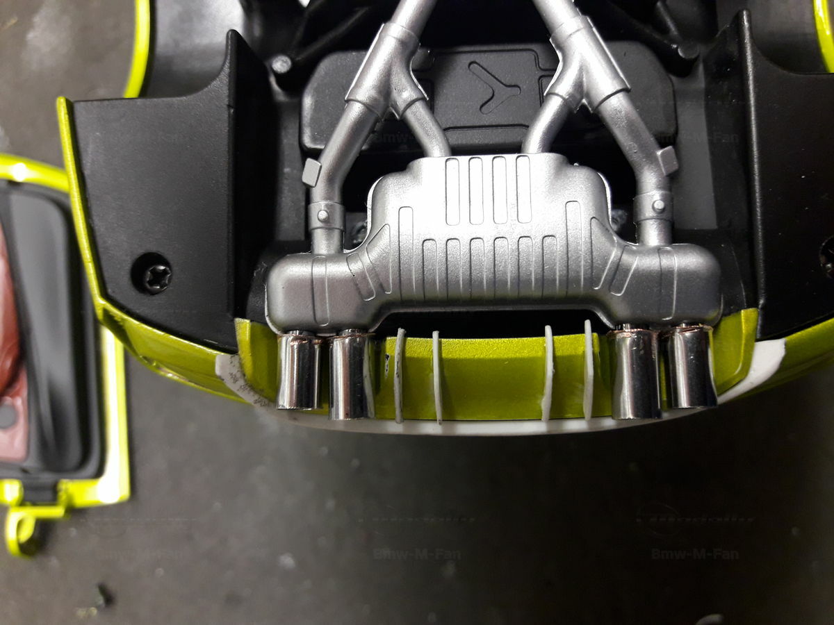 In addition to the paint job and tuning modifications, the model also features detailed and specialized components like the wheels. Unfortunately, the exact manufacturer and model of the wheels are not clearly identifiable in the pictures, but this doesn’t diminish the fascination and collector's value of the model. This Paragon Models 1/18 scale model car, crafted from high-quality Diecast material, is a unique piece for any collection and a tribute to the impressive BMW F82 M4.