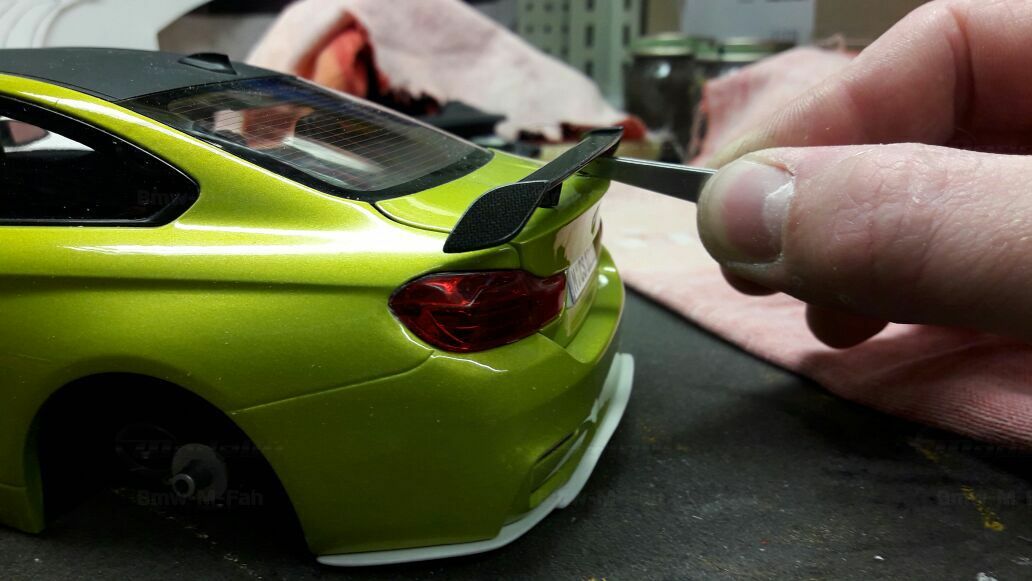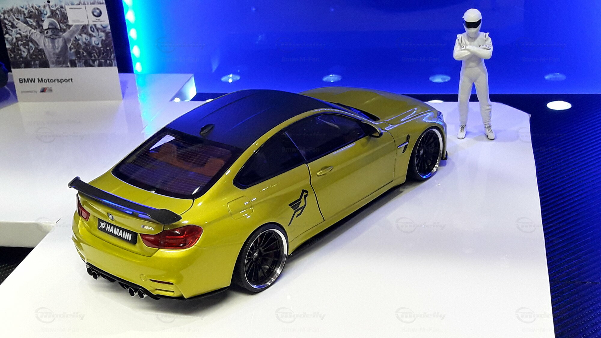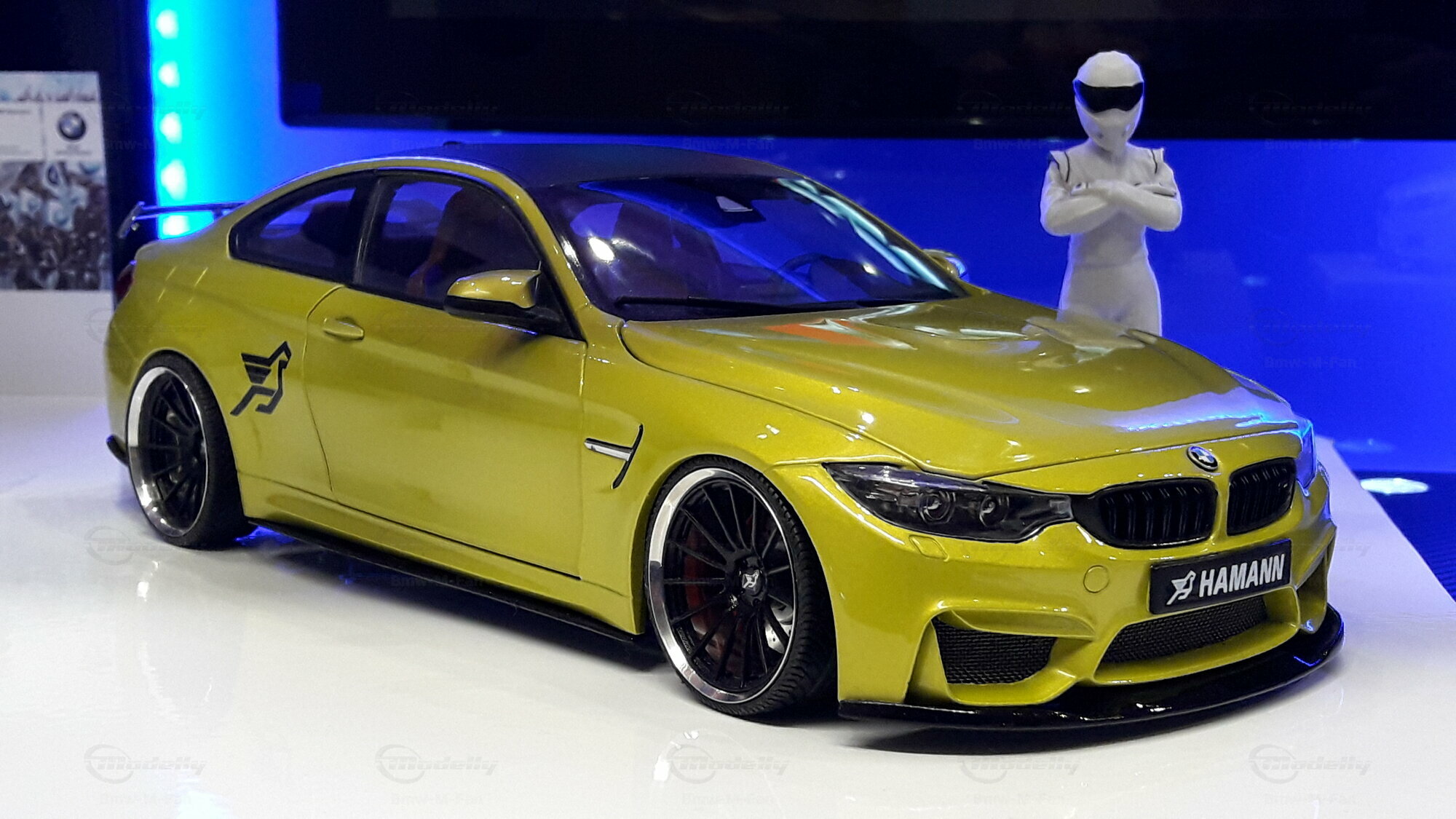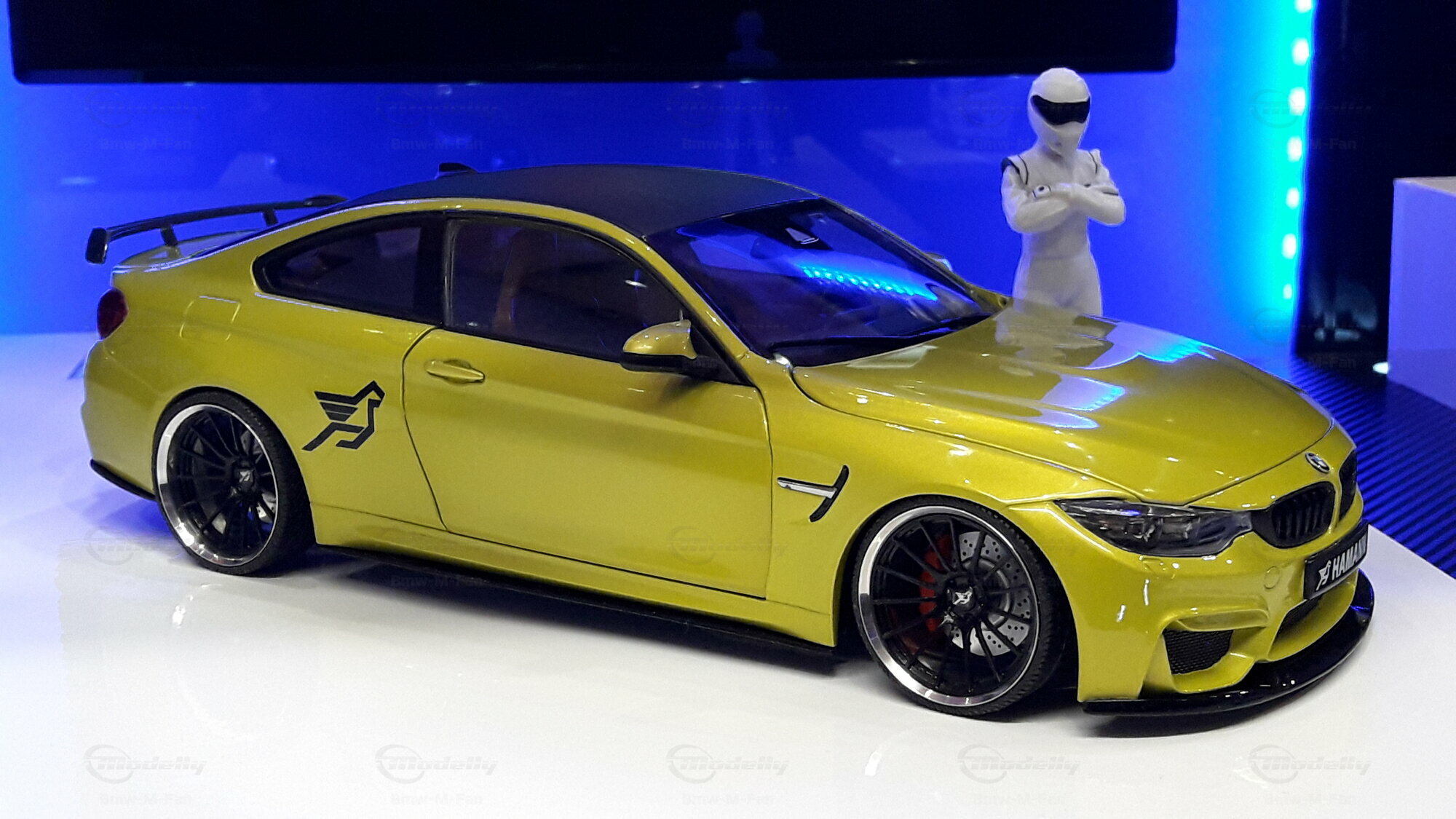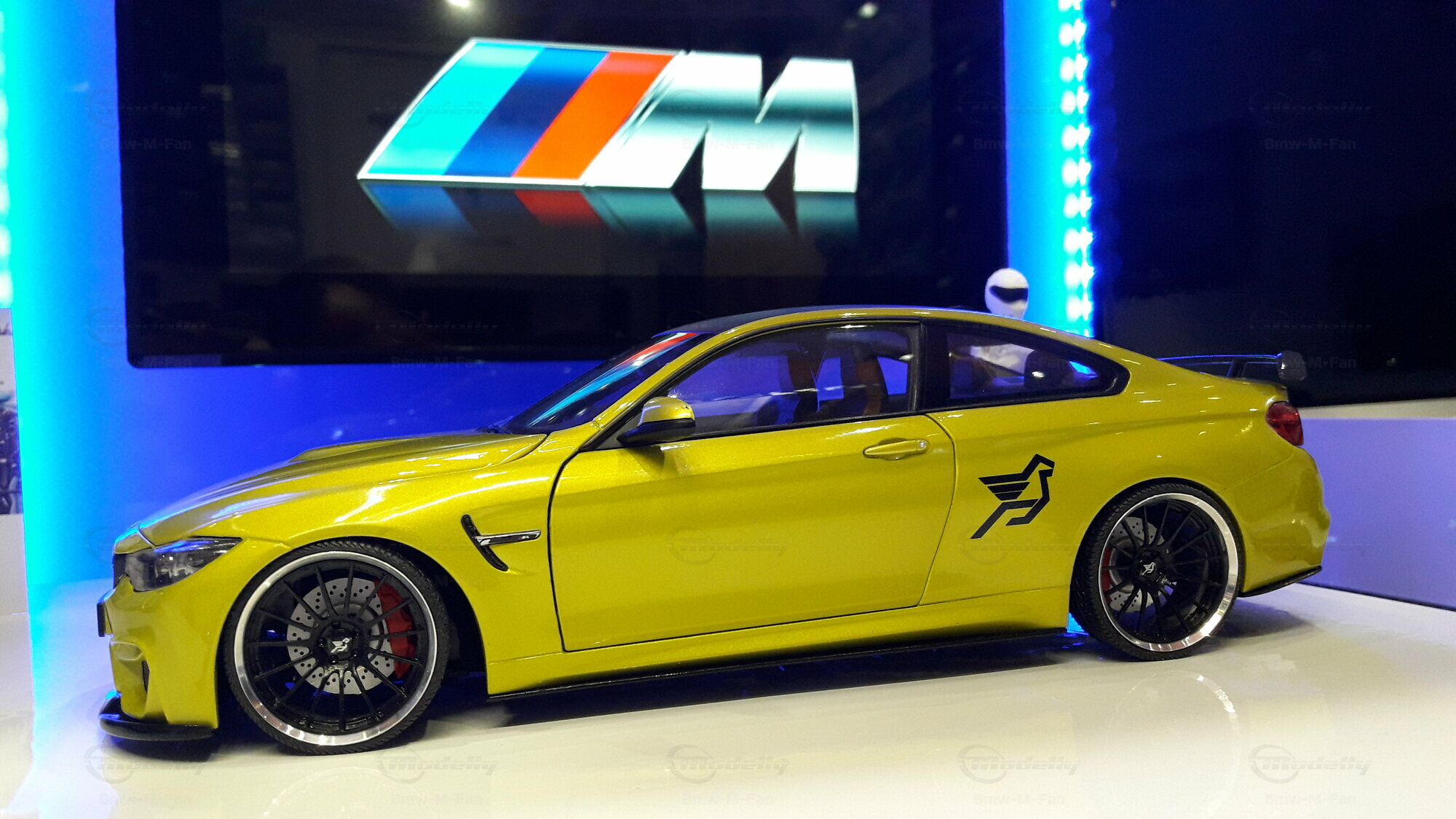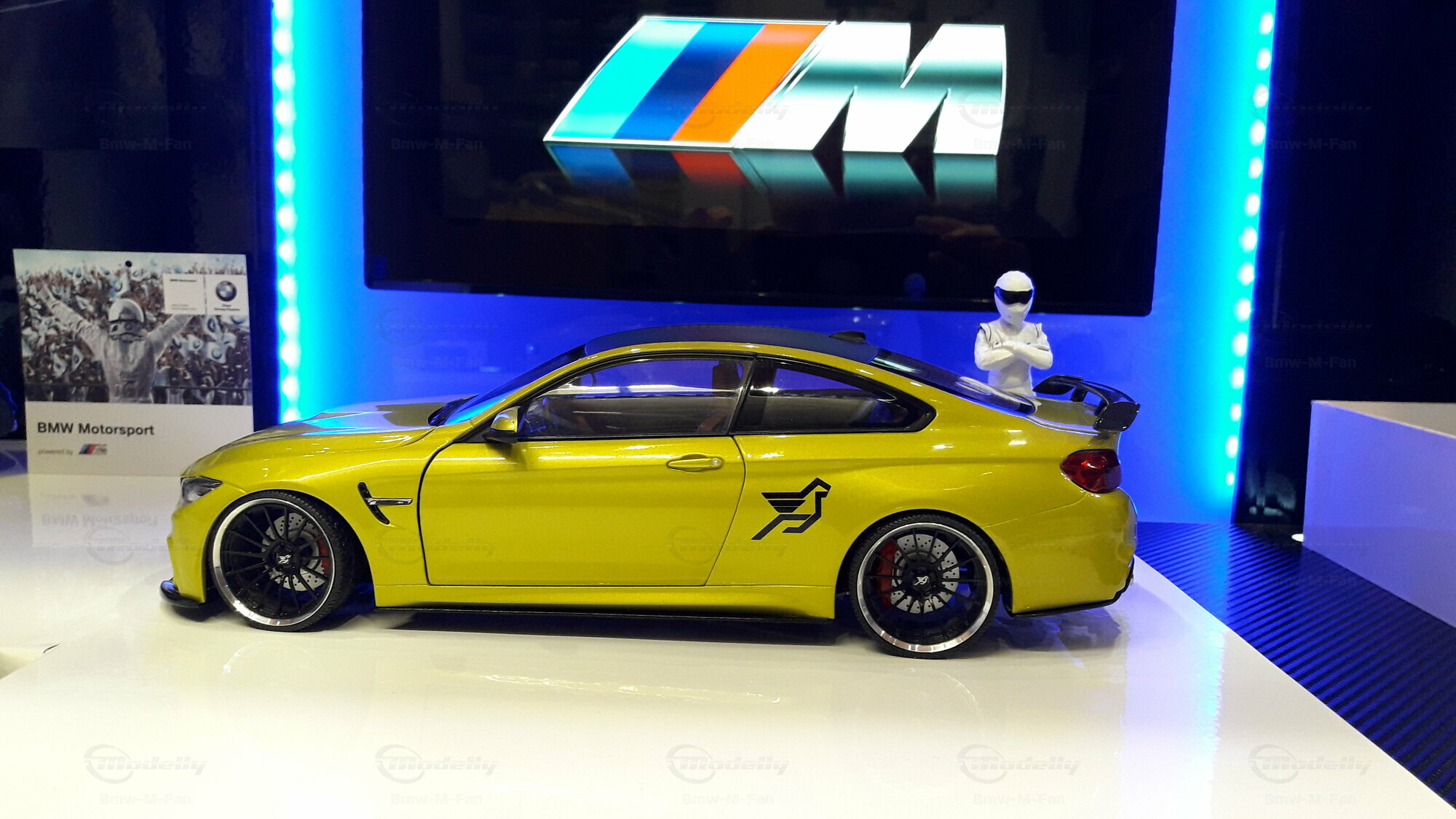The miniature depicted is a 1/18 scale model car manufactured by Paragon Models. The miniature is based on the BMW F82 M4 and is crafted from Diecast material. These model cars are popular among collectors for their detailed replication and high-quality craftsmanship. It should be noted that this specific model has been modified post-production and no longer represents the original product from Paragon Models. For the collector, this presents a unique piece with individual customizations that make the model stand out.