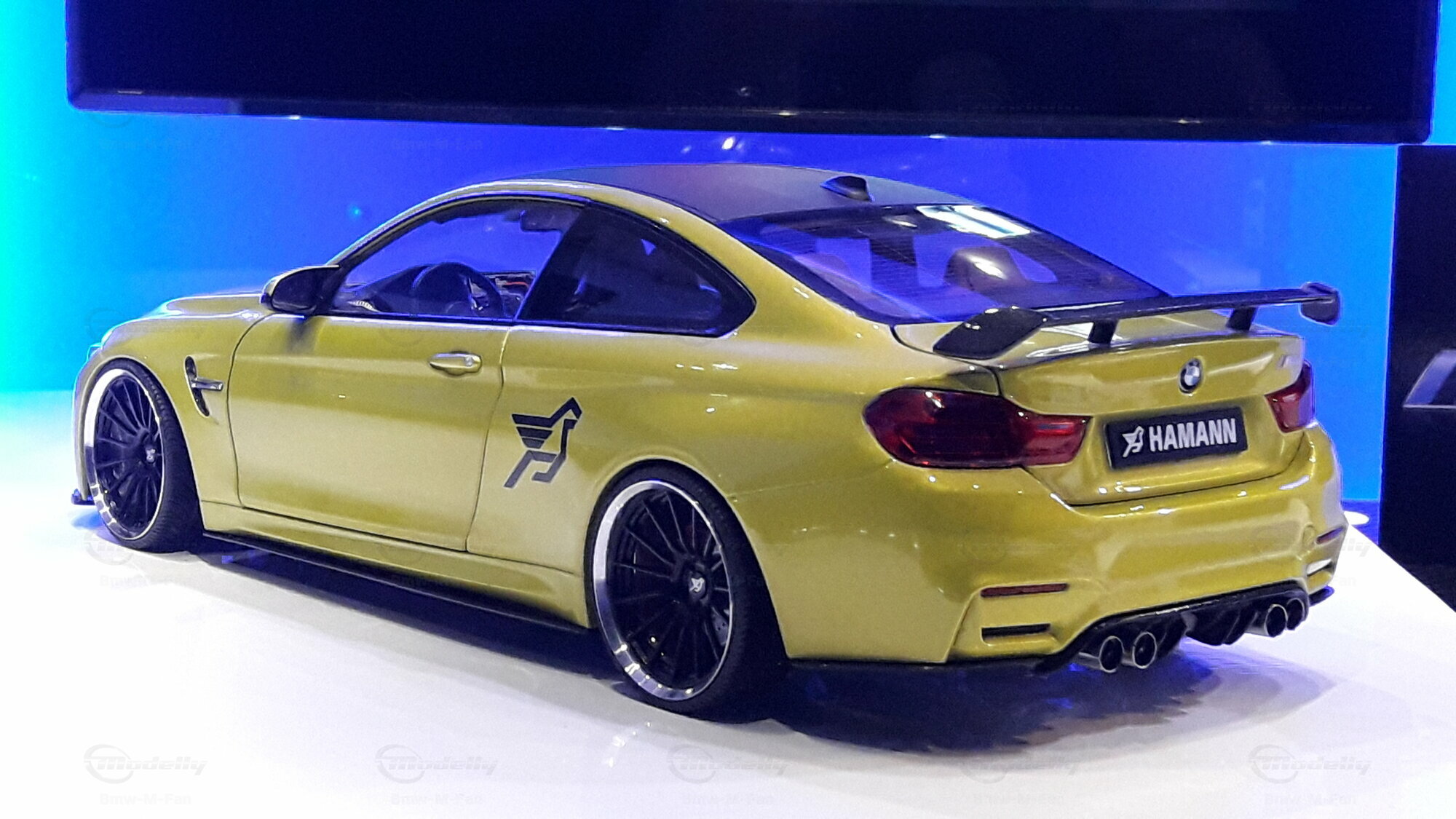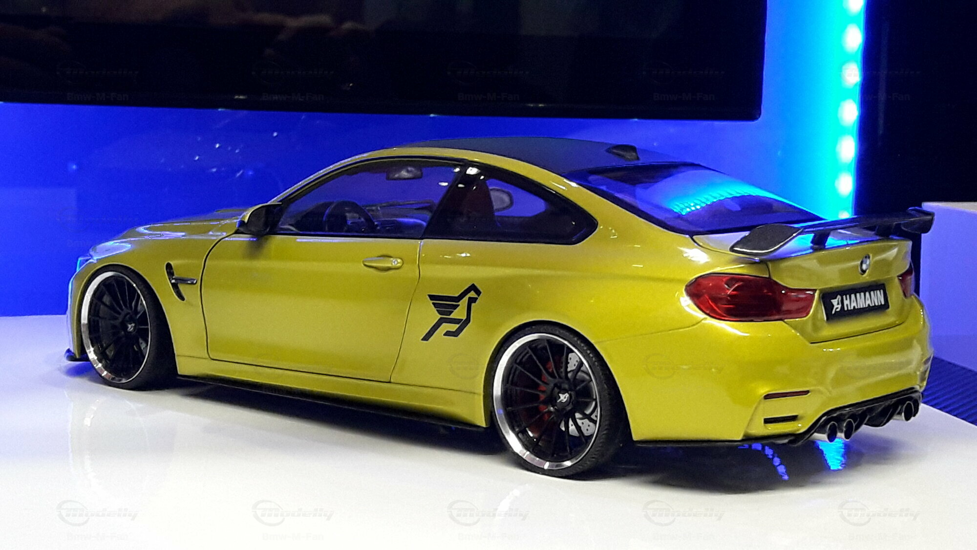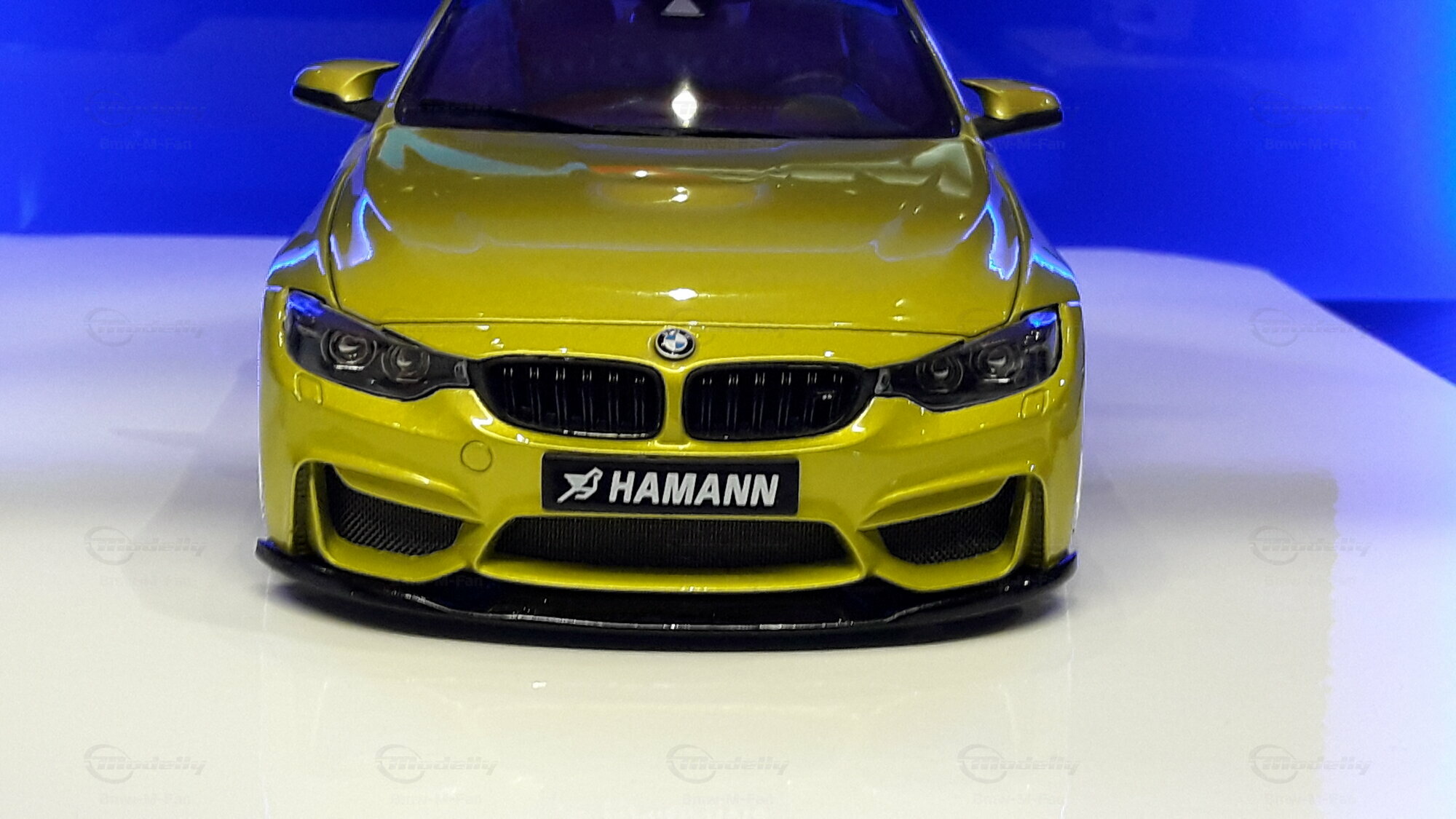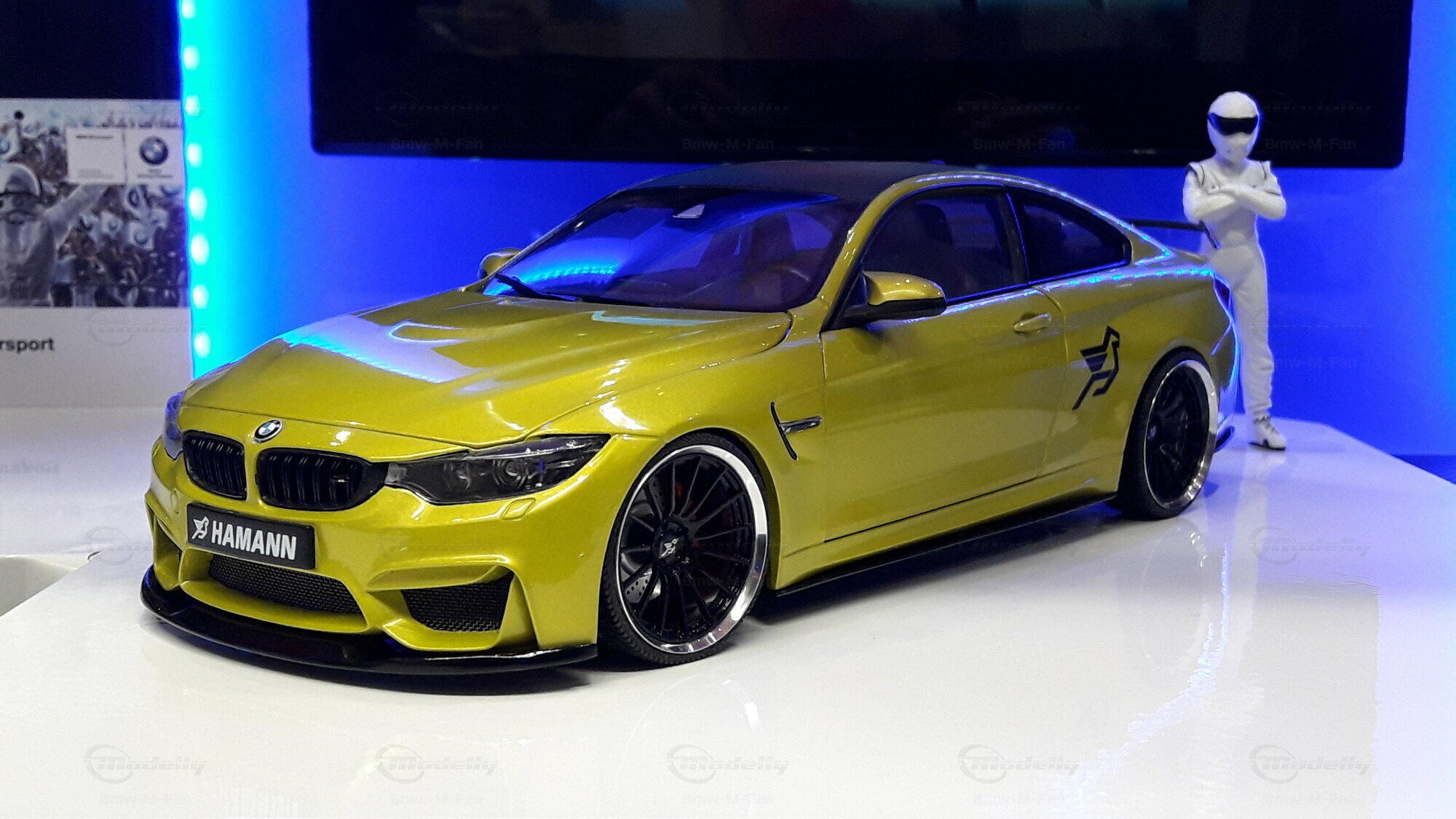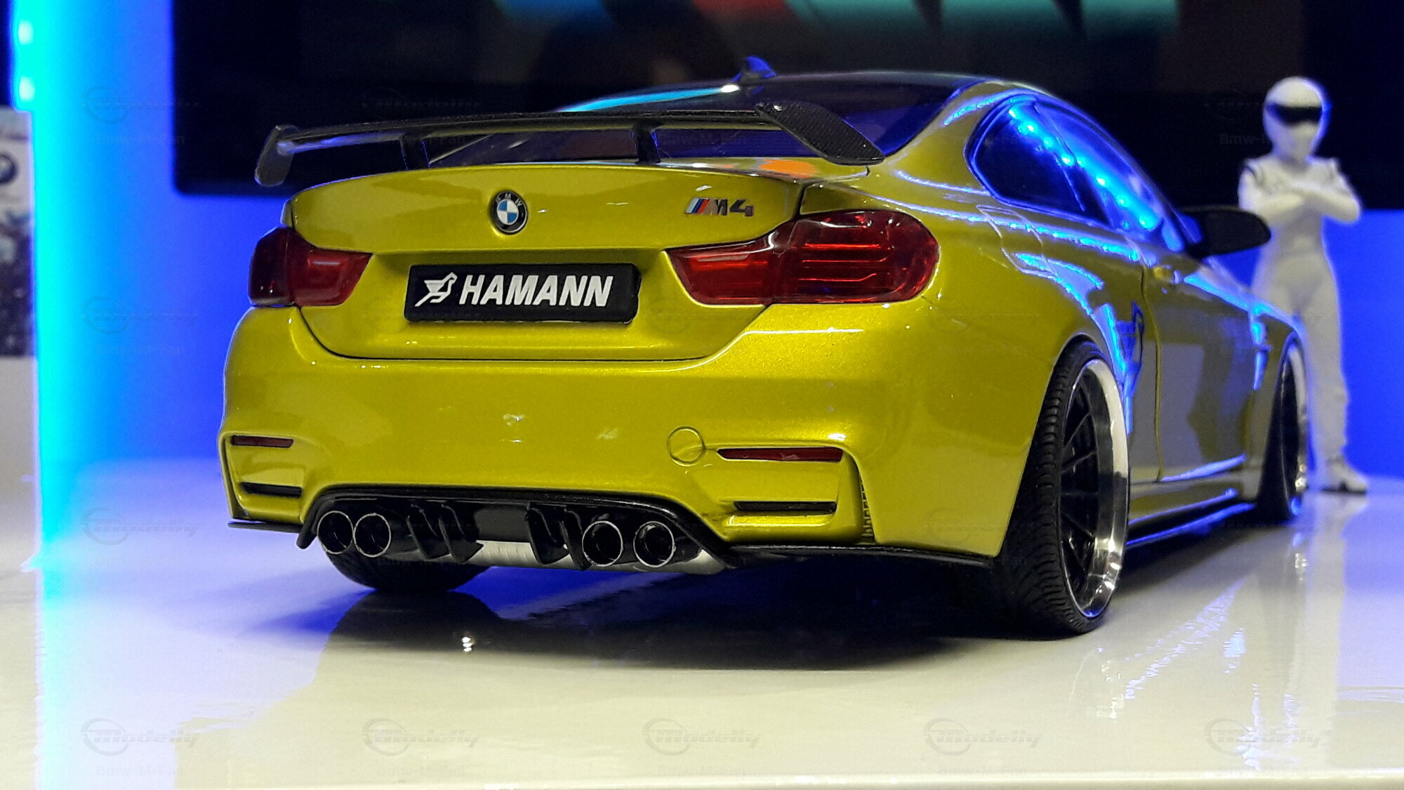 This particular model, owned by Modelly member "Bmw-M-Fan," features a variety of modifications. Noticeable is the vehicle's paint job. The car body has been painted in a special gold-yellow color that exudes a metallic sheen and striking aesthetics. Additionally, black accents have been added, providing a beautiful contrast to the primary paintwork. On the side of the vehicle, the logo of the tuning company Hamann is visible. This German company was founded in 1986 in Laupheim and is known for its exclusive vehicle enhancements. The added rear wheel spokes and lowered suspension are also distinctive modifications by Hamann.