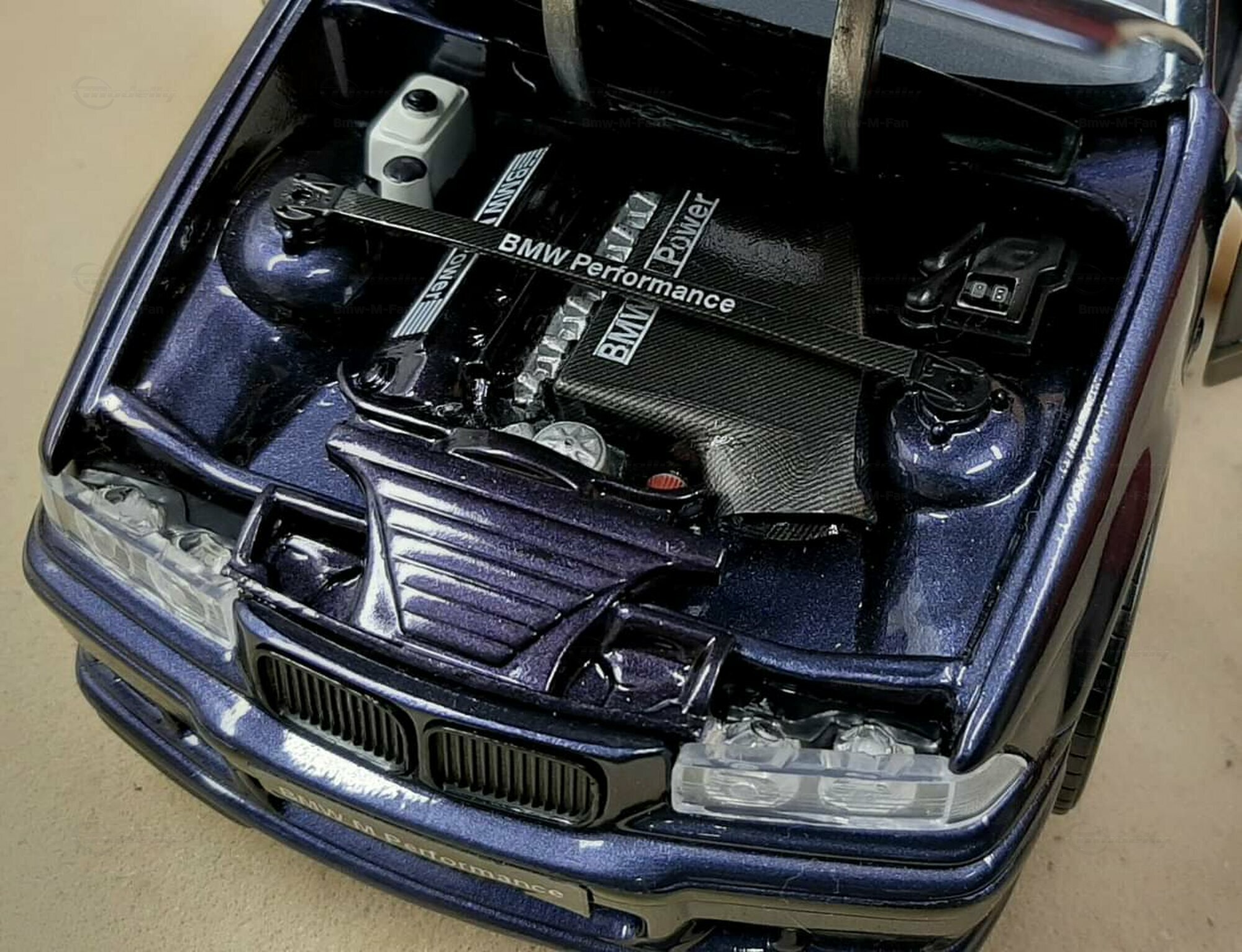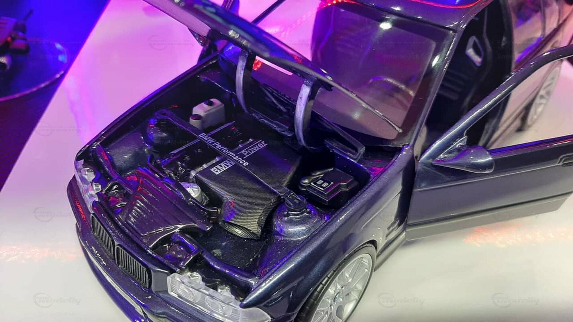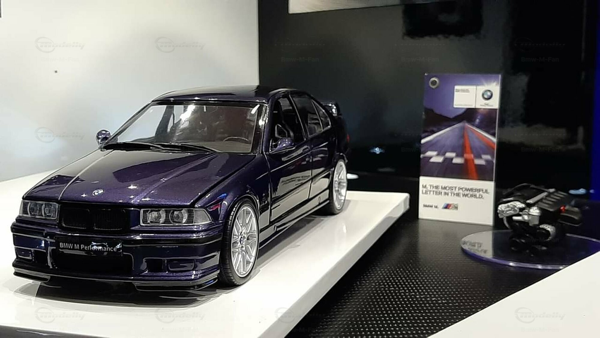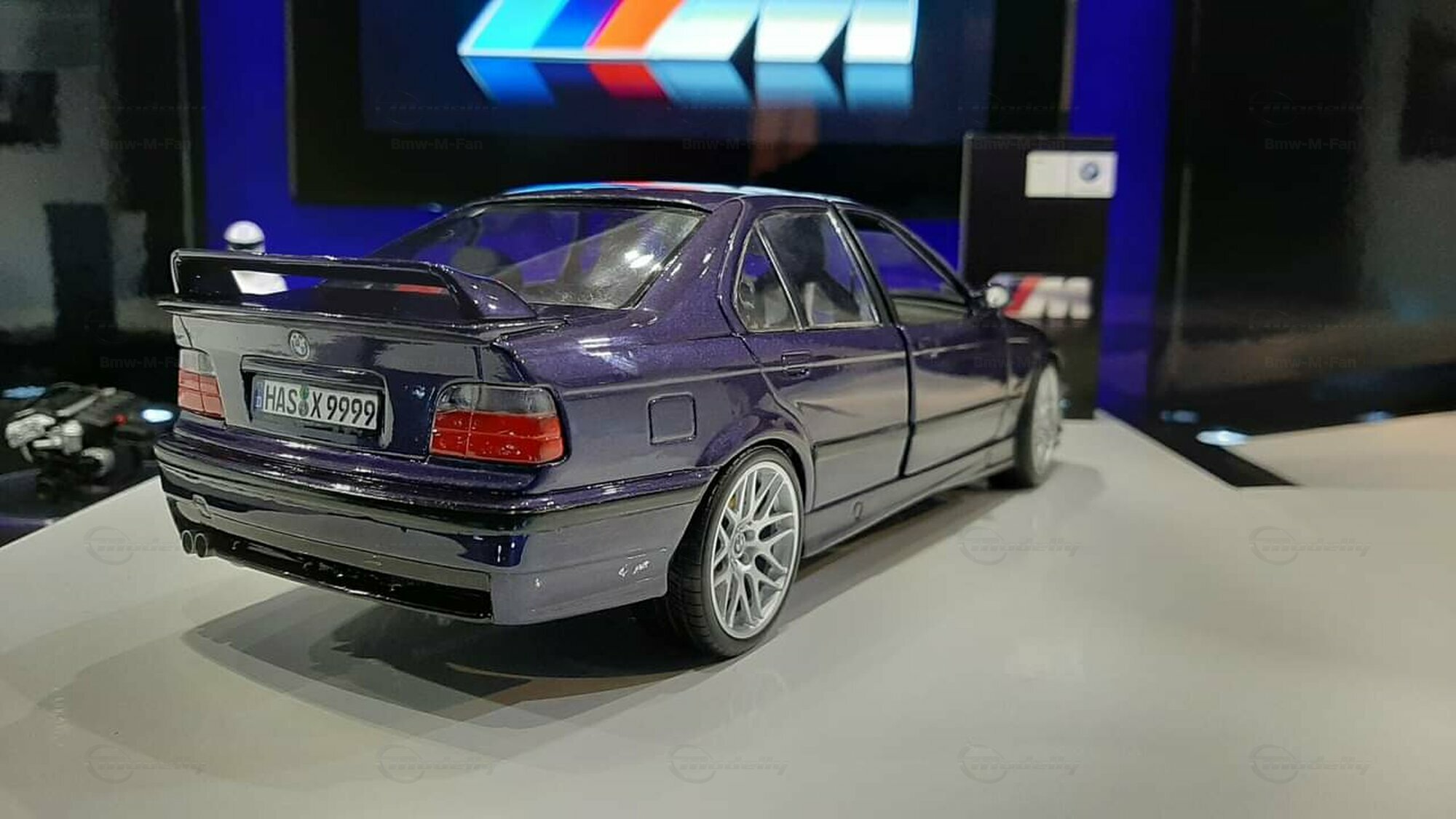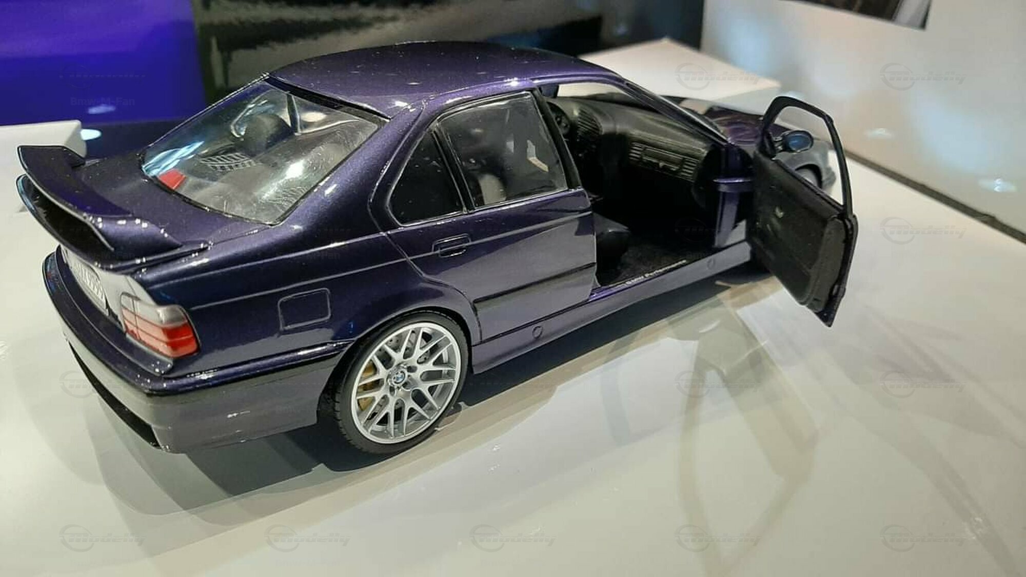 The model featured here in a 1/18 scale is a super detailed replica of the legendary BMW E36 M3 Sedan, made by UT-Models. This diecast miniature captures the elegance and precision that collectors around the globe love. Just a heads-up: the showcased model has been modified, so it doesn't represent the original product by UT-Models. Notable modifications include the snazzy BBS wheels that give the model a unique flair. The deep metallic blue paint job adds an extra touch of finesse.