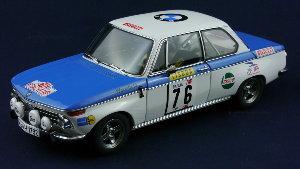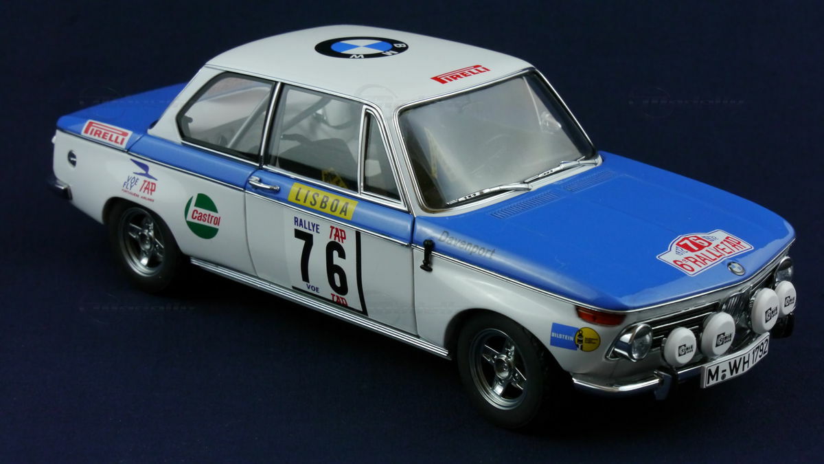 The livery designed specifically for the TAP Rally of the BMW 2002 features colors of blue and white, a tribute to the manufacturer's Bavarian roots and national hues. The model, bearing the number 76, also displays various sponsor decals, reflecting an authentic image of the era. Sponsors include well-known brands like Pirelli, Bilstein, and Castrol. These details are faithfully replicated not only on the original car but also on the 1/18 scale model by AUTOart Millennium, capturing the emotion and accuracy of the time period.
