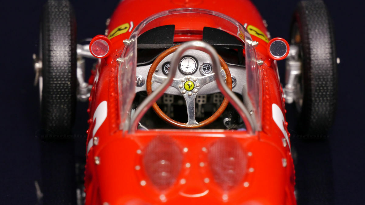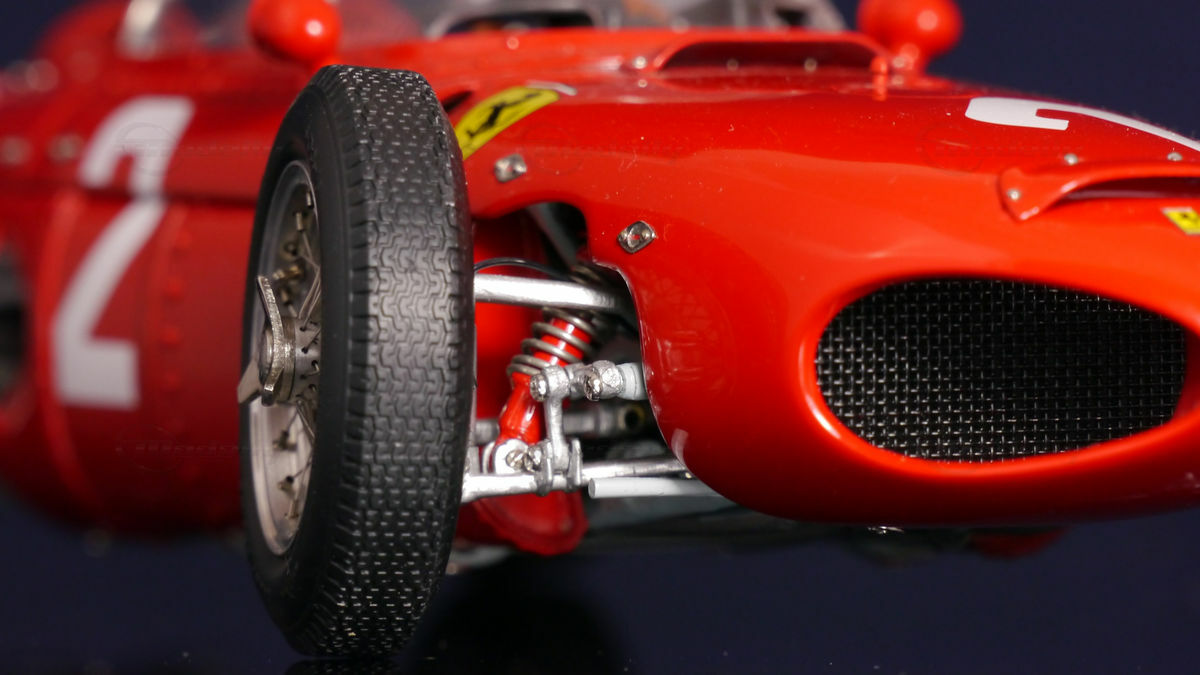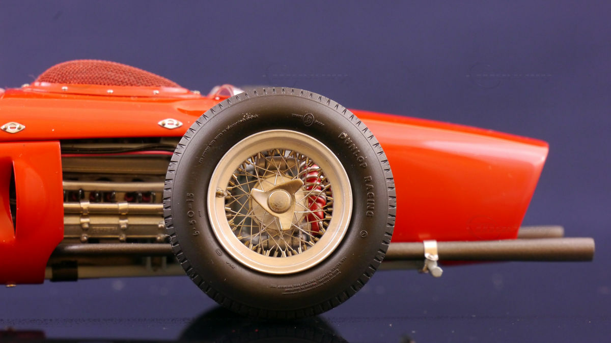 The iconic red paint scheme of the Ferrari 156 F1 Sharknose is not only historically significant but also a hallmark of the Ferrari team. The vehicle's "Rosso Corsa" color stood out on every racetrack, accompanied by the legendary Ferrari emblems. The car also sported sponsor stickers like those of Shell, who were a crucial partner of Ferrari in motorsport at the time. The shape of the car with the shark-nose front views (hence the name "Sharknose") not only gave the vehicle an aesthetically appealing design but also improved airflow for better cooling and aerodynamics. The adjustments and details incorporated into the car design made the Ferrari 156 F1 Sharknose a masterpiece of racing technology.