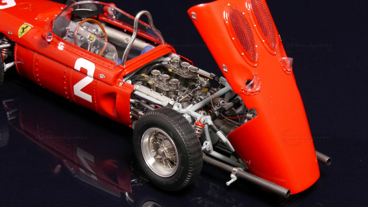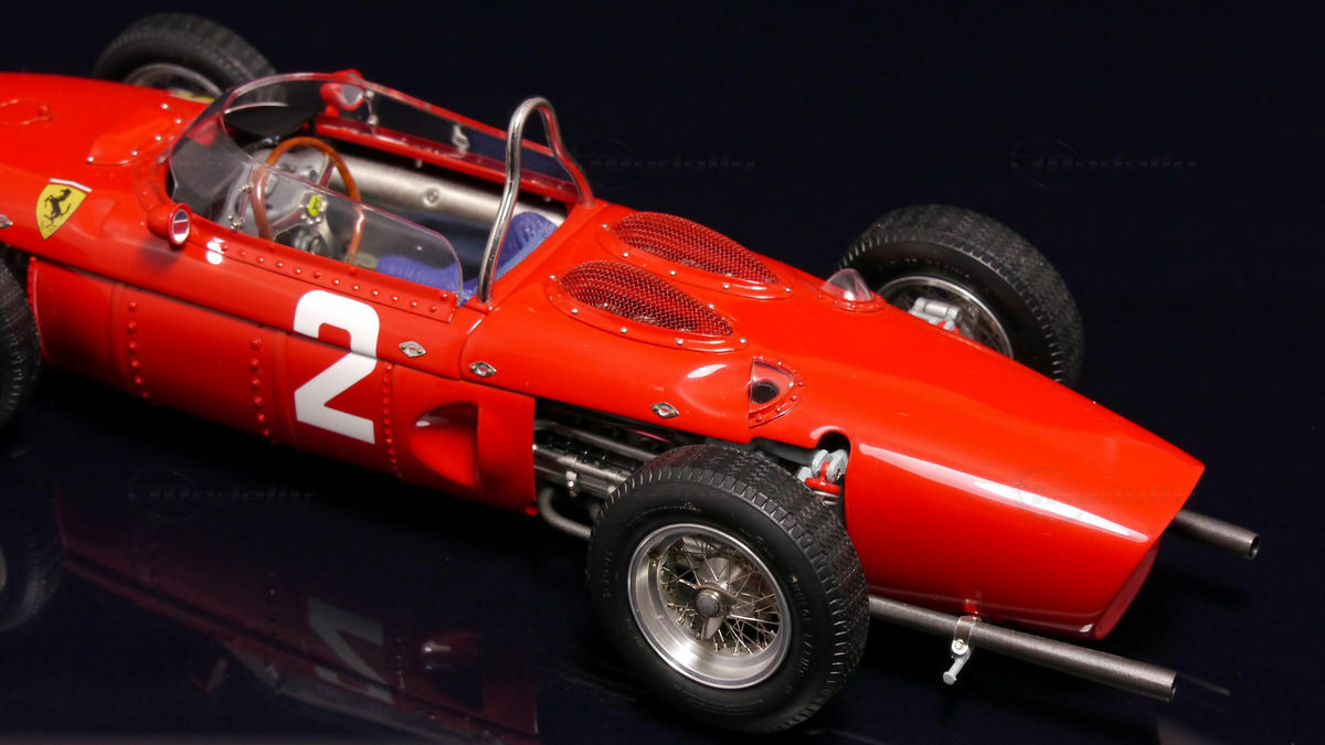 The Ferrari 156 F1 Sharknose is a remarkable piece of racing history. This legendary race car was built between 1961 and 1964 and marks an important era in Formula 1. With the 156 F1, Ferrari introduced a series of technological innovations that made the vehicle a true competitor in motorsport. The 156 F1 replaced its predecessor, the Ferrari 246, which had not met expectations in the years prior. Chief Engineer Carlo Chiti and Designer Medardo Fantuzzi played crucial roles in the development of this vehicle. Particularly noteworthy is the innovative "Sharknose" design, which was revolutionary at the time and significantly contributed to the car's success.