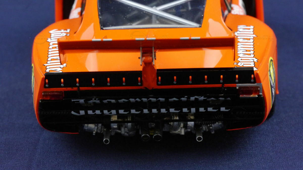 The 1/18 scale model by TSM Model, found in the collection of "boxengasse," stands out for its detailed reproduction of the original. The distinctive orange paint, typical for sponsor Jägermeister, is perfectly executed. The intricate details such as sponsor decals from Bilstein, BBS, Shell, and Dunlop are clearly visible. The interior of the model, including the roll cage and racing seats, reflects the high quality and attention to detail of TSM Model. Every line and curve of the model has been carefully replicated to get as close to the original as possible.