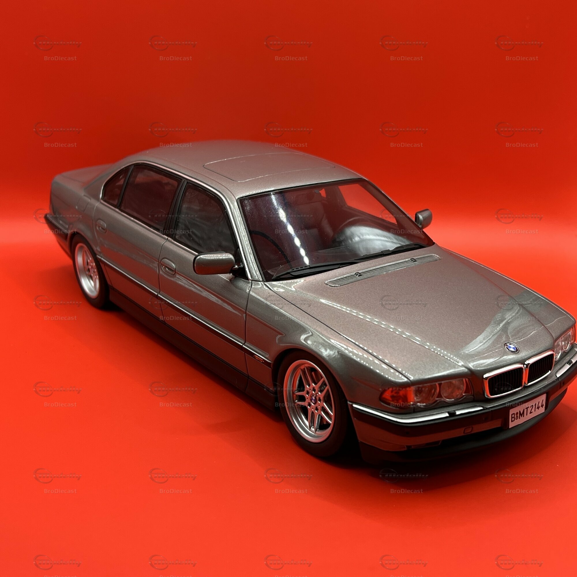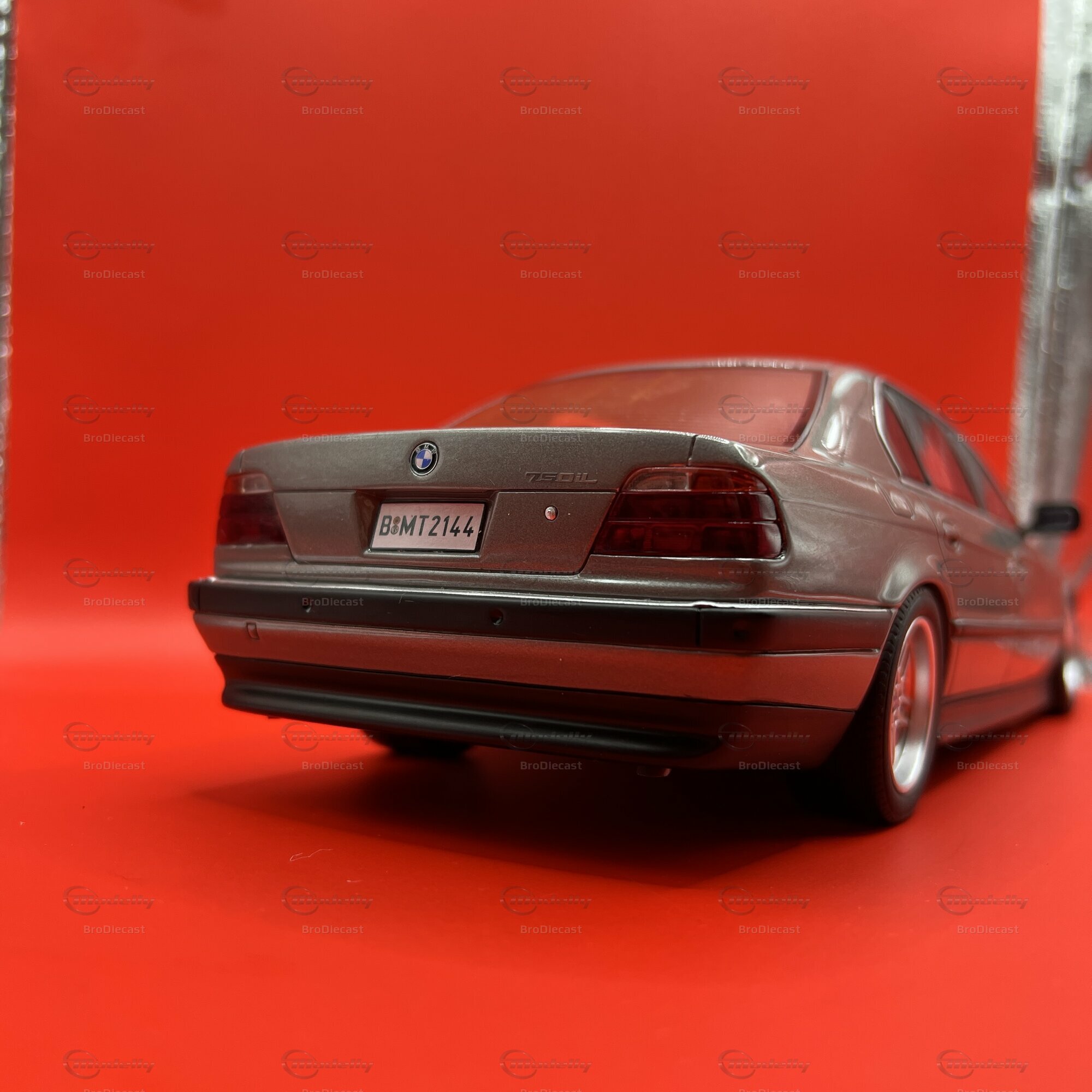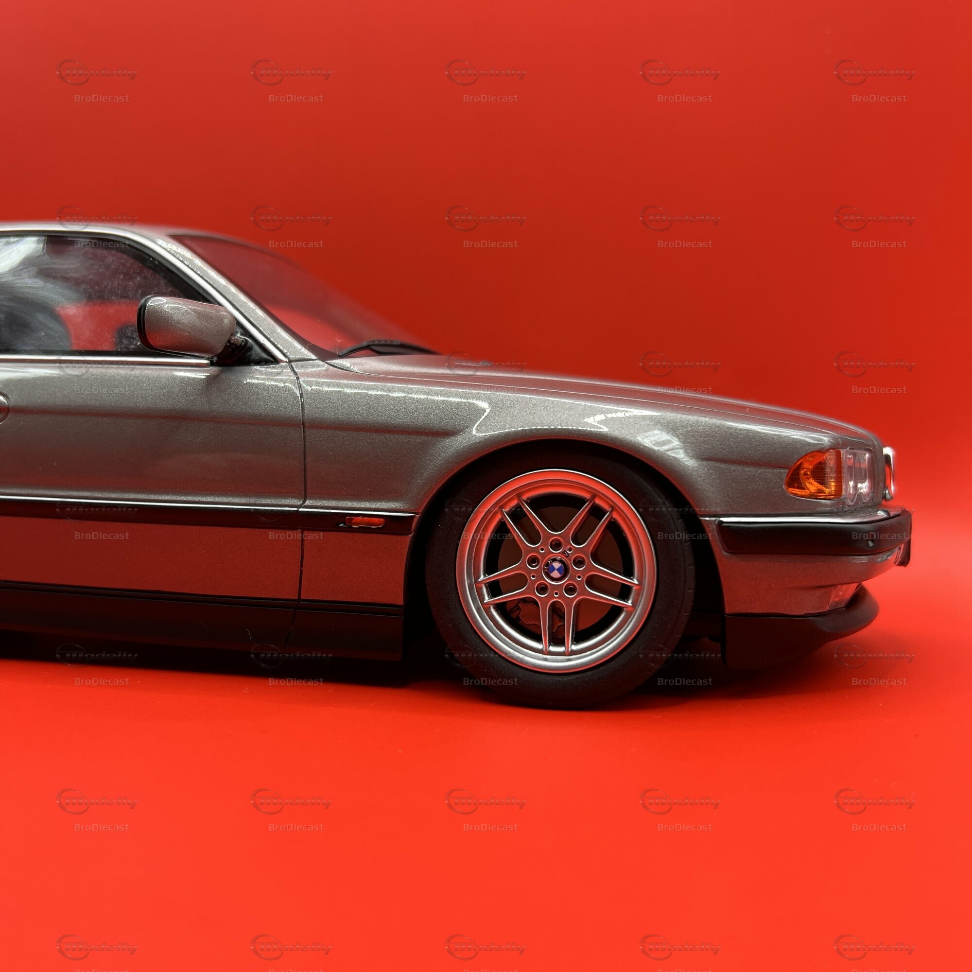 The model owned by Modelly member "BroDiecast" showcases the BMW 750iL (E38) with remarkable attention to detail. The car model is finished in a shiny silver paint, enhancing its elegant appearance. The detailed wheels stand out, perfectly complementing the vehicle's look. The wheels appear to be from a renowned manufacturer in the photo; their precise craftsmanship significantly contributes to the miniature's authenticity. Crafted from resin, it offers high detail accuracy and durability. The faithful reproduction of the original BMW grille and unique body lines reflects the beauty of the real E38 and the high quality of Otto Models replicas.