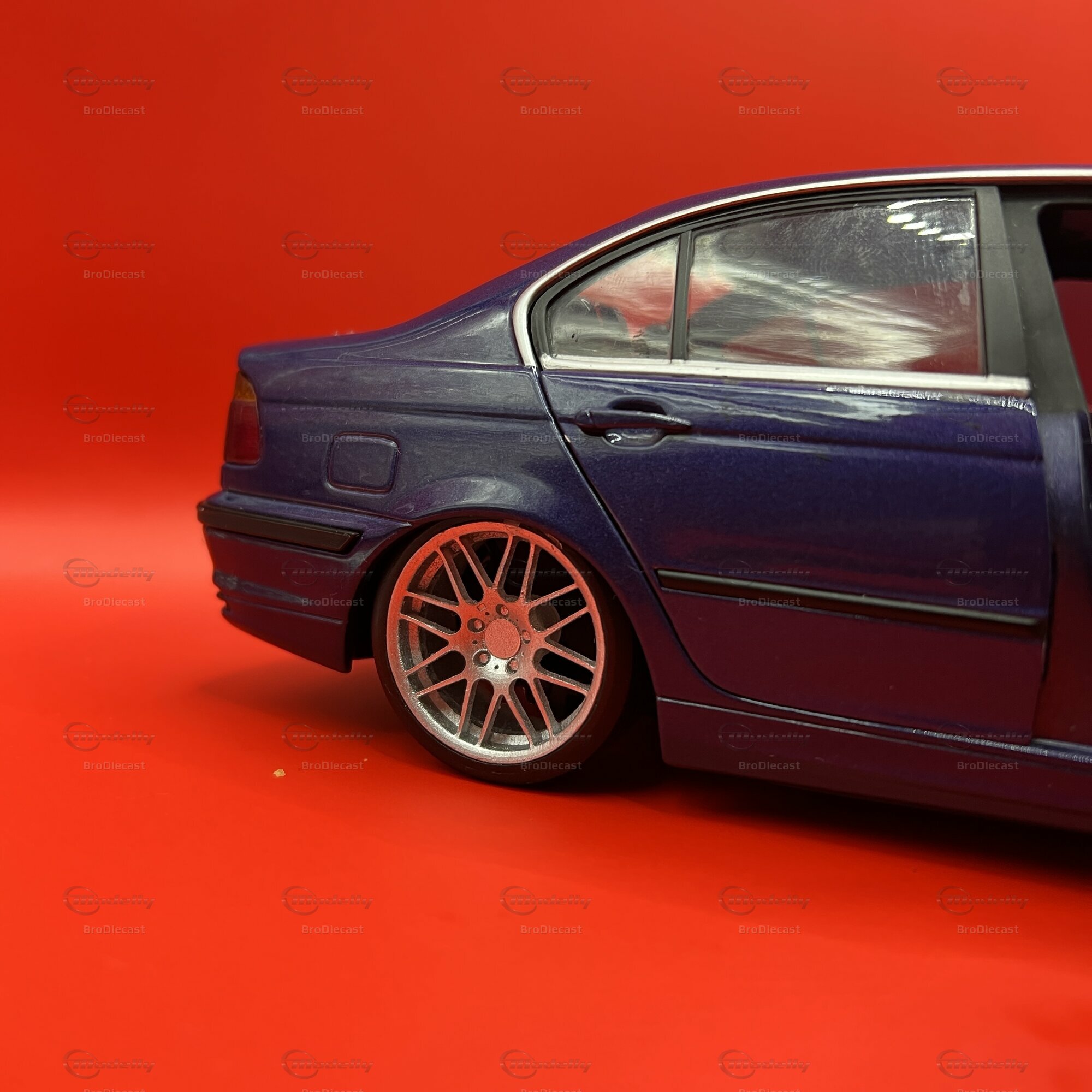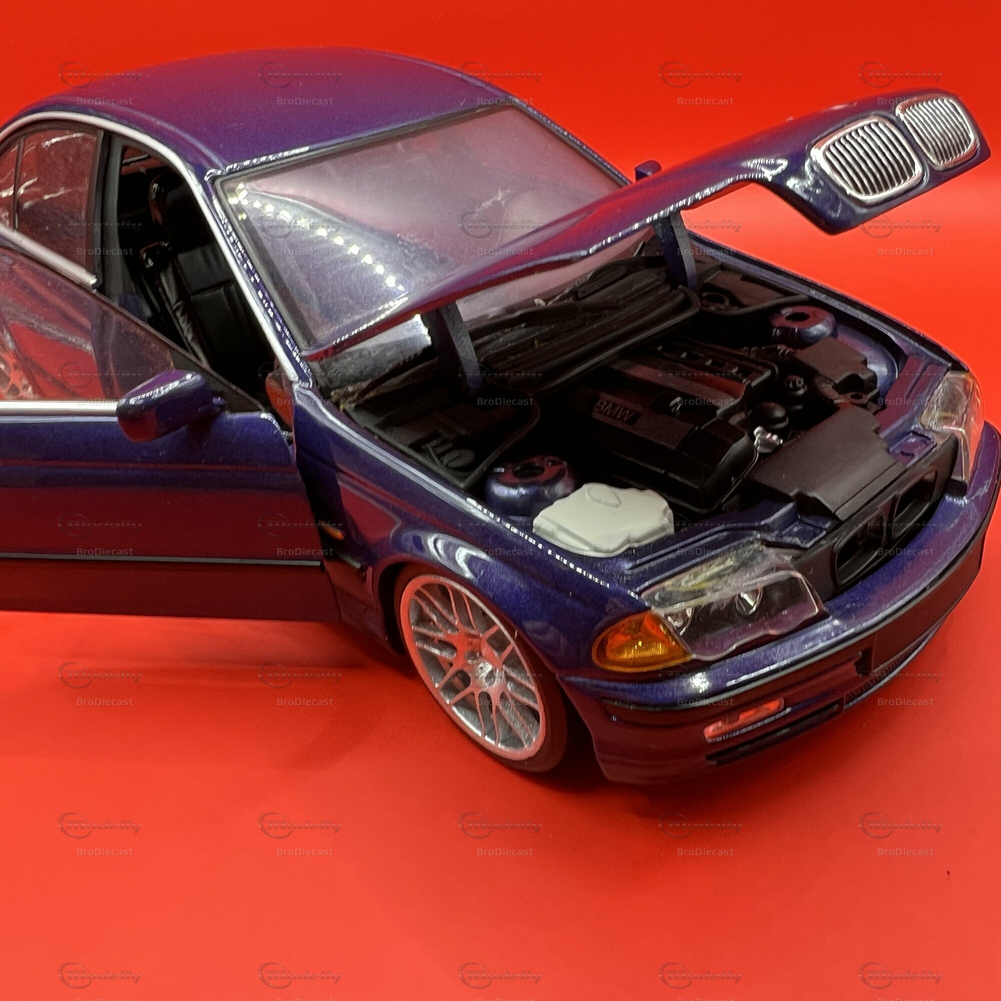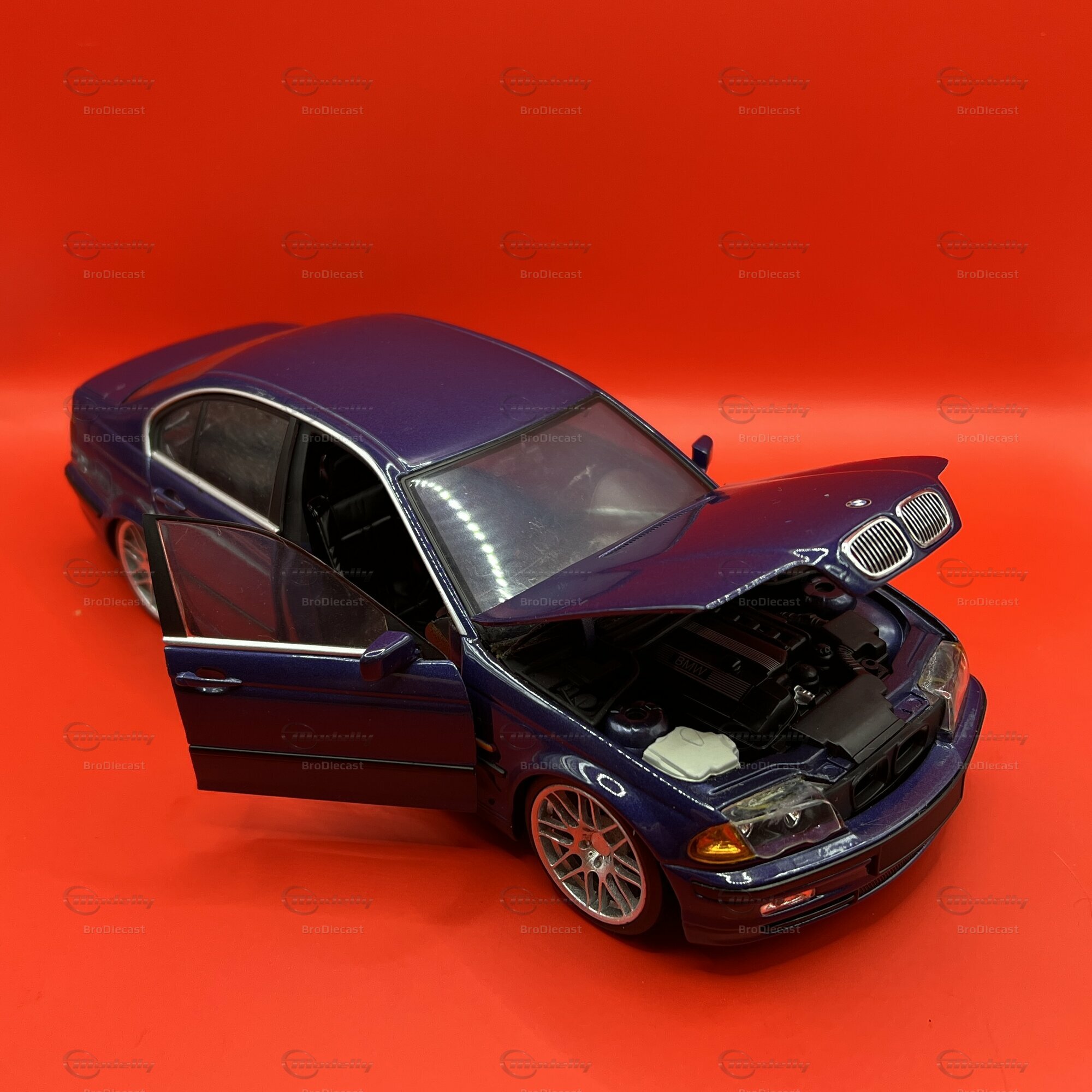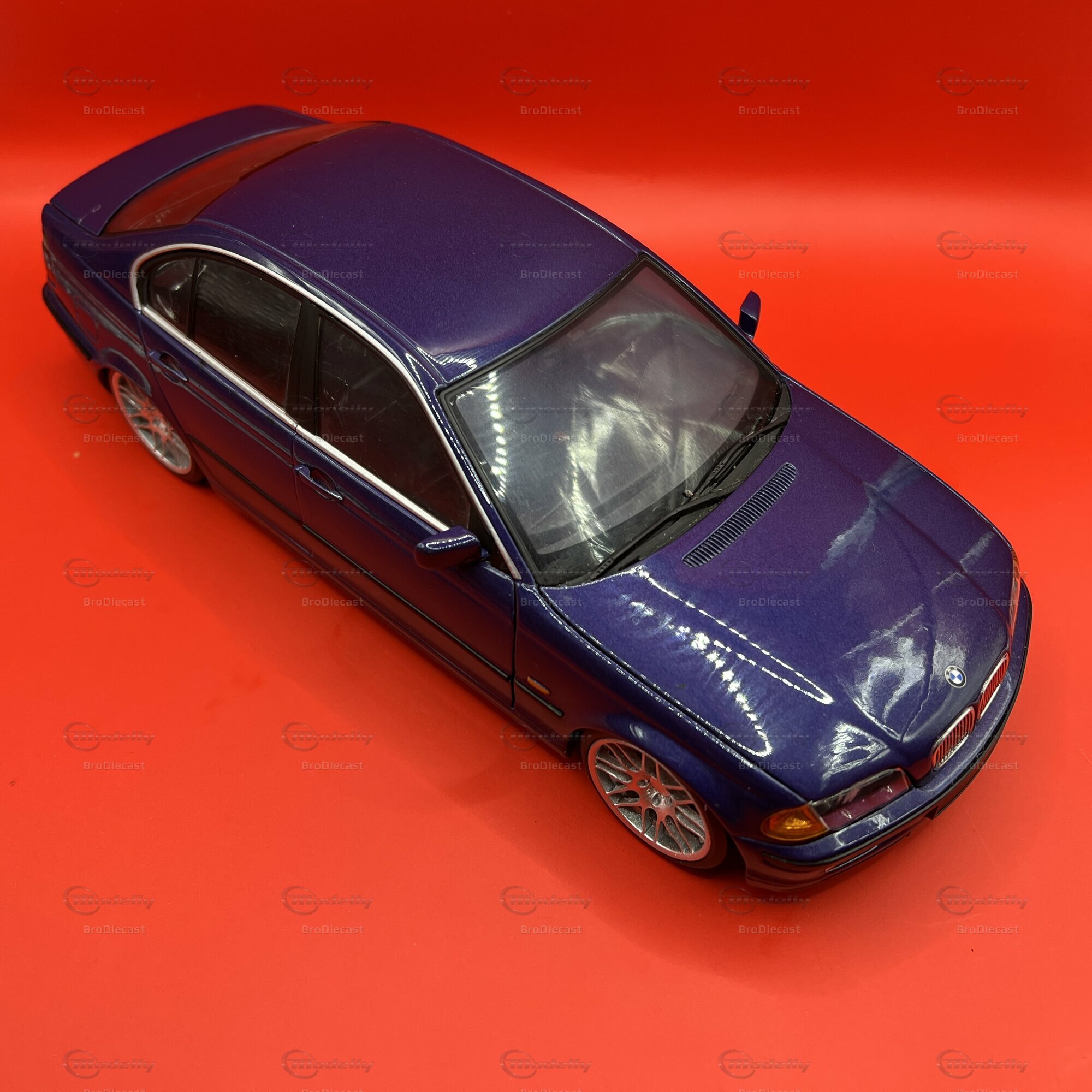 The original, the BMW 320i Sedan (E46), was introduced during a time of significant societal and technological changes. In 1998, when the E46 was first unveiled, important political and cultural events took place. For example, the film "Saving Private Ryan" achieved great success in theaters, and the song "I Don't Want to Miss a Thing" by Aerosmith topped the music charts. Such examples help to understand the temporal context of the vehicle and better contextualize its significance within its era. While the model car by UT Models captures many detailed elements of the original, the post-modification by "BroDiecast" gives this collector's item a special touch that sets it apart from the original mass production.