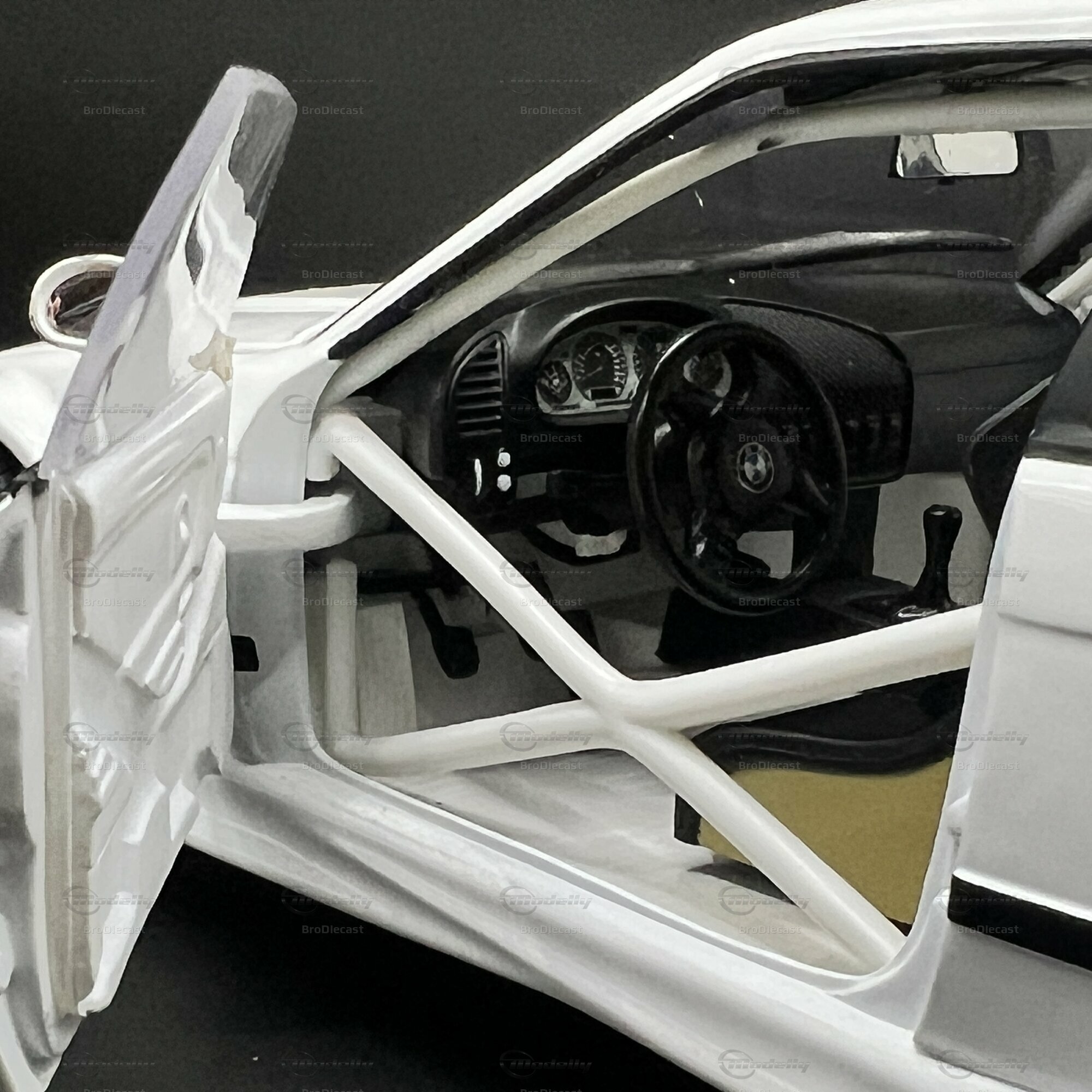 This model car is based on the legendary BMW Motorsport E36 M3 GTR, a special edition of the E36 that was produced from 1990 to 2000. The E36 is the third generation of the BMW 3 Series and was a major milestone in terms of technology and design. The GTR version was built specifically for racing and it stood out with a bunch of upgrades compared to the standard E36. Its wider fenders, striking rear wing, and optimized aerodynamics helped the car shine in various racing series.