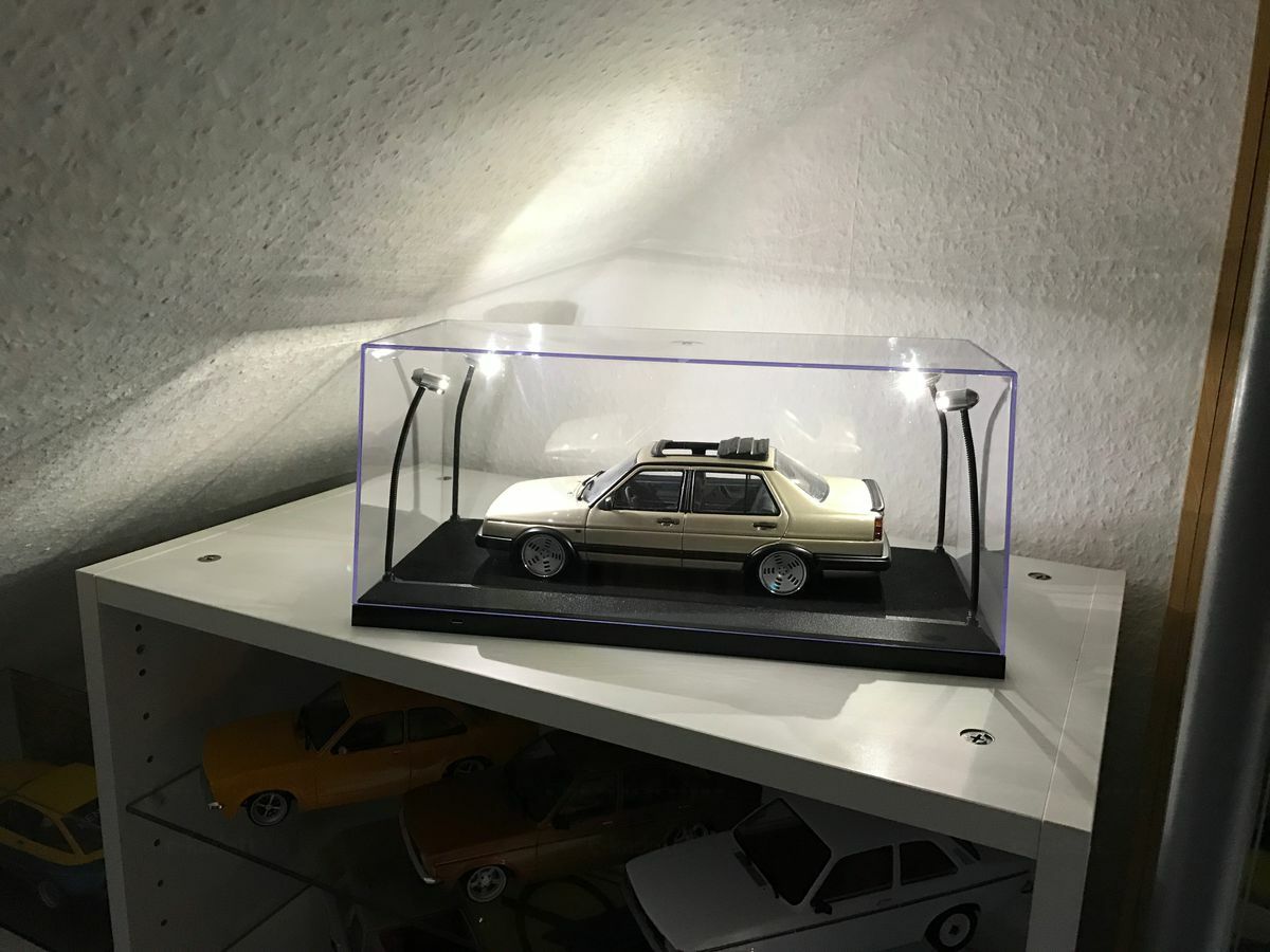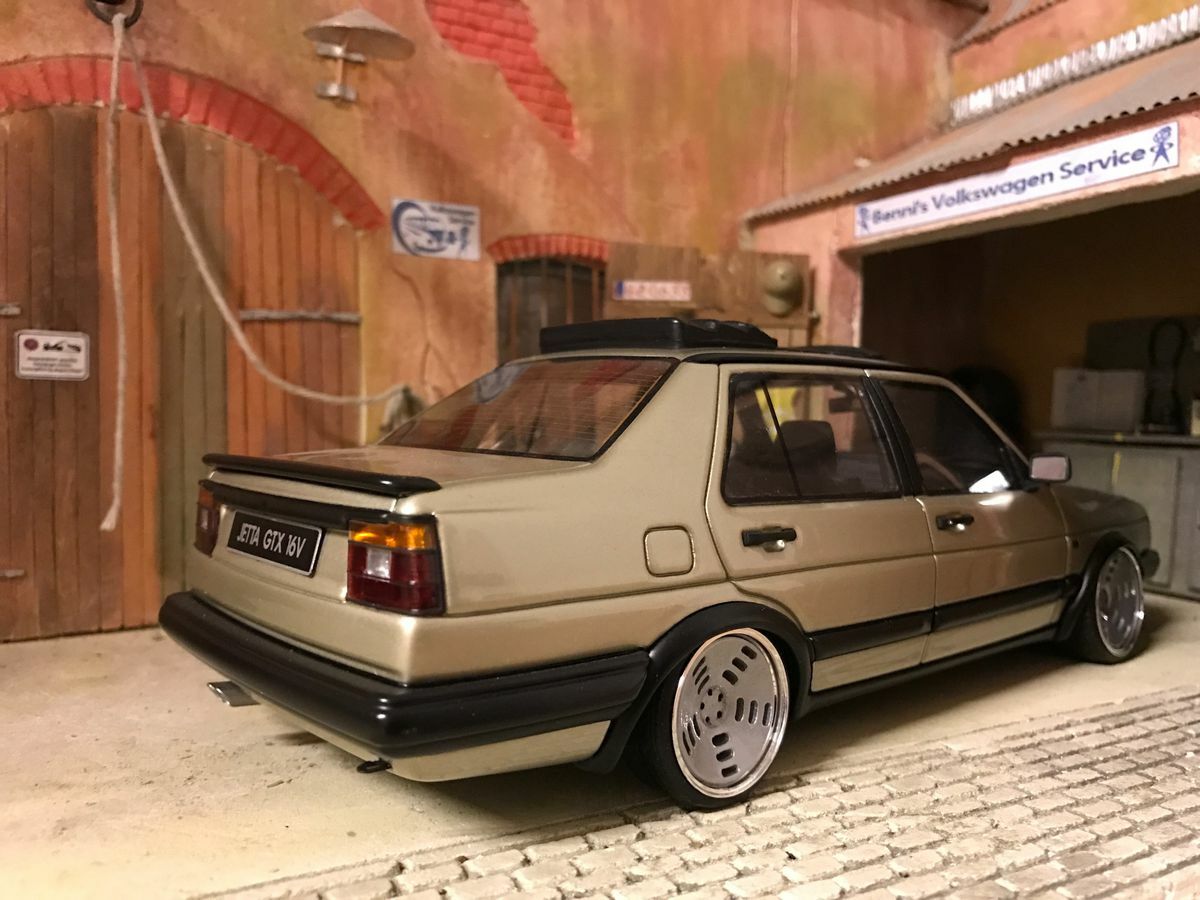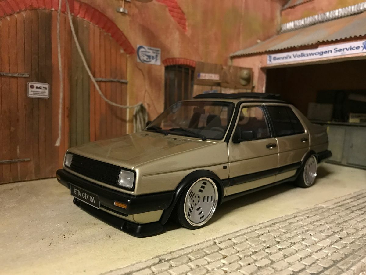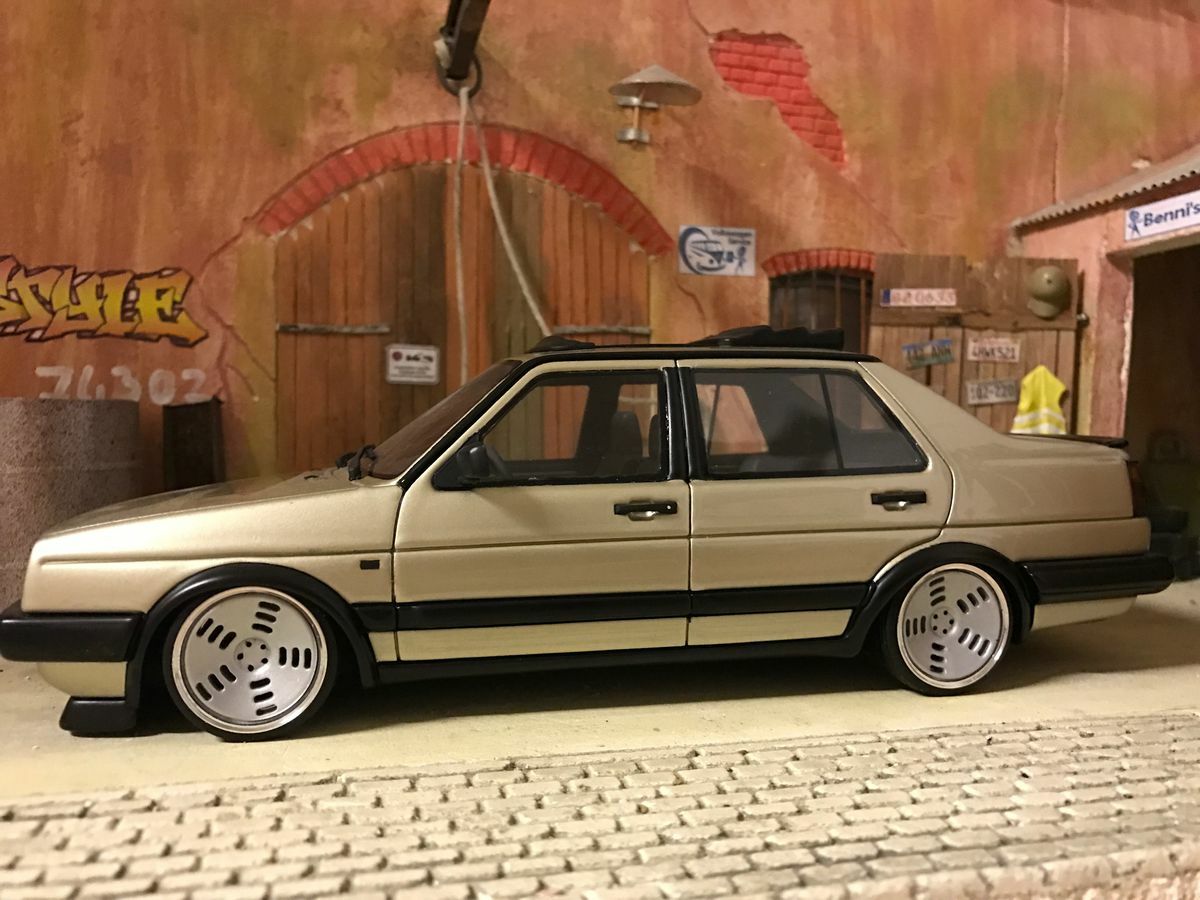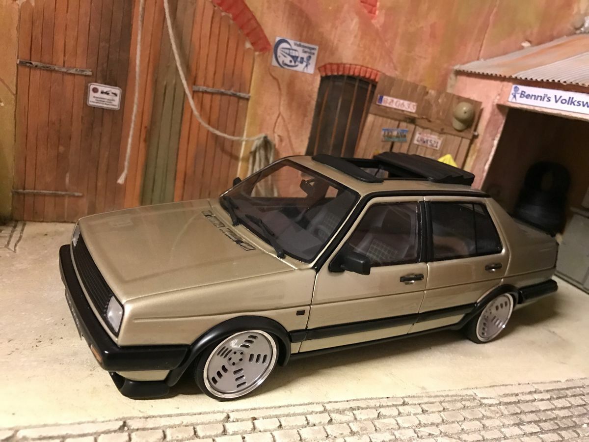 The model car shown here in 1/18 scale was manufactured by the company Otto Models. This model is an accurate replica of the Volkswagen Jetta II but has been modified and does not correspond to the original product produced by Otto Models. The model is made of resin, a material known for its lightweight and high level of detail. This miniature is owned by Modelly member "c-kadett" and showcases impressive personal modifications that enhance the original concept and create a unique collector's item.