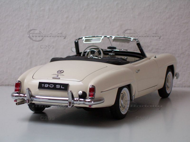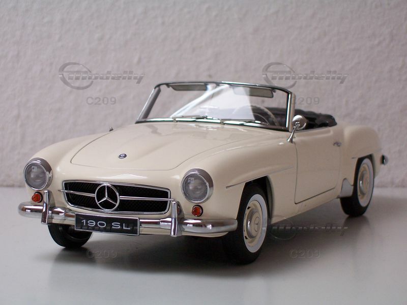 The model car shown here is a precisely crafted 1/18 scale model of the Mercedes 190SL, manufactured by AUTOart. This is a well-established model made from the durable material Diecast. AUTOart models are known for their attention to detail and high quality, accurately replicating the Mercedes 190SL in all its aspects. In the pictures showcasing the collection piece of Modelly member "C209," numerous details can be observed that would excite any collector. The finely detailed craftsmanship, from the chrome parts on the bumpers to the accurately reproduced logos, is a typical hallmark of this series.