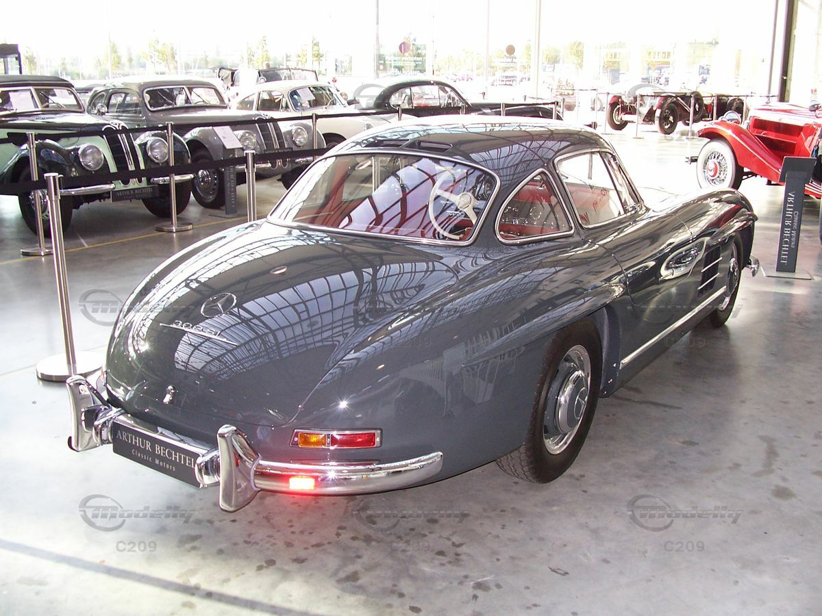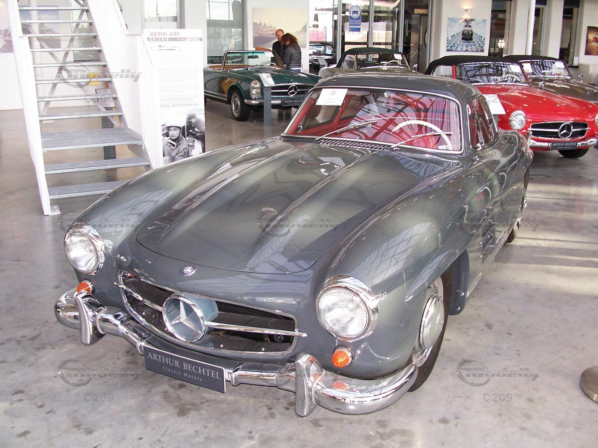 The Mercedes 300SL Coupe (W198), also known as the "Gullwing", was designed by Rudolf Uhlenhaut and his development team at Daimler AG. In production between 1954 and 1963, it marked an era of technical excellence and stylistic innovation. Originally conceived as a racing car, the 300SL was based on the successful W194, which secured first and second place at the 1952 24 Hours of Le Mans. This success led Max Hoffman, the Mercedes-Benz general importer for North America, to propose the production of a street-legal model. Key events in 1954, such as the start of construction of the dormant Disneyland park in Burbank and Elvis Presley's first recording contract, provide the historical context for the introduction of the Mercedes 300SL Coupe (W198).