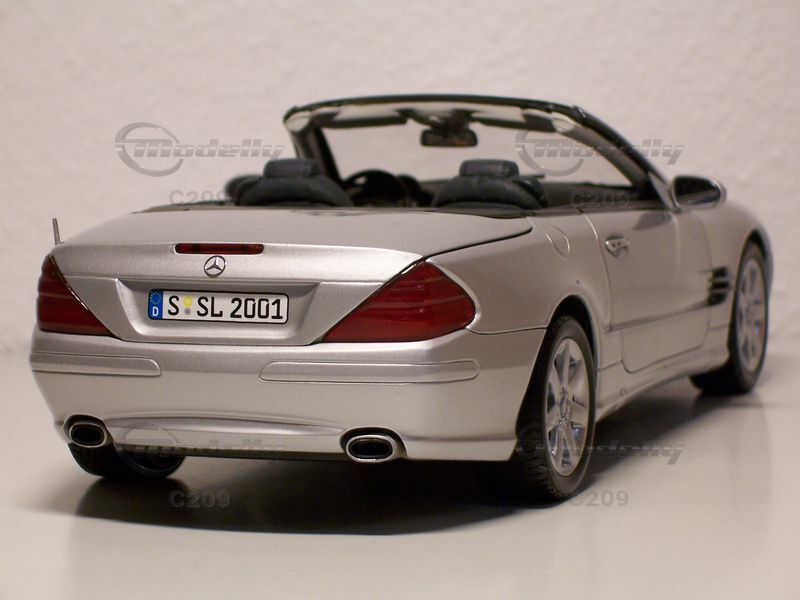This scale model 1/18 was produced by Minichamps and represents the Mercedes SL (R230), which was built from 2001 to 2011. The Mercedes SL (R230) was the fifth generation of the SL-Class and succeeded the Mercedes SL (R129). The vehicle was developed by a team of engineers and designers including Bruno Sacco and Peter Pfeiffer. The depicted miniature model from the collection of Modelly member "C209" beautifully captures the elegance and technical details of the original.