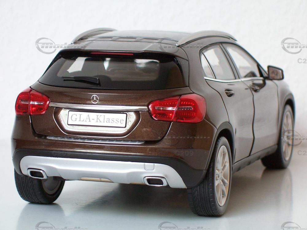 The aesthetics of the 1/18 scale model car by Norev mirror the elegance and functionality of the original Mercedes GLA-Class (X156). The model is adorned with fine details, such as accurately replicated wheels and tires, and realistically designed side mirrors. The glossy brown metallic paint gives the model a sophisticated look that rivals the original vehicle. The interior of the model is also meticulously crafted, showcasing the high-quality finish expected from Mercedes-Benz vehicles. This attention to detail makes the model a standout piece in any collection. It's not just a visual treat but also a testament to the craftsmanship with which Norev produces its model cars. Due to these special features and the accurate replication of the original, this model is a must-have for any serious miniature car collector.