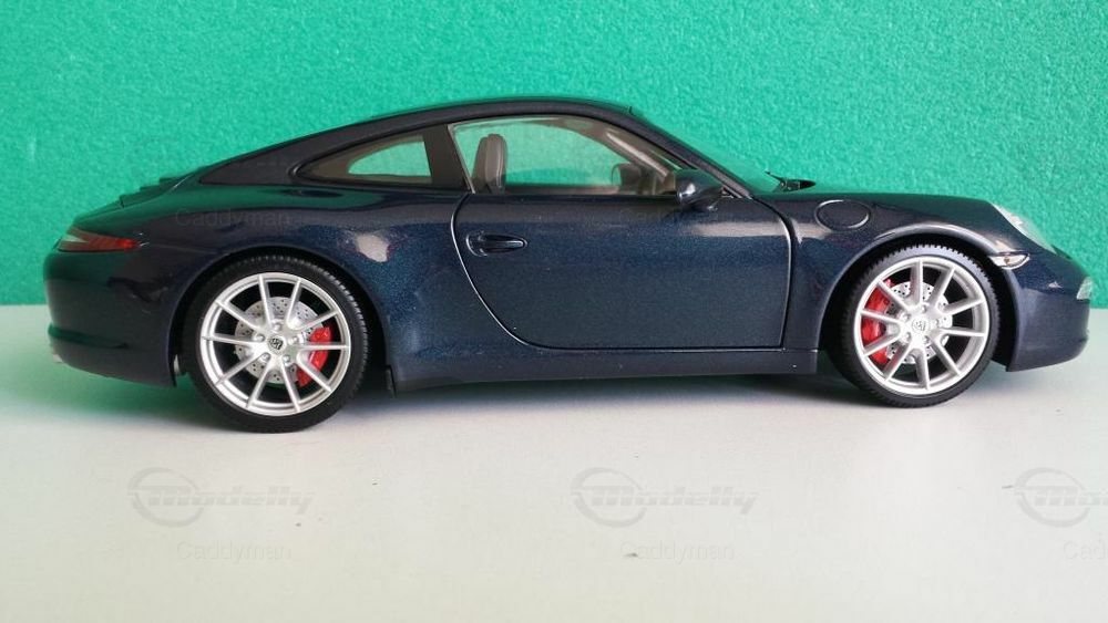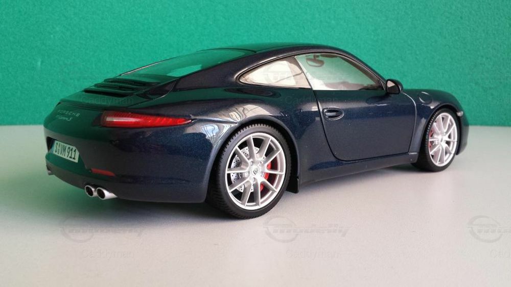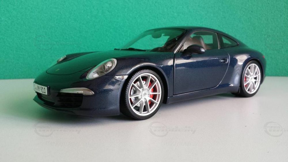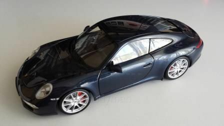 The model car manufacturer Minichamps has created a detailed replica of the Porsche 911 Carrera S (991) in a scale of 1/18. This model stands out for its high level of detail and quality, making it a popular collector's item among model car enthusiasts. This model in the possession of Modelly member "Caddyman" is an exquisite example of Minichamps craftsmanship. The body of the model is finished in a deep, glossy blue color that closely resembles the original vehicle, giving the model an authentic and appealing appearance.