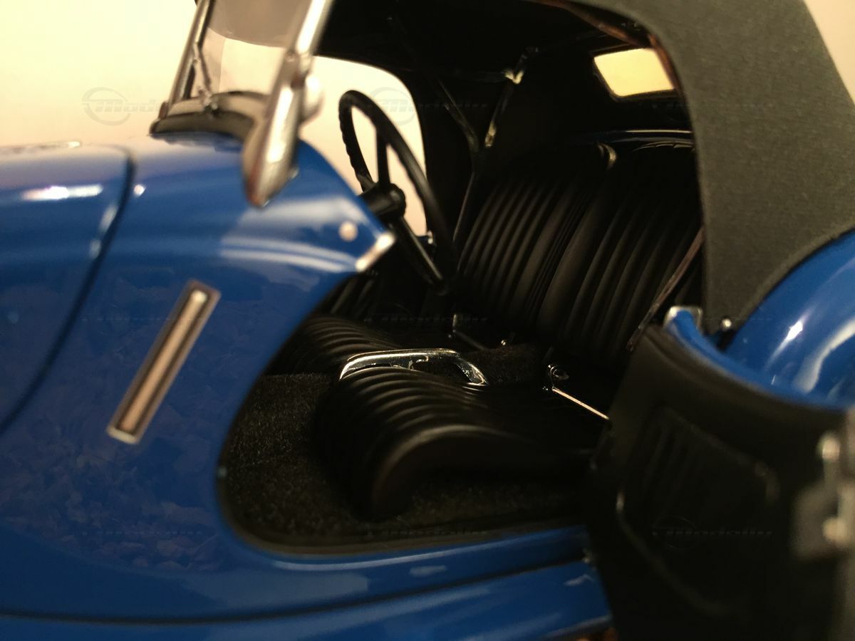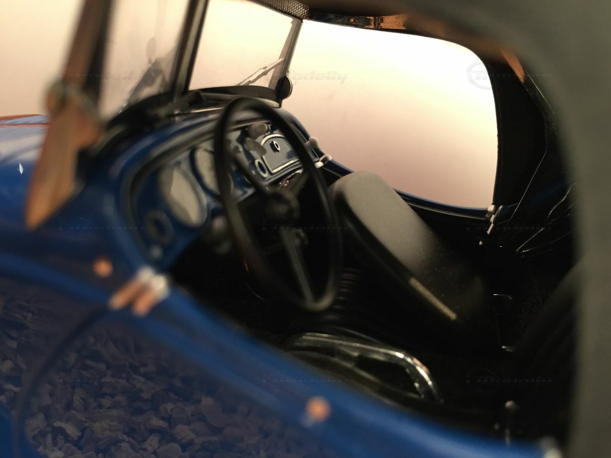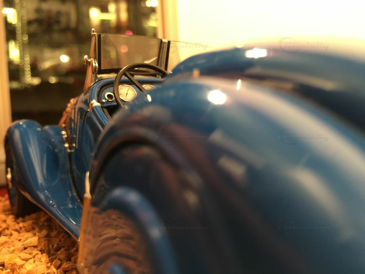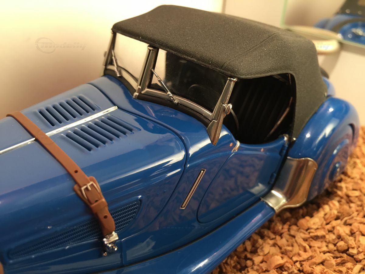 The showcased 1/18 model belongs to model enthusiast "Carjunky" and impresses with its detailed depiction of the original. The craftsmanship using metal diecast and the precisely painted surfaces highlight the high quality of this model. The black soft top gives the model a classic look and creates a nice contrast with the blue body. Plus, you can fold the top down, giving you another view of this historic roadster.