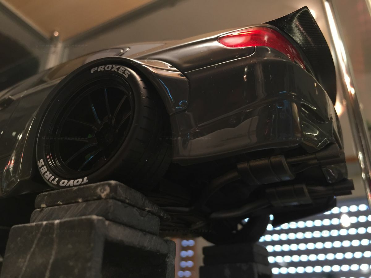 The wheels are a major highlight of this model. We're talking about glossy black rims from Rotiform, with standout dimensions, paired with the signature Toyo Tires branding. The wide tires give the replica an aggressive vibe, fitting right into the Liberty Walk style. The fender flares and the low-profile front lip add extra muscle to the model's look. All of these design elements are meticulously crafted in the model, reflecting the modified version of the E92 as seen in the real world, thanks to the tuning scene.