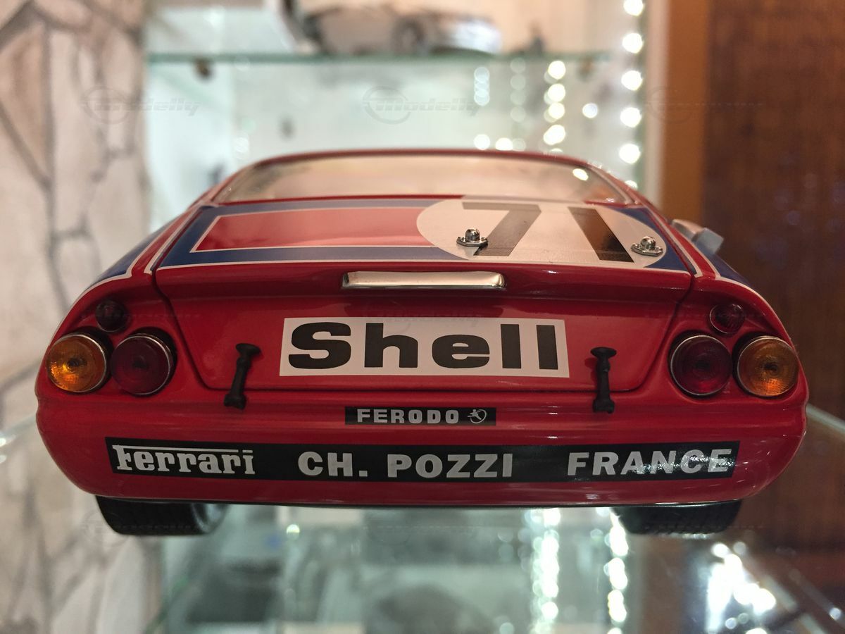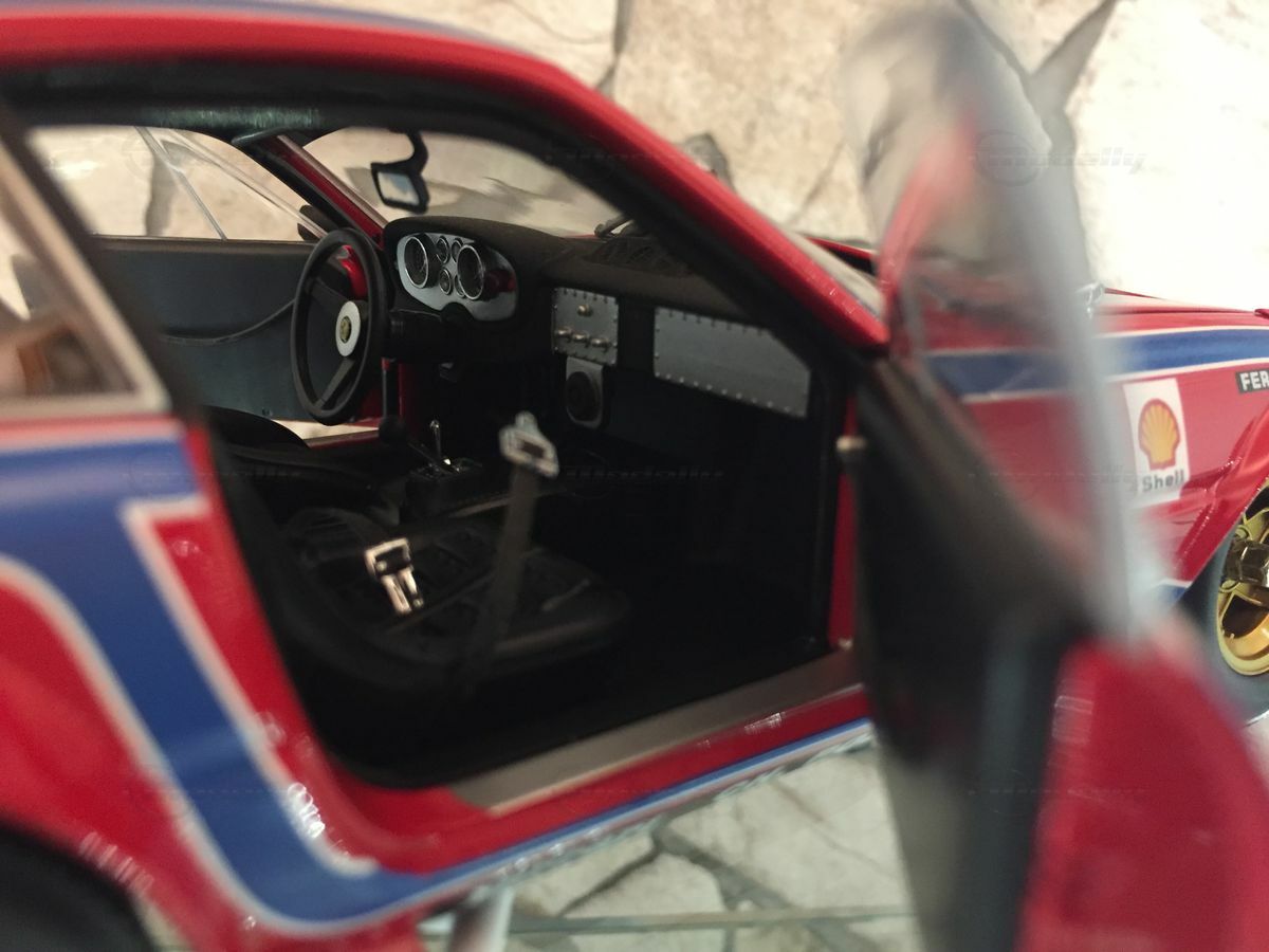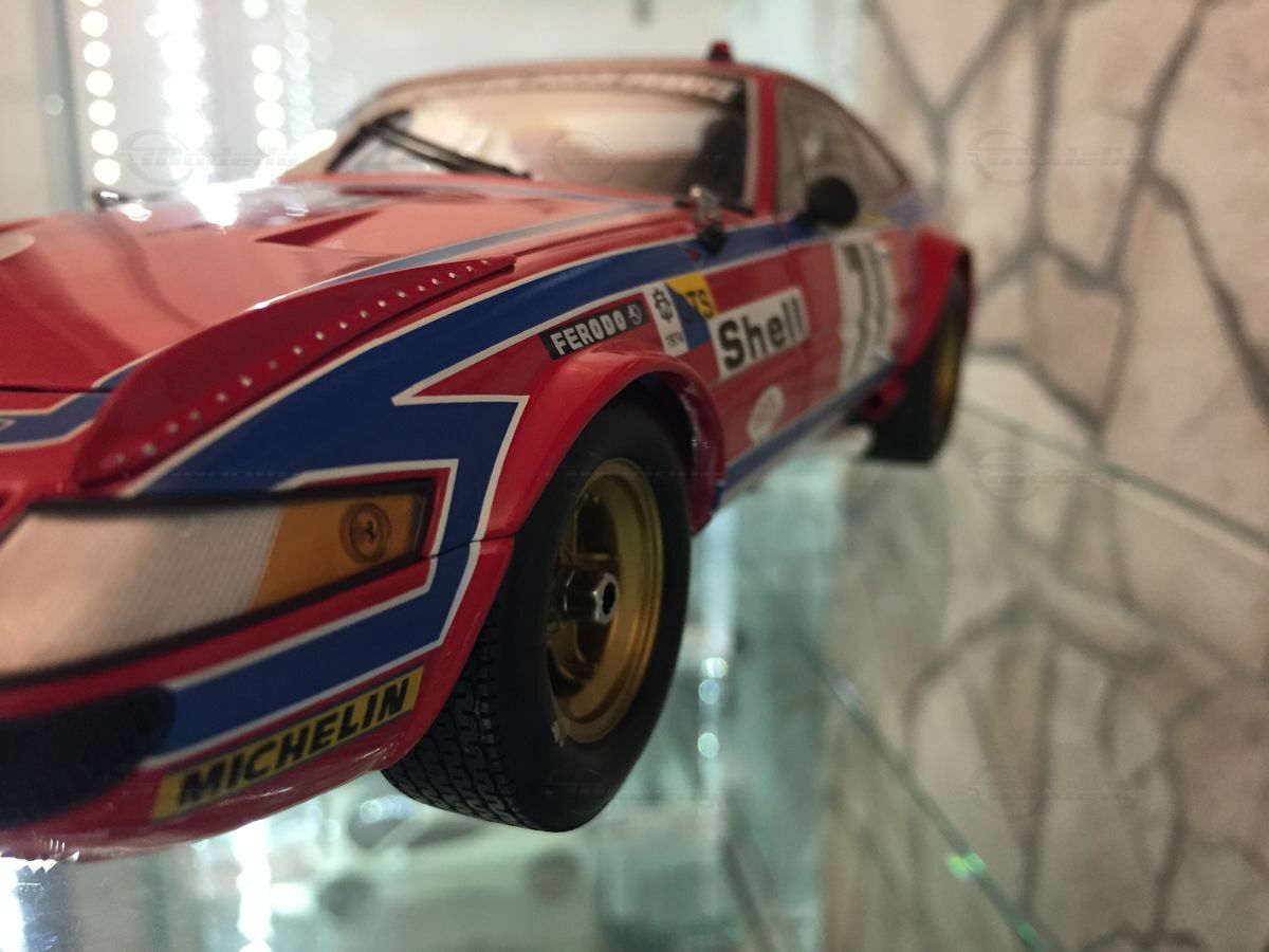 This impressive miniature of the Ferrari 365 GTB/4 Competizione Le Mans is a 1/18 scale replica made by Kyosho. The accuracy of detail in the replica is remarkable. The miniature is made of diecast and is part of the collection of Modelly member "Carjunky". Notable are the precise reproductions of sponsor logos such as Ferodo, Michelin, and Shell. The iconic red and blue bodywork is meticulously recreated, just like in the original car. In addition, the golden rims and detailed headlights are points that highlight the value and attention to detail of this model. The model is not only a collector's item but also an excellent example of craftsmanship in model building that will make every collector's heart beat faster.