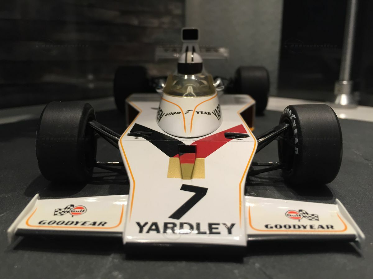 The Yardley McLaren M23 achieved remarkable success in motorsport, culminating in McLaren securing the 1974 Formula 1 World Championship in the driver standings with Emerson Fittipaldi. Over its racing career, the M23 claimed 16 victories, establishing itself as one of the era's most successful race cars. The innovative aerodynamic design and reliability of the M23 contributed significantly to its success, showcasing a blend of modern technology and purposeful design philosophy.