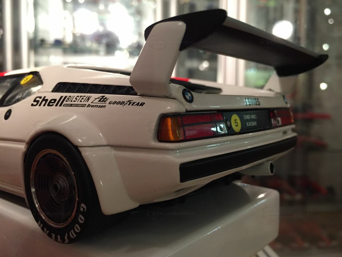 The 1/18 scale model car from Minichamps offers a detailed replica of the BMW M1 Procar. Made from diecast material, it stands out for its high quality and precision. Collectors like "Carjunky" on Modelly appreciate the accurate representation of the racing car's paintwork and the true-to-life details such as the sponsor decals and specific Procar design features. The wheels, tire treads, and even the smaller details like the front and rear lights have been carefully recreated. A look at the photos shows the attention to detail that has been put into this model, from the aerodynamic front to the distinctive rear spoiler.