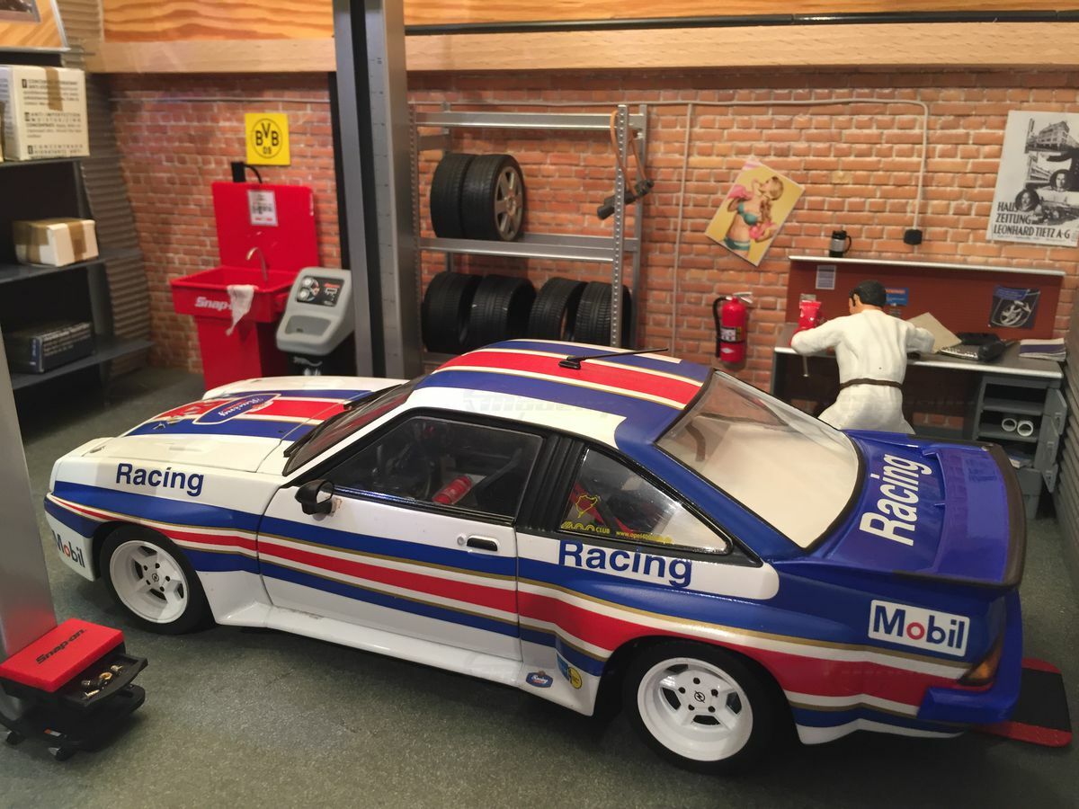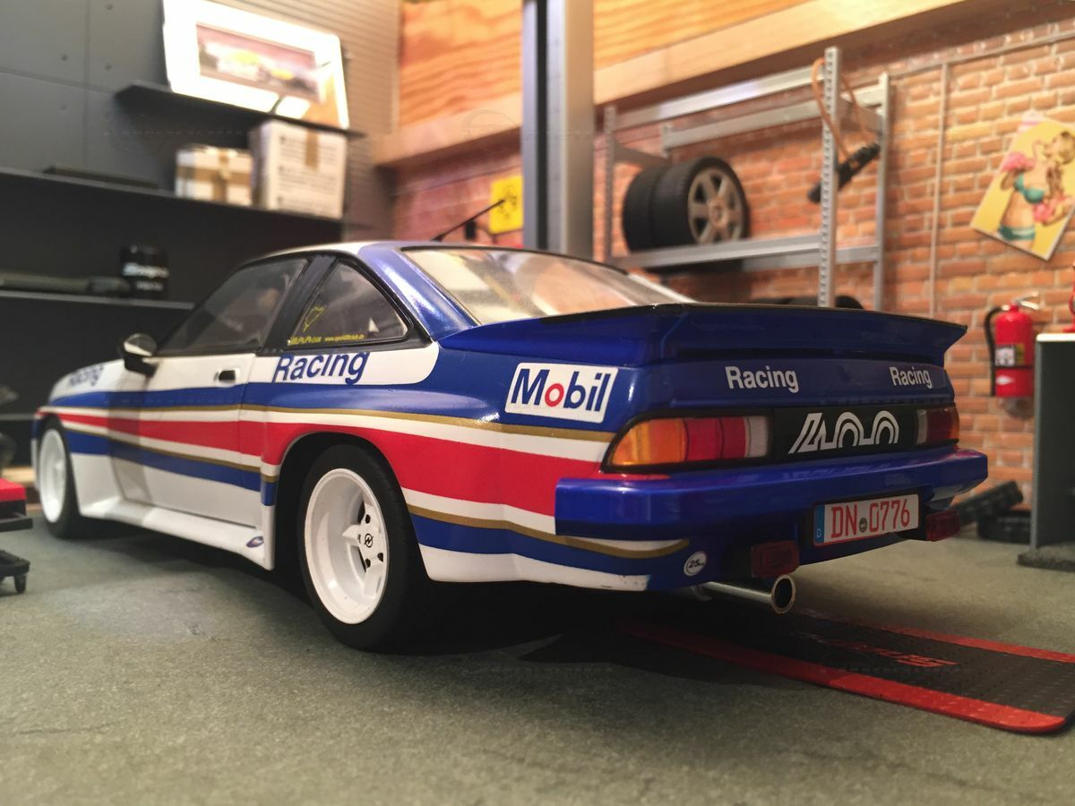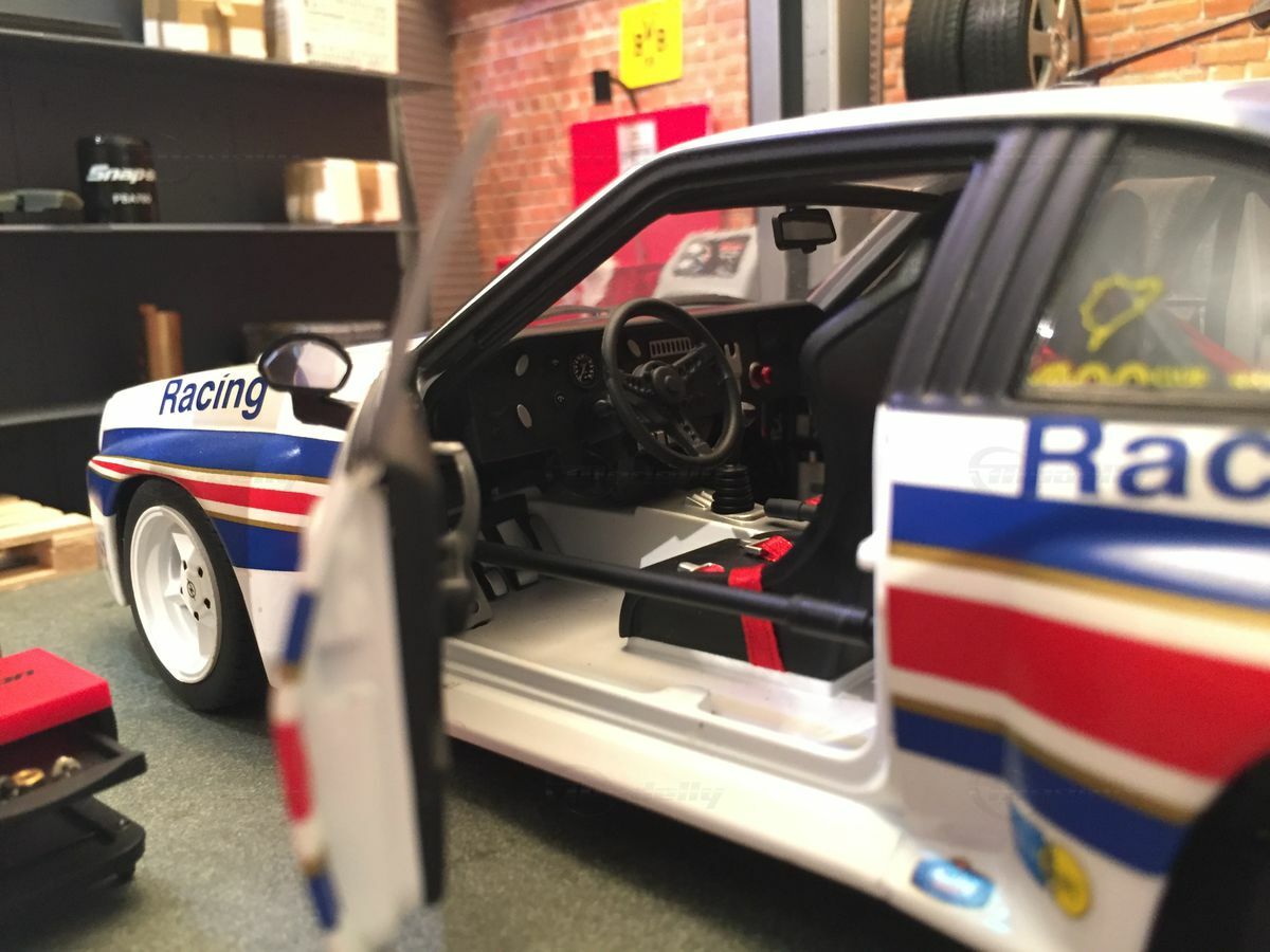 The miniature of the Opel Manta 400 Racing showcased here, in a 1/18 scale, was crafted by Revell and belongs to the collection of Modelly member "Carjunky". Made from durable diecast material, this model car stands out with incredibly detailed replicas and high accuracy compared to the original. The model is a 1/18 scale masterpiece that not only captures the external aesthetics of the real racing car, but also replicates the internal details as well as possible in the 1/18 scale. Important sponsor decals like Mobil and Bremen Racing are clearly visible, adding to the authenticity of the model.