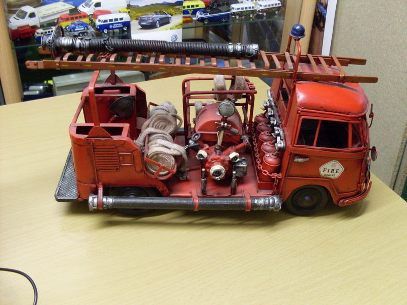 VW T1 Feuerwehr Modell aus Blech mit Leiter und schläuchen.