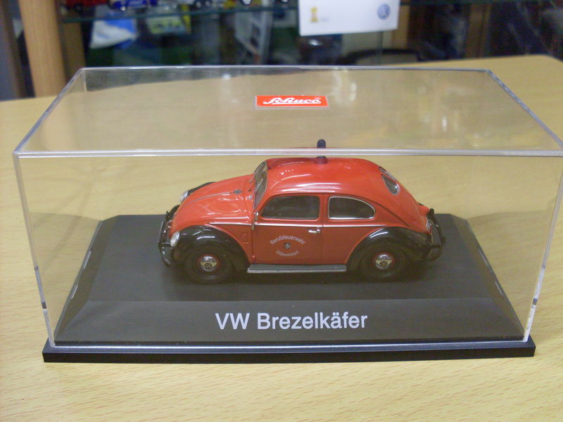 VW Brezel Käfer in PC Vitrine der Berufsfeuerwehr Düsseldorf.