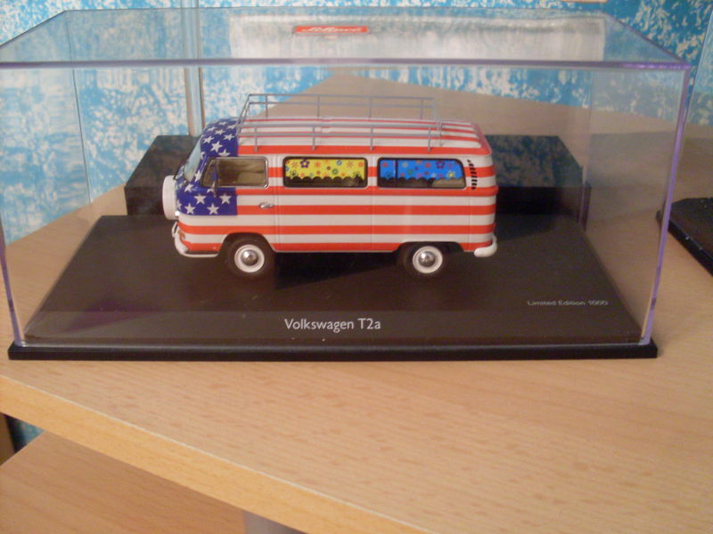 T2 Bemalt mit der USA Flagge aufgesetztdem Dachgepäckträger und Reserverad vorne