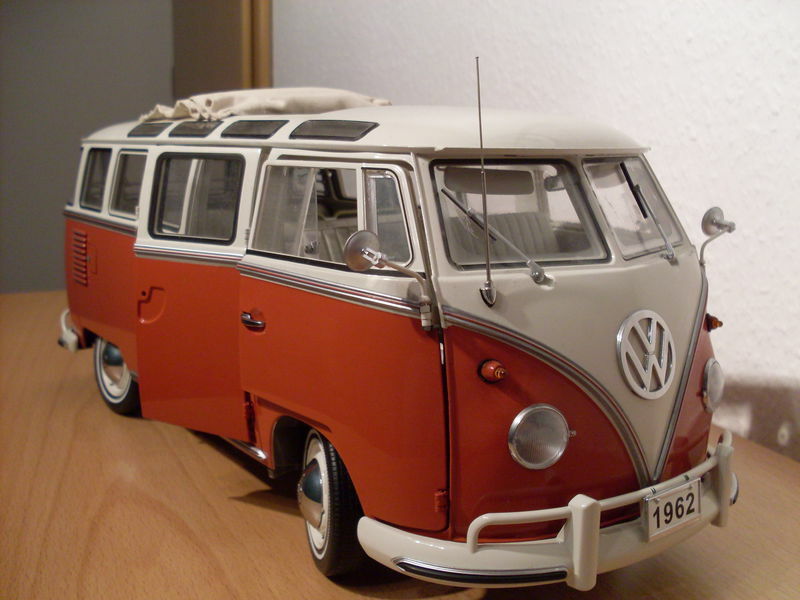T1 Microbus von SunStar auf 5000 Modell limitiert, ich hab die Nummer 912. Türen,Fenster Dach zum öffnen.Räder können abmontiert werden Werkzeug ist mit dabei ;)