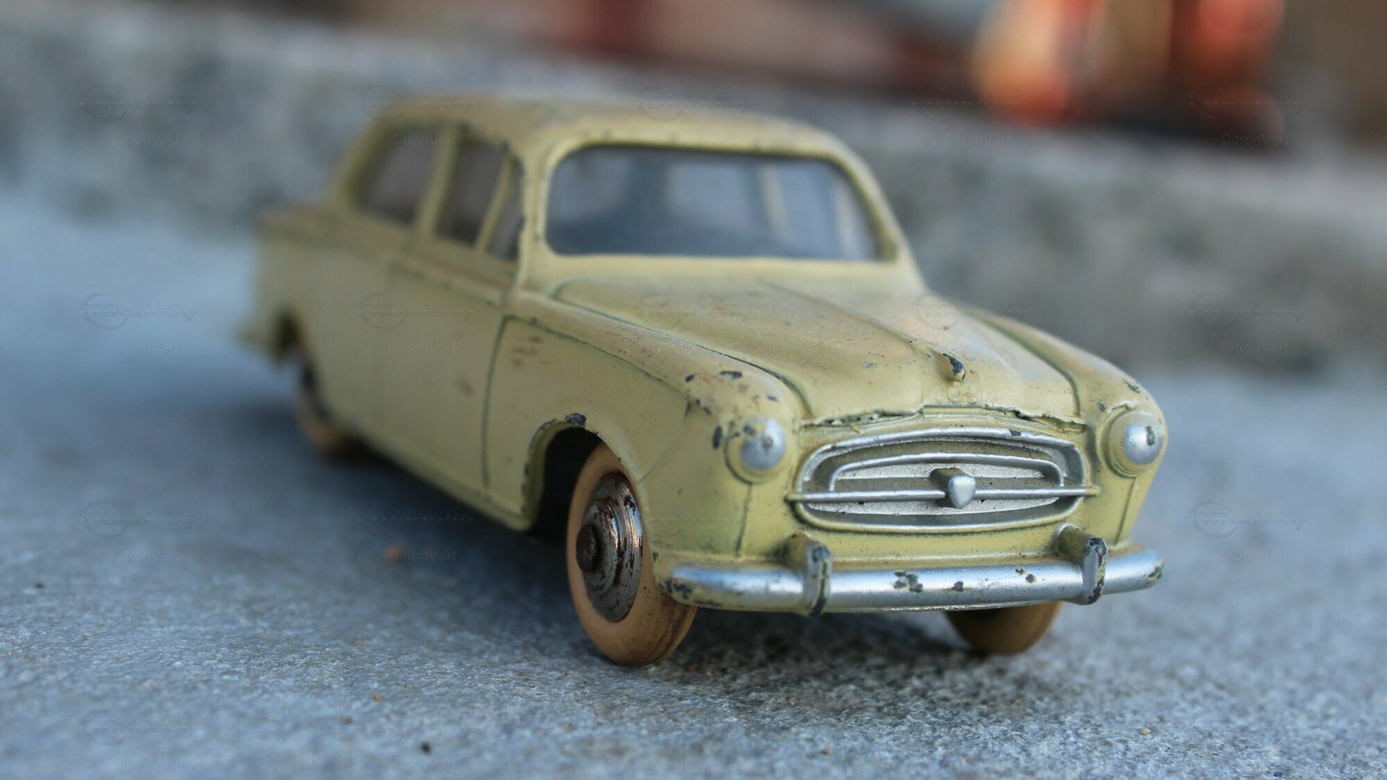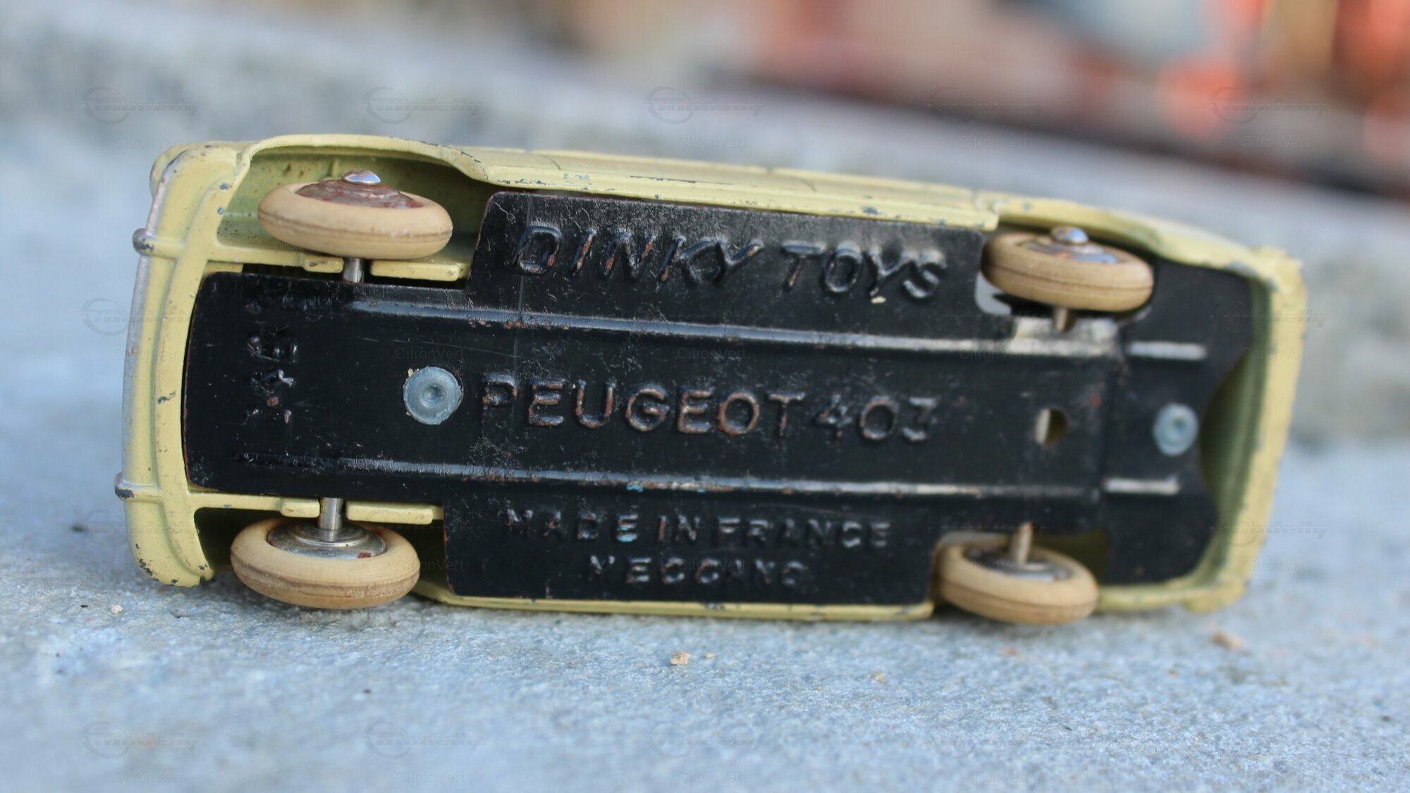 Issu de la mythique Série 24 de Dinky Toys, ce modèle arbore une couleur assez "sérieuse" typique des Peugeot de l'époque. Fait notable sur une Dinky de la Série 24, des vitres en plastique sont présentes sur le modèle.
