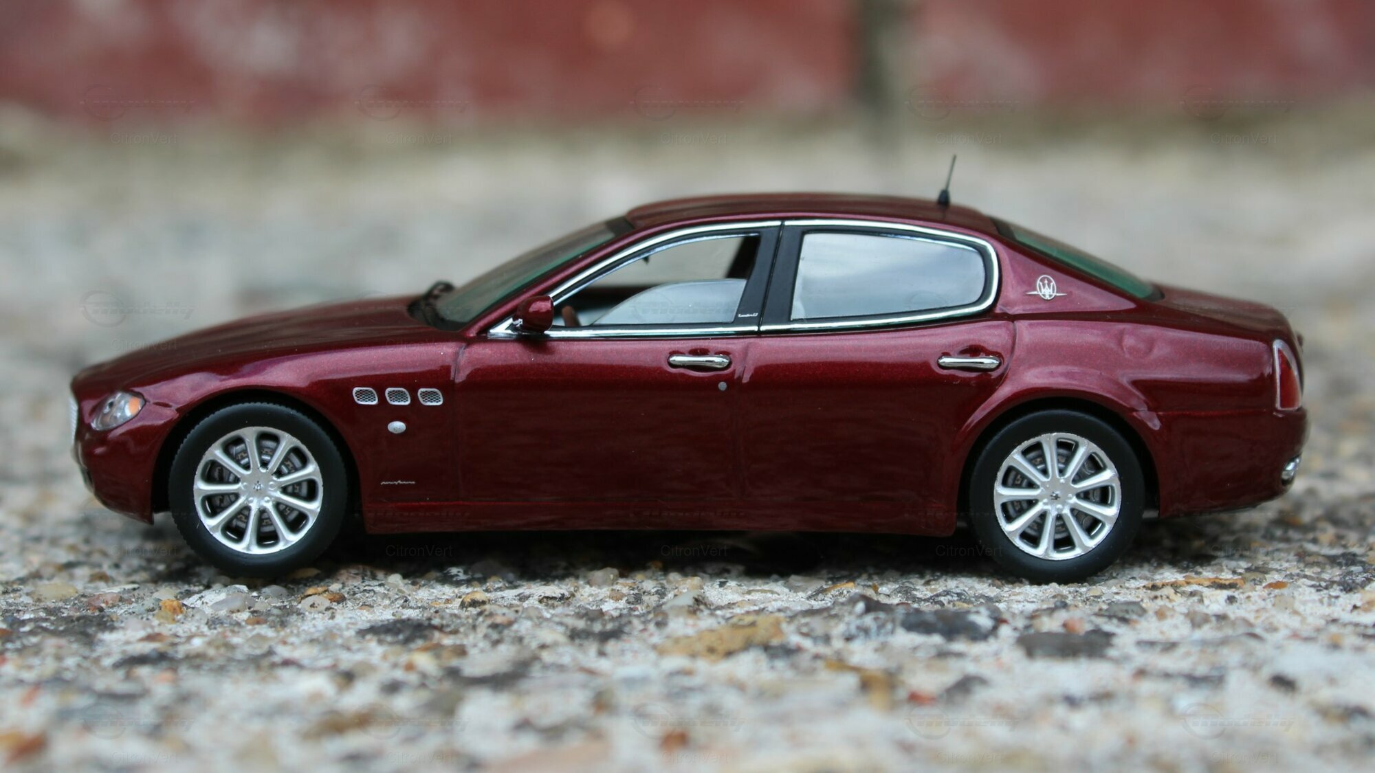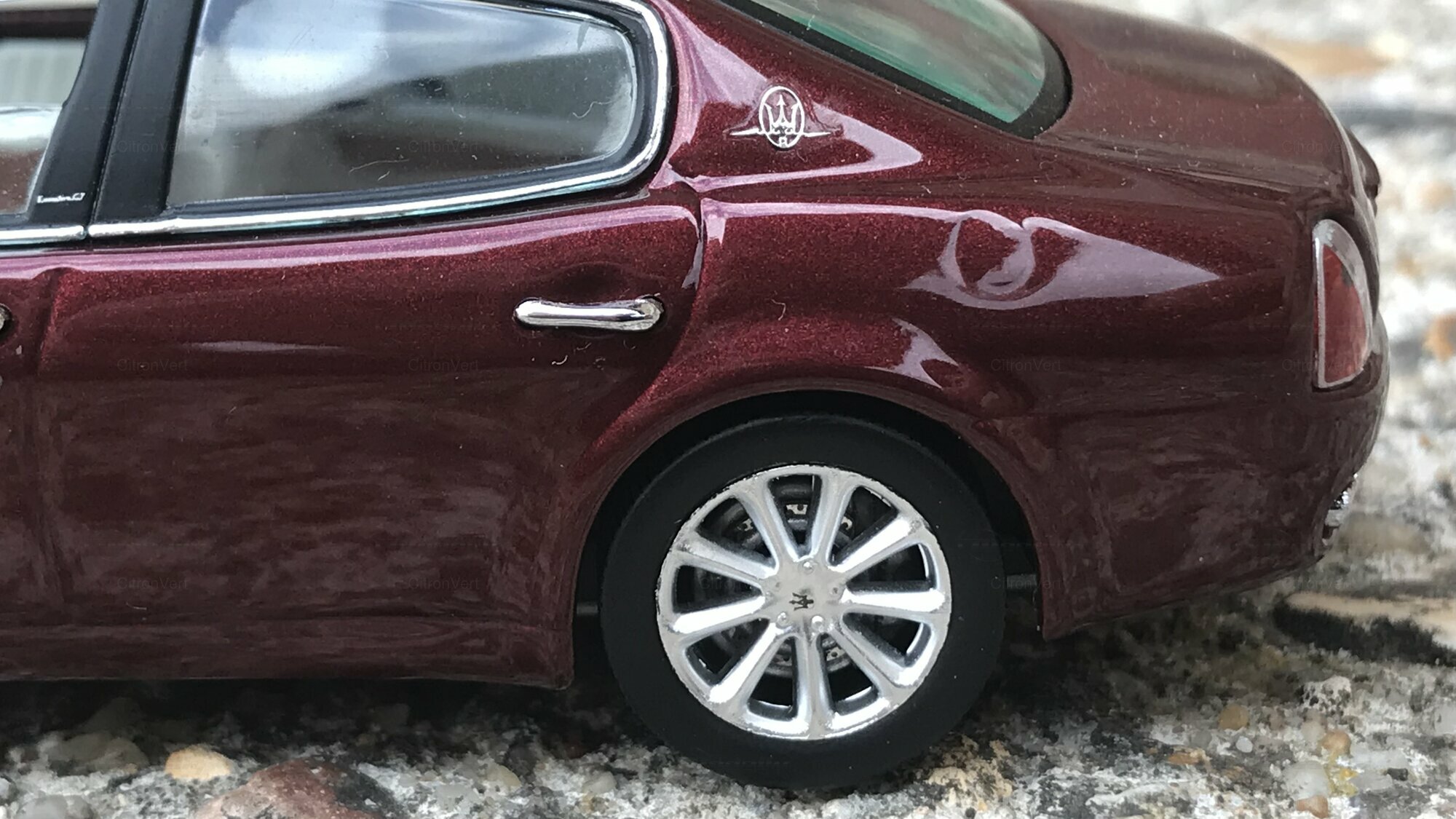 Modèle fabriqué par Ixo pour le compte de la marque Maserati. Une reproduction à penchant haut de gamme arborant une sublime configuration couleur « Bordeaux Pontevichio » couplée à un intérieur cuir crème. Une reproduction très agréable à regarder !