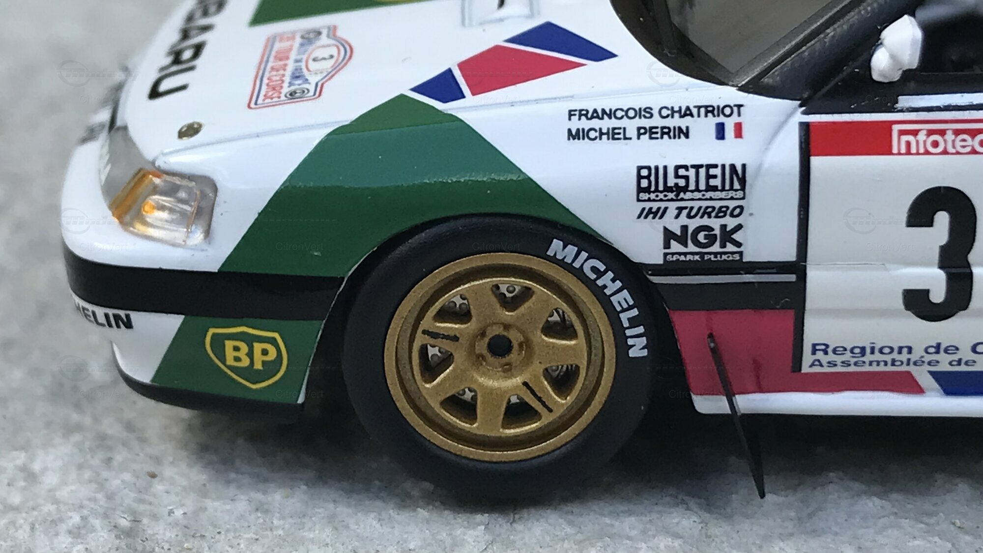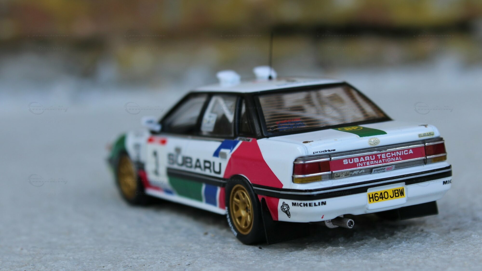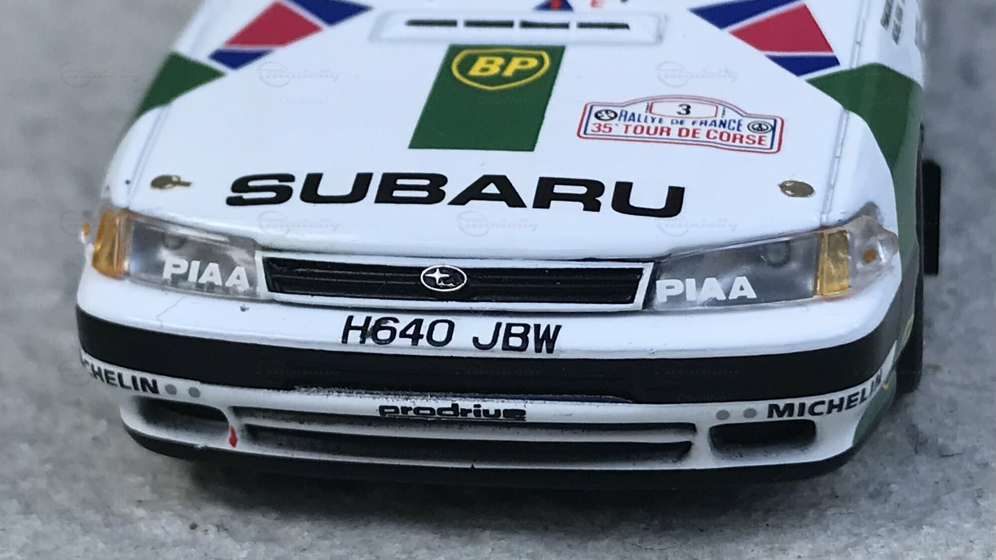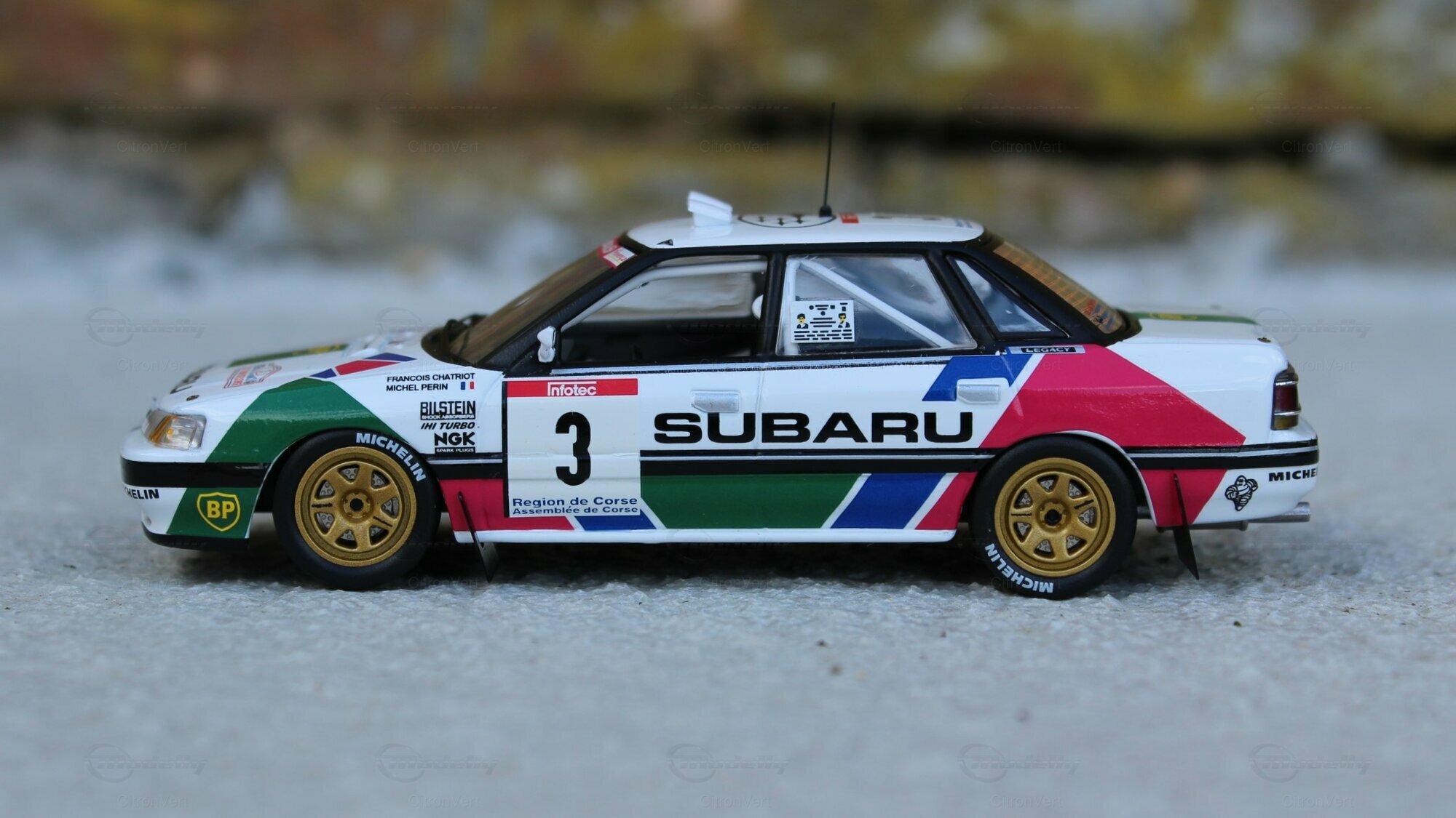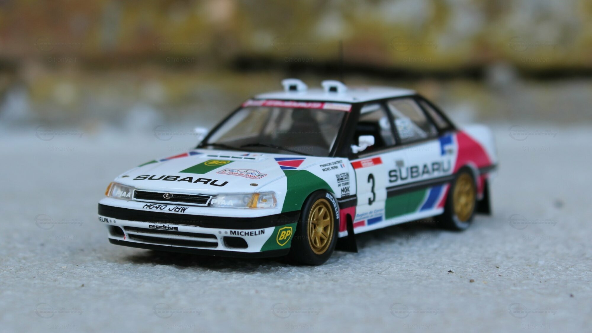 Jolie pièce reproduisant la Subaru de F. Chatriot et M. Perin lors du Tour de Corse 1991. L'intérieur est bien réalisé, tout comme l'extérieur. Seul reproche, la hauteur de caisse peut-être trop basse.
