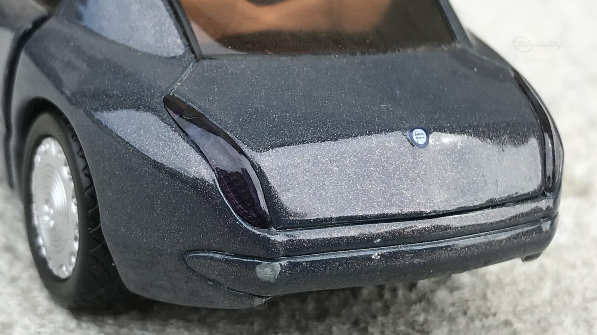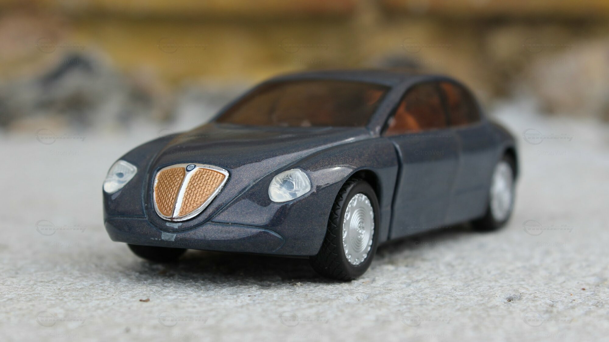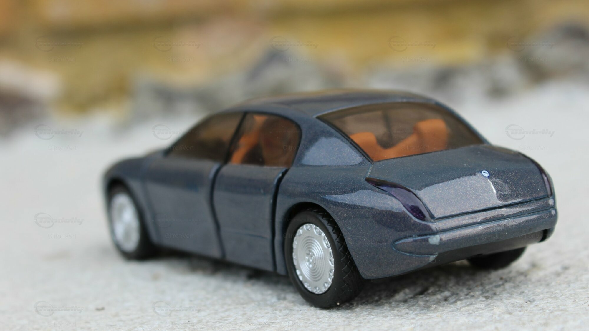 Interprétation signée Solido de l'inspiratrice de la Thésis. Miniature intéressante de par ses fonctions : portières antagonistes ouvrantes et sa banquette avant qui peut se tourner dos à la route grâce à un bouton situé sous la voiture.