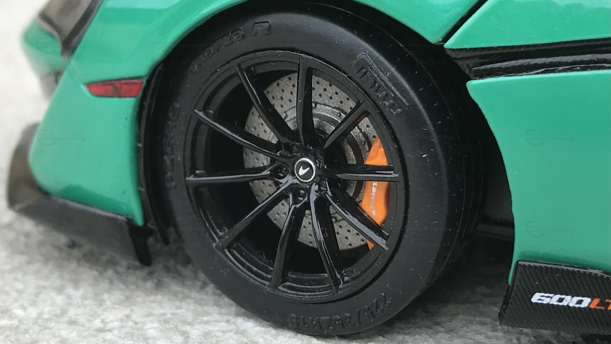 The 1/18 scale model of the McLaren 600LT from Solido is not just a simple collector's item but a small masterpiece that perfectly captures the technical and aesthetic features of its original. The model car delights with its realistic paintwork, detailed brakes, and carefully proportioned wheels. The casting quality and meticulous replication make this model a must-have for those who appreciate technology and design.The green hue of the model, combined with the black and orange elements, makes it a real eye-catcher in any collection. Special attention is deserved for the fine details such as the accurate reproduction of the carbon fiber parts and the faithful shape of the rear end with its imposing diffuser. Every design element of the original has been meticulously replicated in this miniature, allowing the beauty and technical features of the McLaren 600LT to shine even in a small scale.This model car is an excellent choice for collectors who value quality and attention to detail. Whether as part of a comprehensive collection or as a standalone piece, the miniature by Modelly member "CitronVert" is sure to attract many looks and serve as a conversation piece.