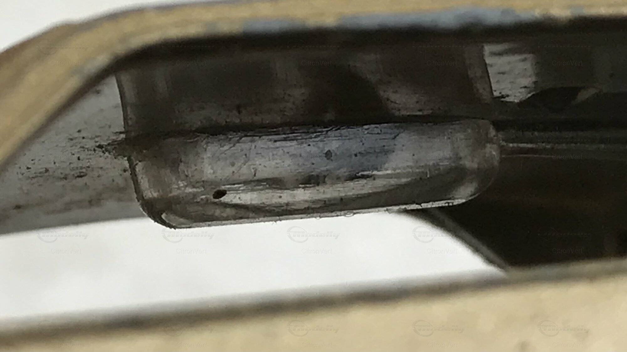 - La pile qui servait à alimenter l'éclairage se glisse dans un compartiment refermable sous le châssis visible sur les photos (ici ouvert).