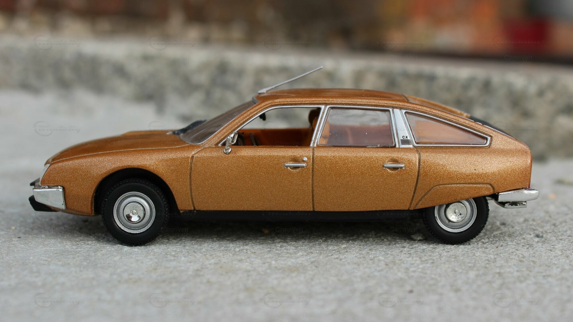 Modèle commercialisé par les Editions Atlas (collection "Passion Citroën") et fabriqué par UH. Il s'agit de la version d'entrée de gamme de la CX à sa sortie en 1975. Elle parait ici dans une jolie configuration "Sable Cendré" avec des sièges assortis à cette même couleur.