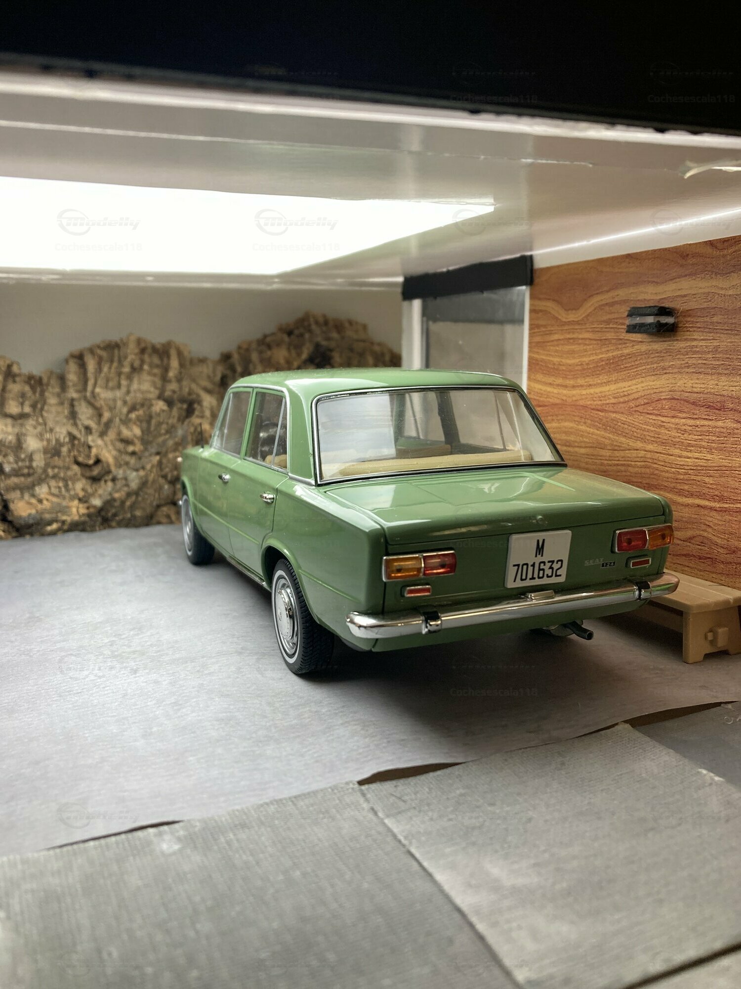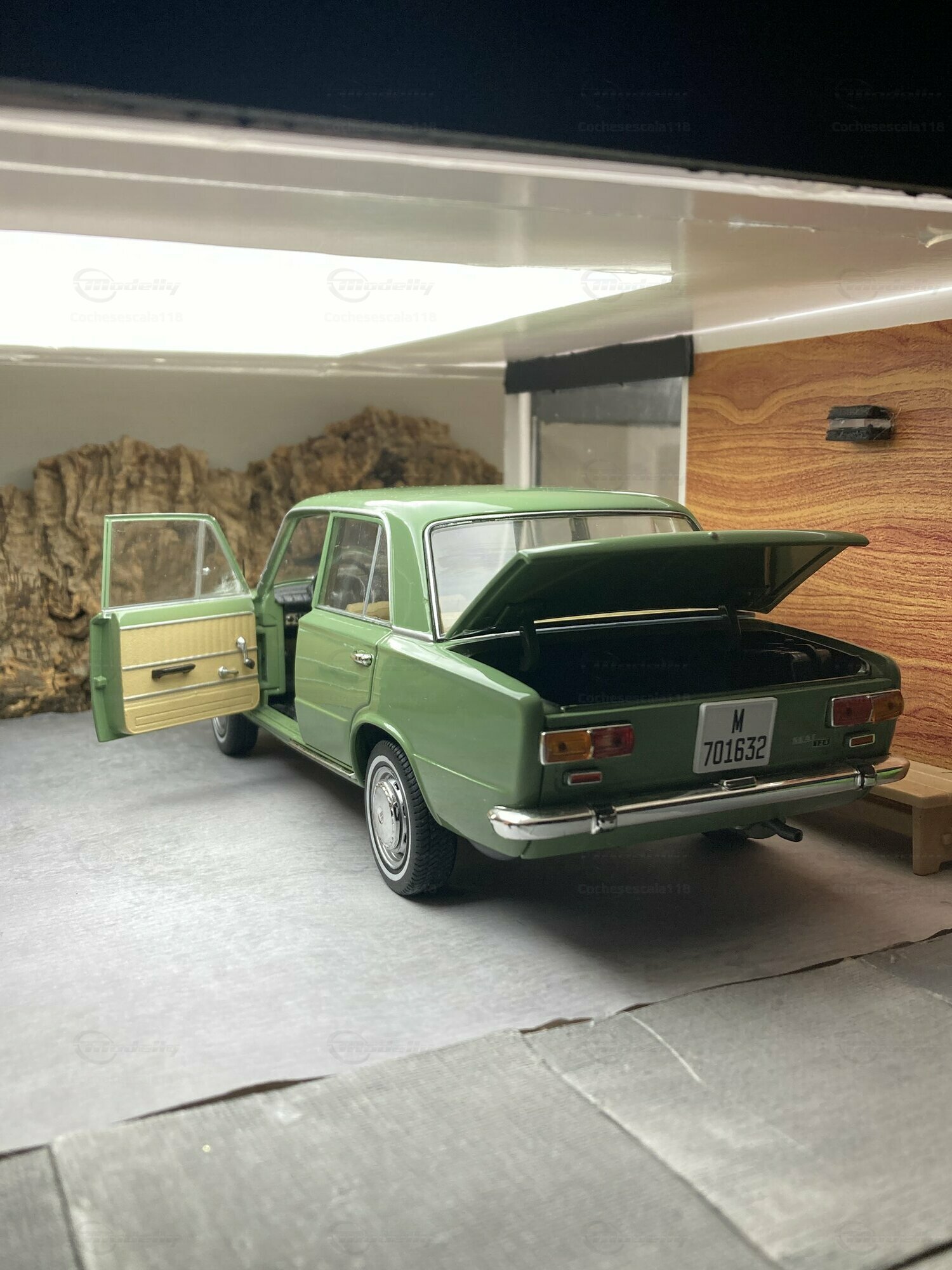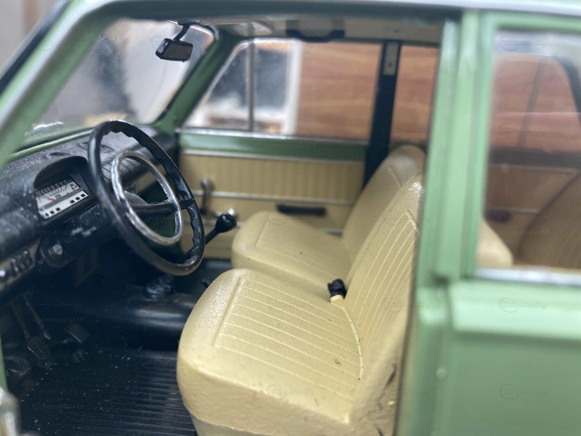 The model in the collection of "Cochesescala118" reproduces many authentic details that will make any collector's heart race. The standout features are the silver wheels with authentic chrome covers and the accurately replicated logos and lettering. The green model car shines in a rich olive green, faithfully representing the year and generation of the original vehicle. The modified version showcases individual customizations that give the model a unique look, setting it apart from the original prototype. Overall, this modified model car offers an excellent way to appreciate and admire a classic of automotive history in miniature form.