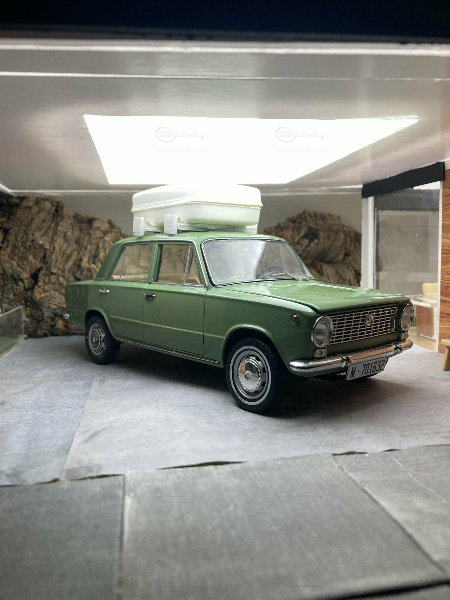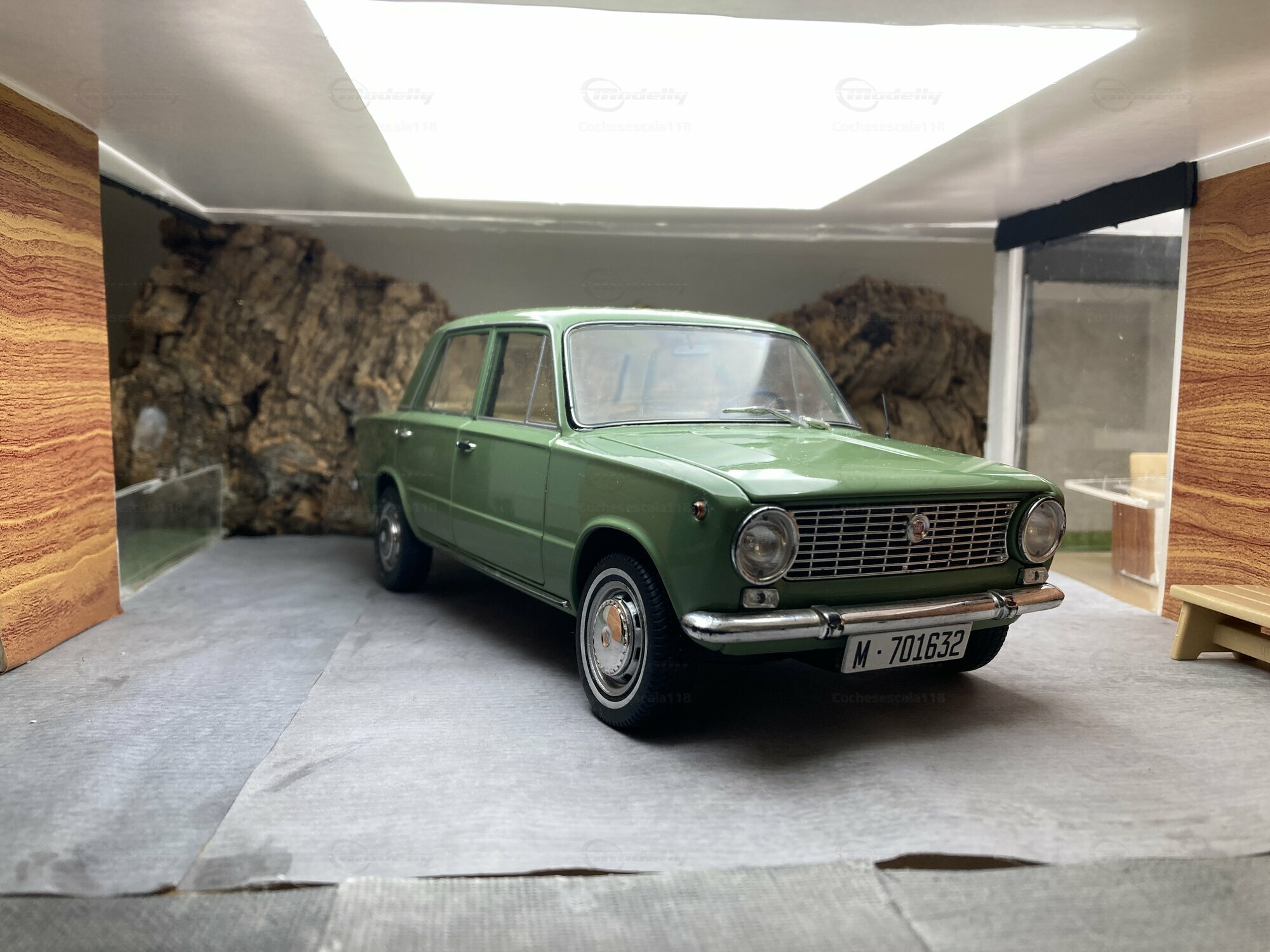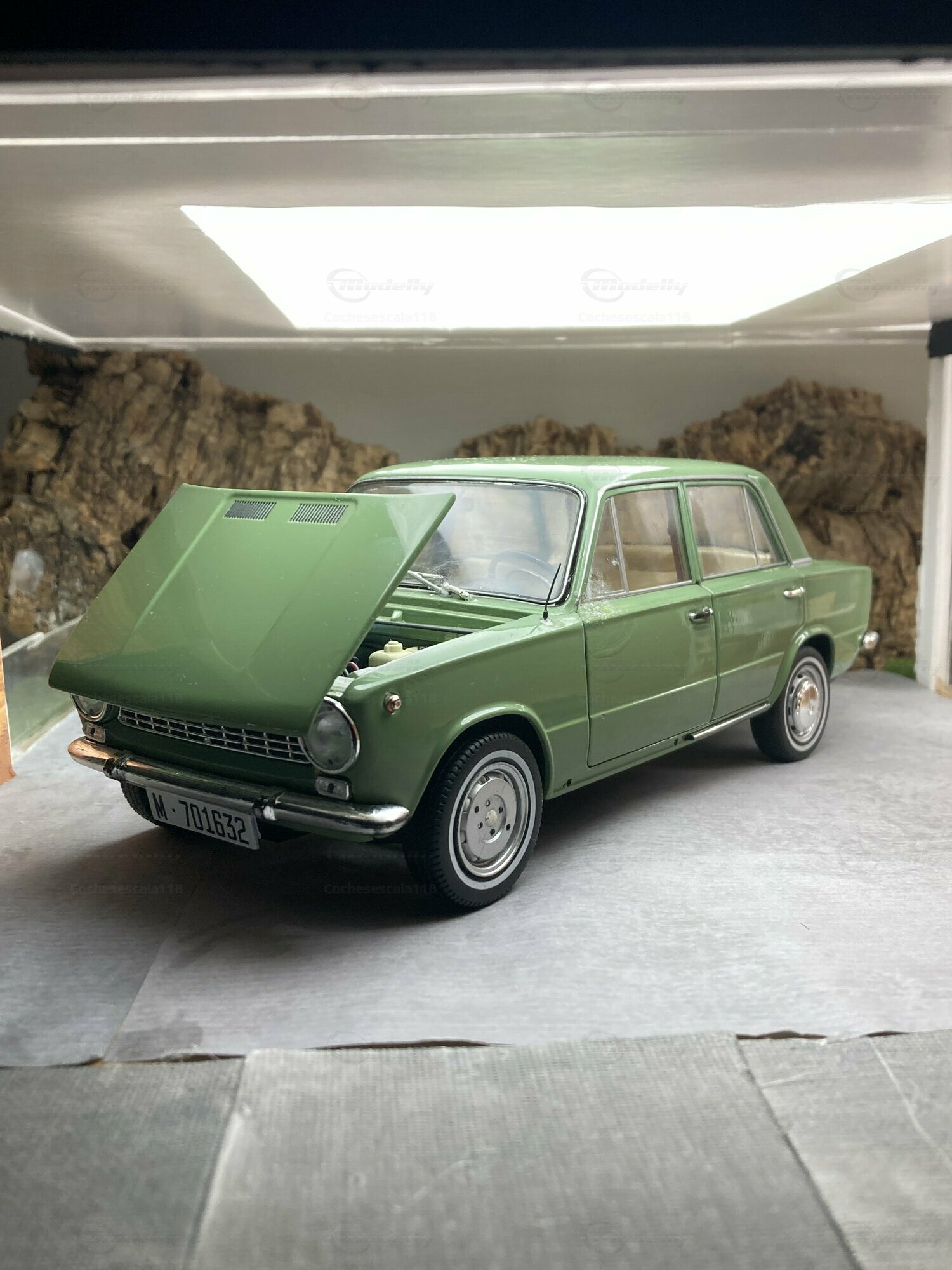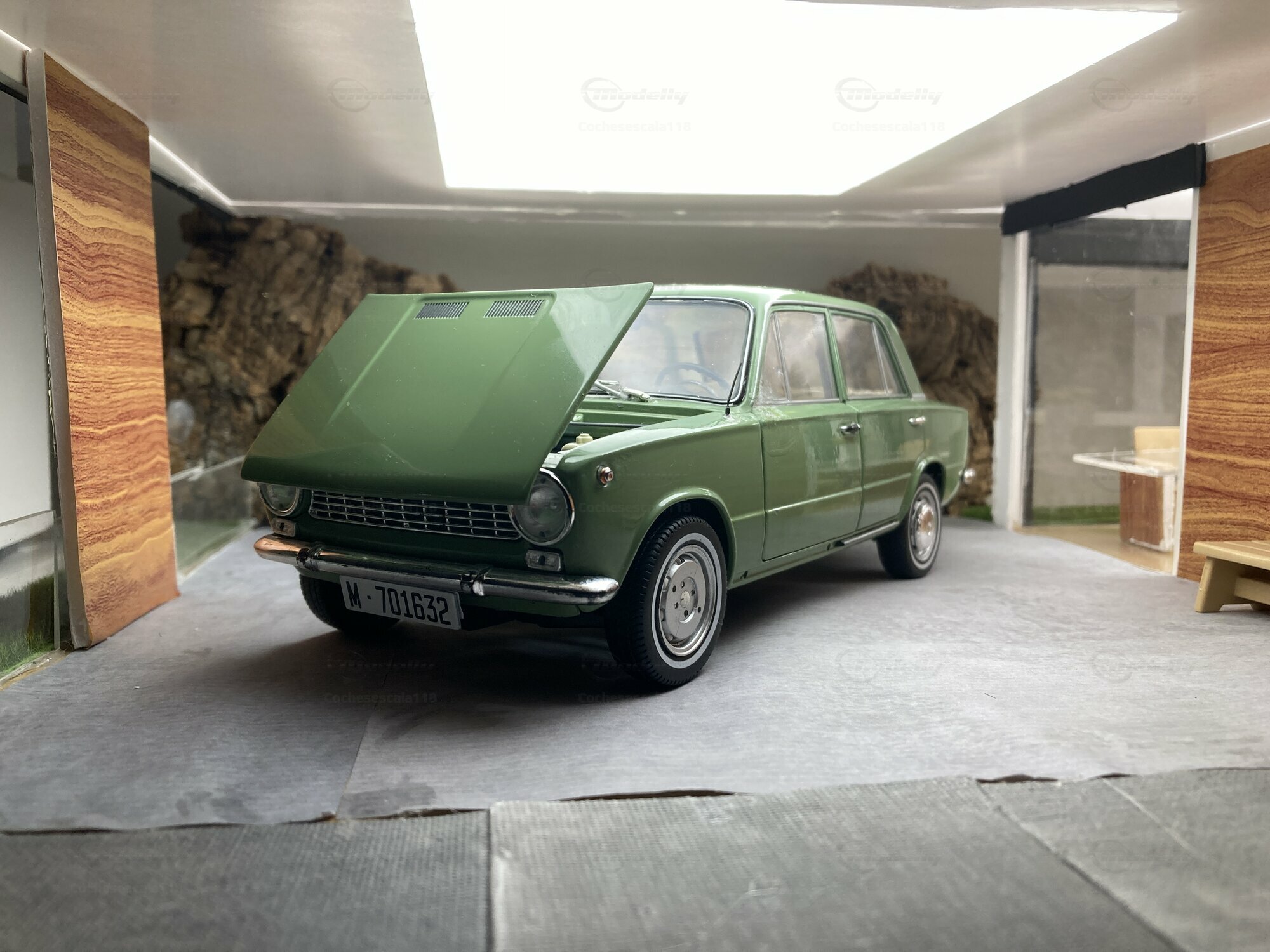 The model in the collection of "Cochesescala118" reproduces many authentic details that will make any collector's heart race. The standout features are the silver wheels with authentic chrome covers and the accurately replicated logos and lettering. The green model car shines in a rich olive green, faithfully representing the year and generation of the original vehicle. The modified version showcases individual customizations that give the model a unique look, setting it apart from the original prototype. Overall, this modified model car offers an excellent way to appreciate and admire a classic of automotive history in miniature form.