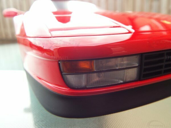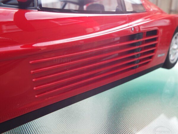 The model we are looking at here is a 1/12 scale representation of the Ferrari Testarossa by Kyosho Samurai. This miniature is specially crafted for collectors and enthusiasts of high-quality models. It is a limited edition of 500 pieces, further emphasizing its exclusive nature. It is made from high-quality resin, a material that brings finesse and precision to model construction. In the photos, you can clearly see the accurately reproduced features of the original, such as the iconic front section with the wide grille and pop-up headlights. The vibrant red color of the model, typical of Ferrari, has been faithfully replicated on the miniature, giving it an extraordinary appearance.