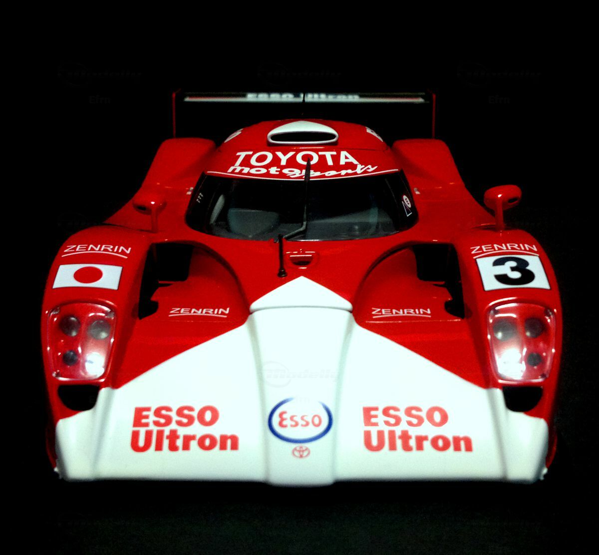 The scale model of the TOYOTA GT-One was developed by AUTOart Racing Division as a tribute to one of the most significant racing cars of the 1990s. This 1/18 model, crafted by AUTOart Racing Division, captures the essence of the original in the world of miniatures, made from diecast material. The red and white livery with the "ESSO Ultron" and "ZENRIN" markings showcases the famous racing history of the original.