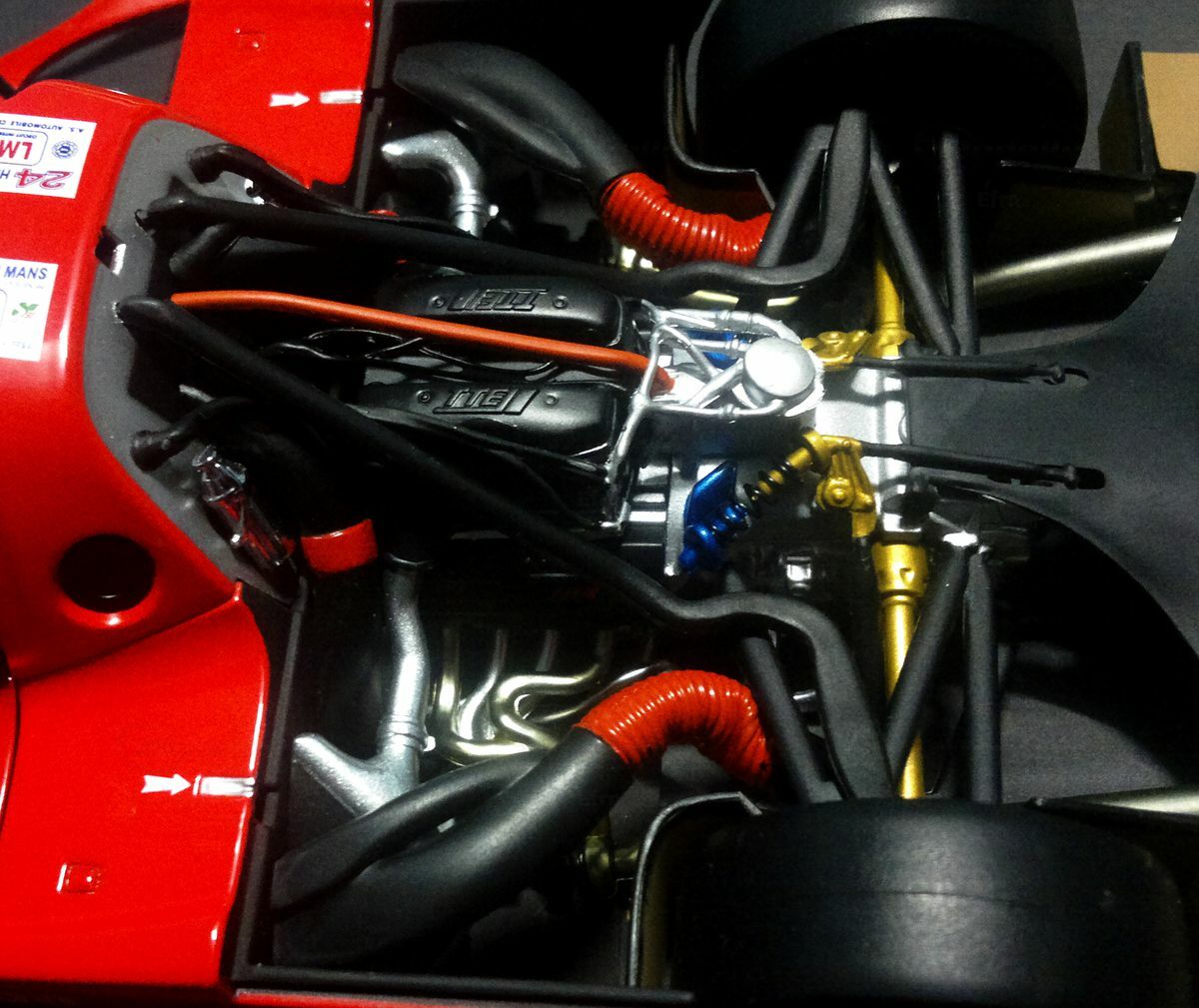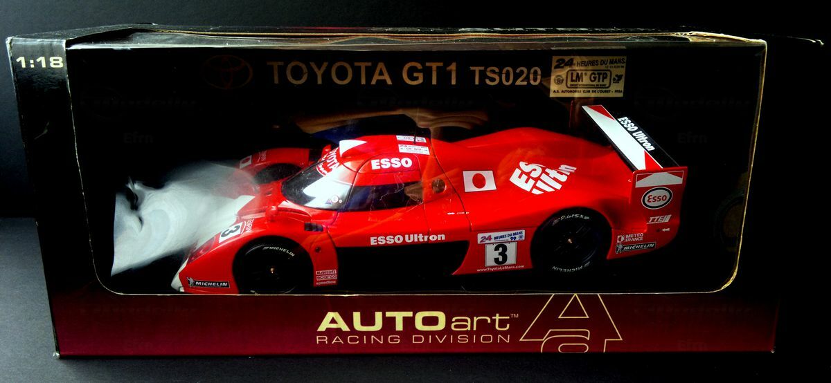 The model builder AUTOart Racing Division has done an outstanding job here. The 1/18 scale model of the TOYOTA GT-One displays impressive attention to detail, from the chassis shape to the authenticity of the applied sponsor logos. From the front splitter to the side skirts to the rear diffuser, this miniature car showcases everything that will make a collector's heart beat faster. The color scheme, consisting of dominant red and white, complemented by black and white sponsor decals, gives the model the distinctive and unmistakable look of the original. Particularly noteworthy are the precision of the details and the clean craftsmanship, making the model a must-have for collectors.
