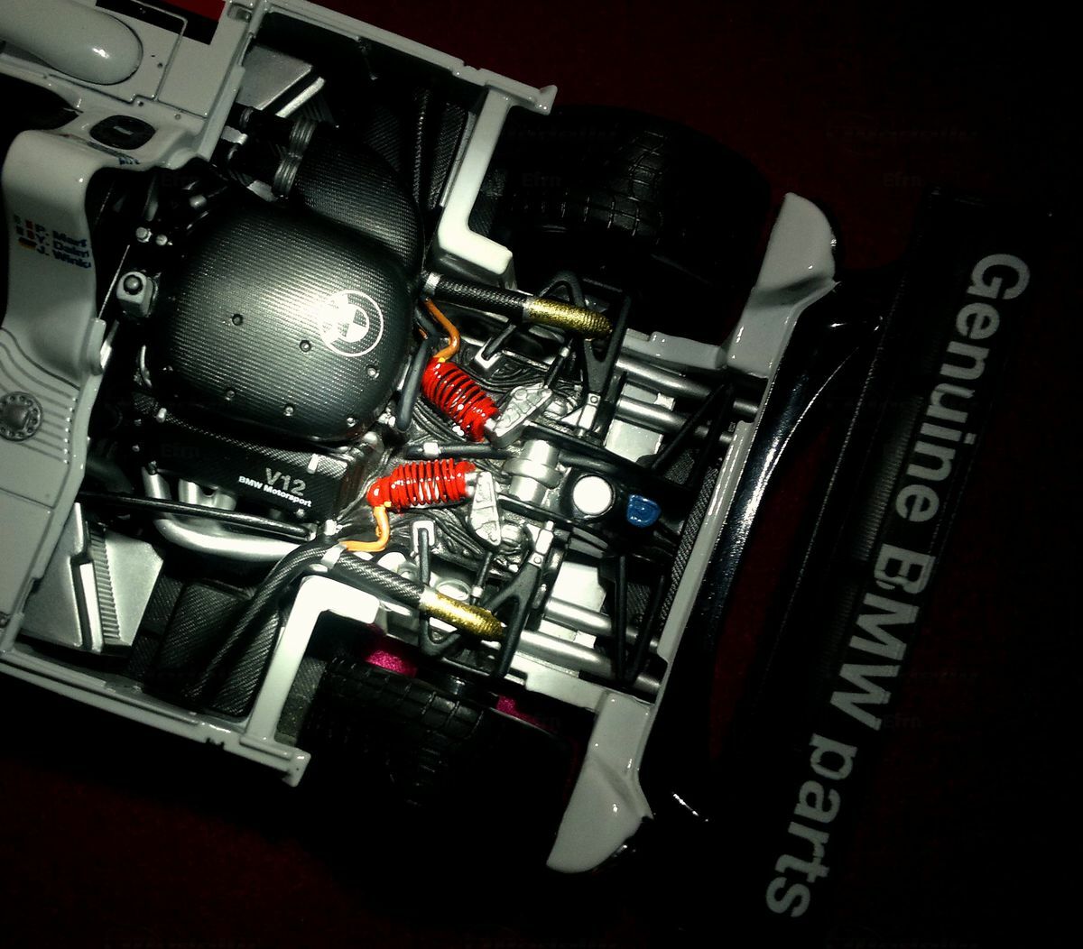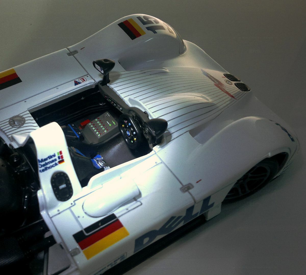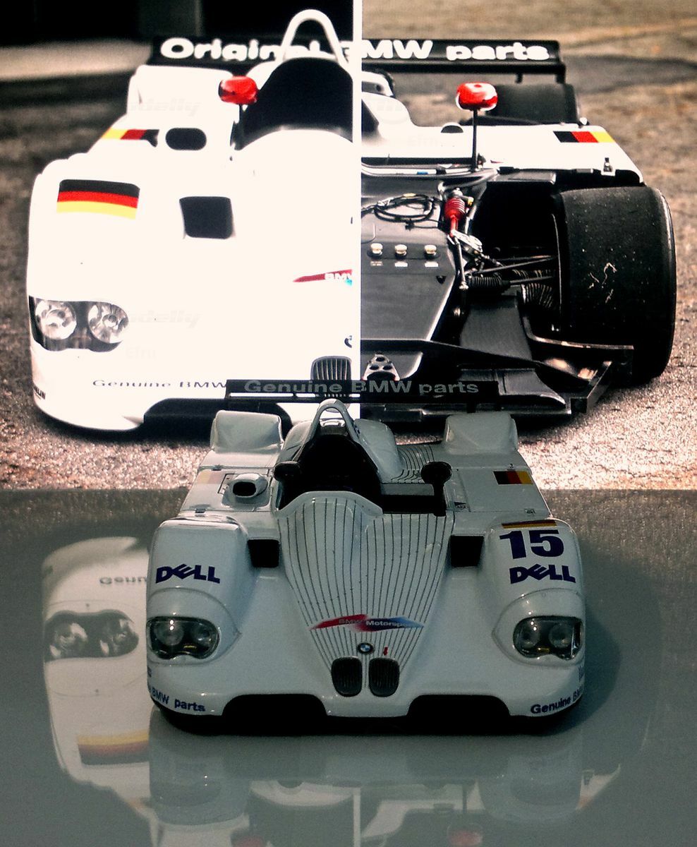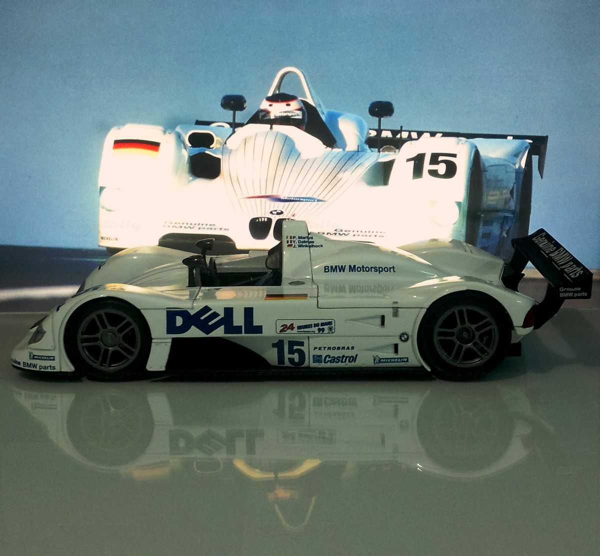 This cool 1/18 model is based on the BMW V12 LMR and is made by Maisto. But here's the twist: this specific model is modified and doesn’t represent the original product by Maisto. It belongs to a collector named Efrn. This diecast beauty isn’t just any ordinary model; it’s crafted from high-quality materials and showcases the exterior features of the real deal. The model sports an eye-catching white finish with blue and red accents, reflecting the distinctive look of the original race car. The visible sponsors include Dell, Michelin, and Castrol, whose logos are stylishly placed on the vehicle.