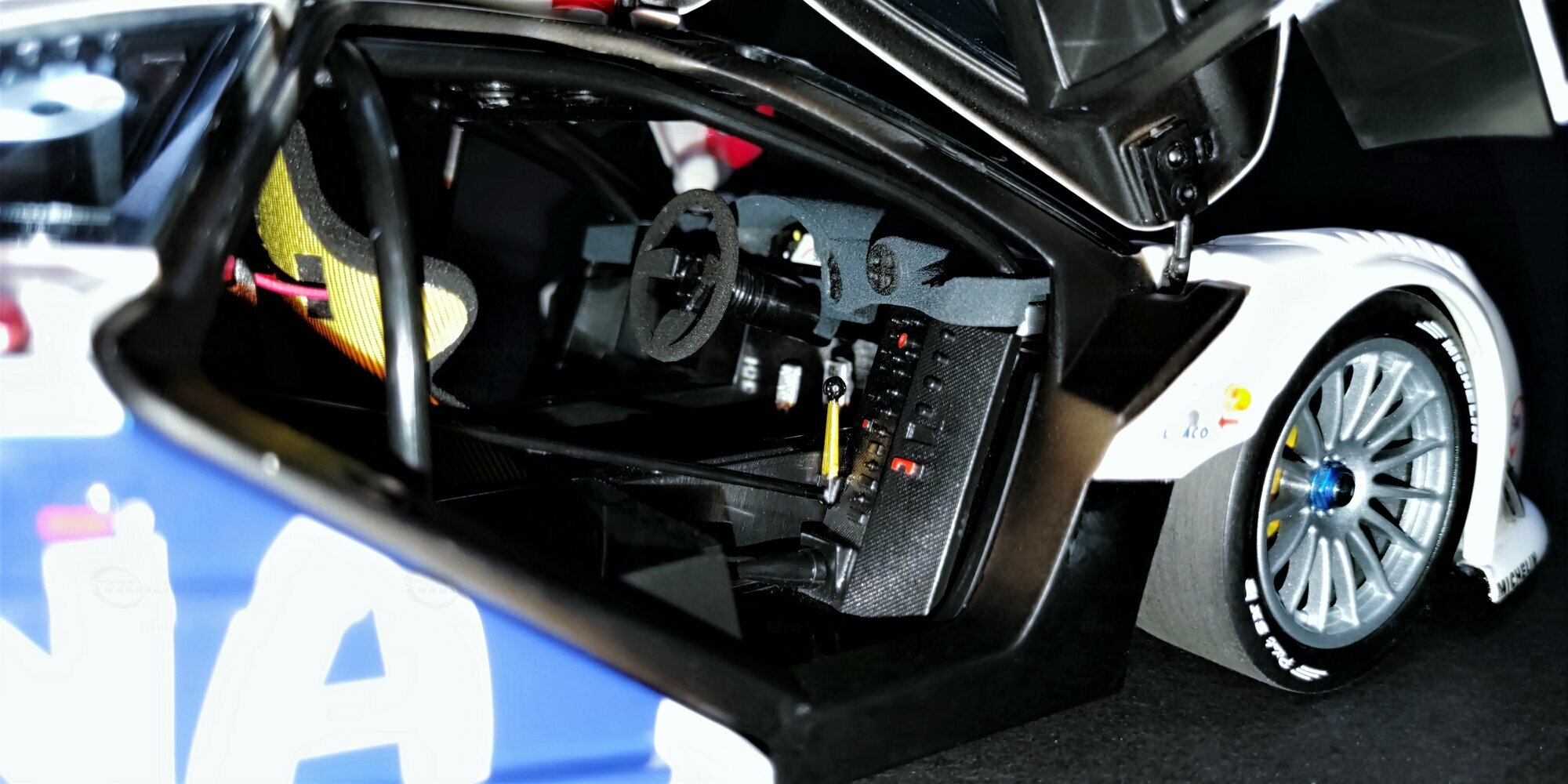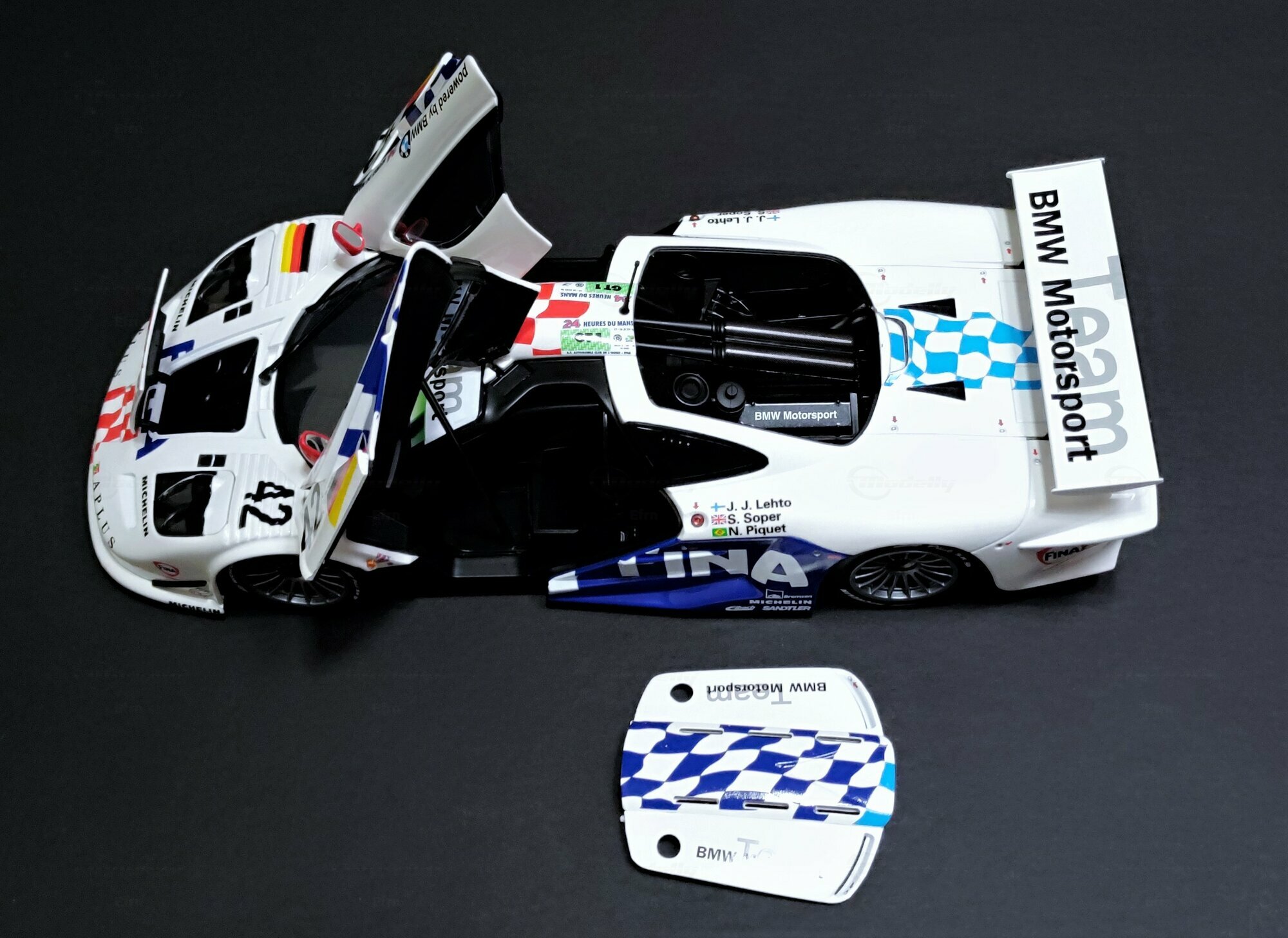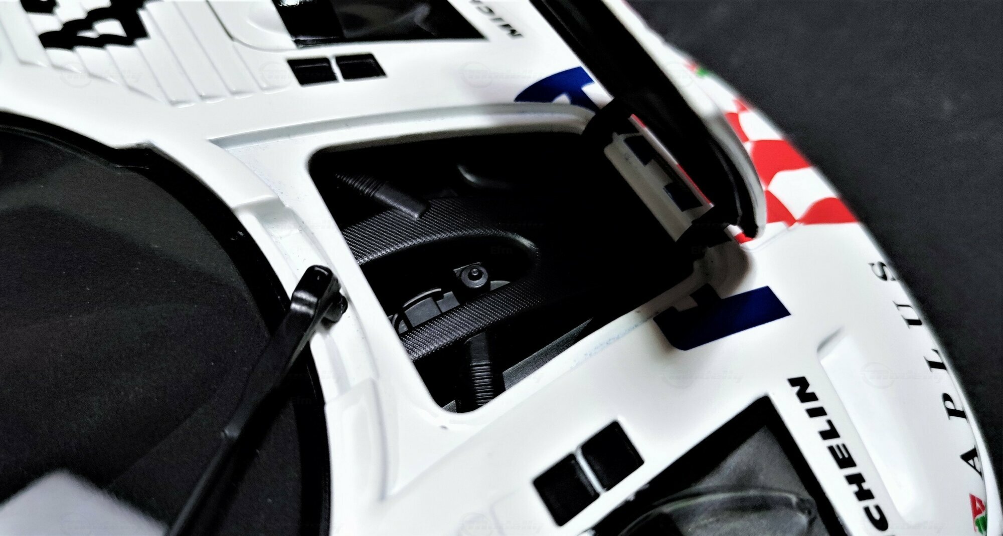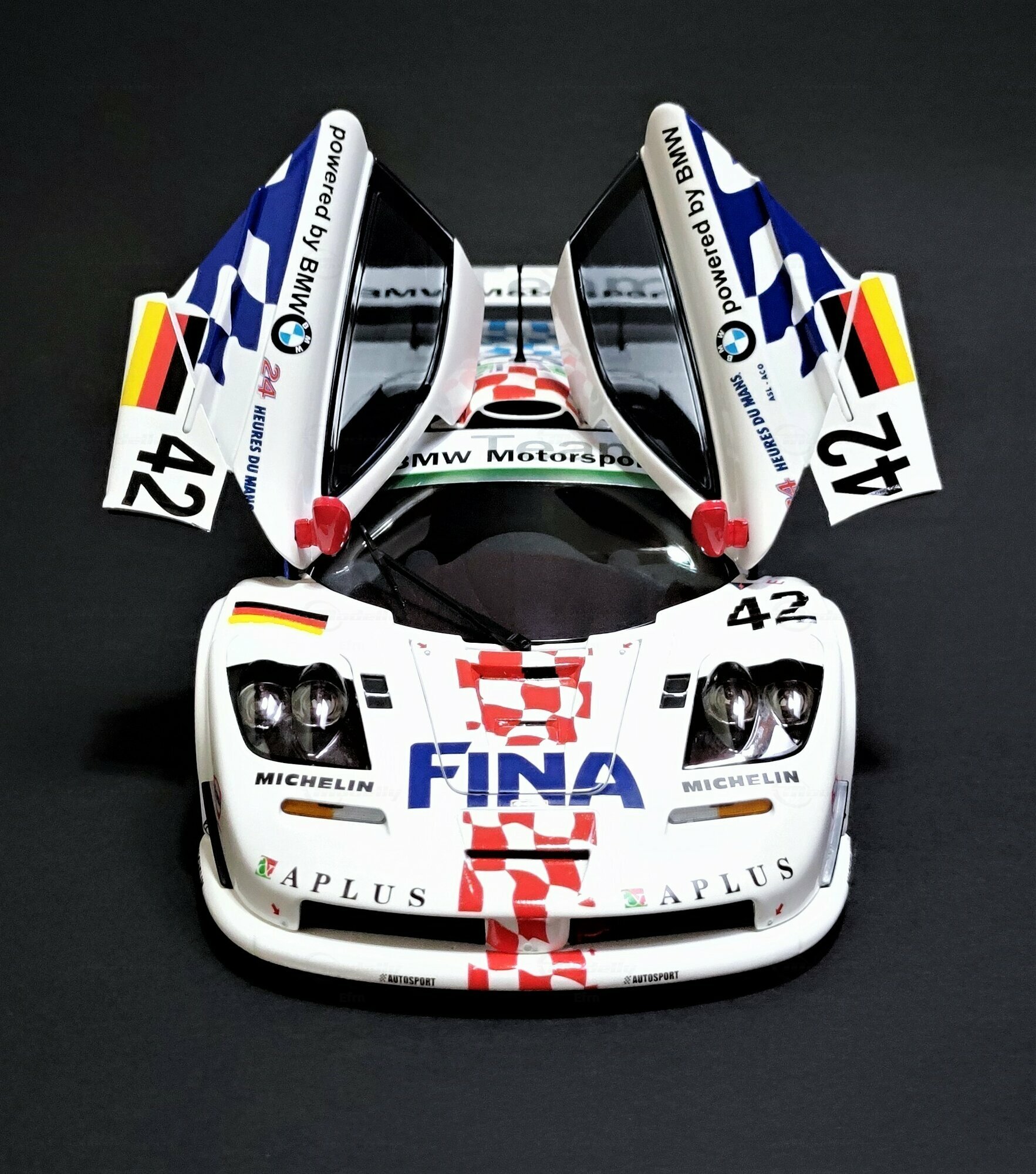 This Minichamps model car in the scale of 1/18 also includes many notable intricacies, such as the detailed wheels, headlights, mirrors, and sponsor decals. Collectors can admire the precise representation of the original McLaren F1 GTR, which is part of Modelly member "Efrn's" collection. By opting for die-cast material, this model offers an impressive blend of robustness and intricate detailing. It's a must-have for any enthusiast and collector looking to appreciate the legacy of the McLaren F1 GTR in their home.