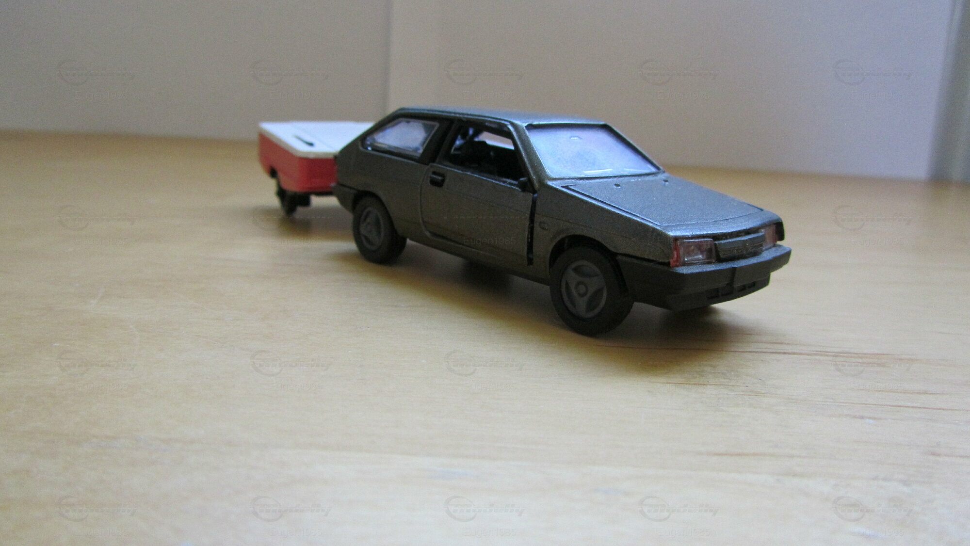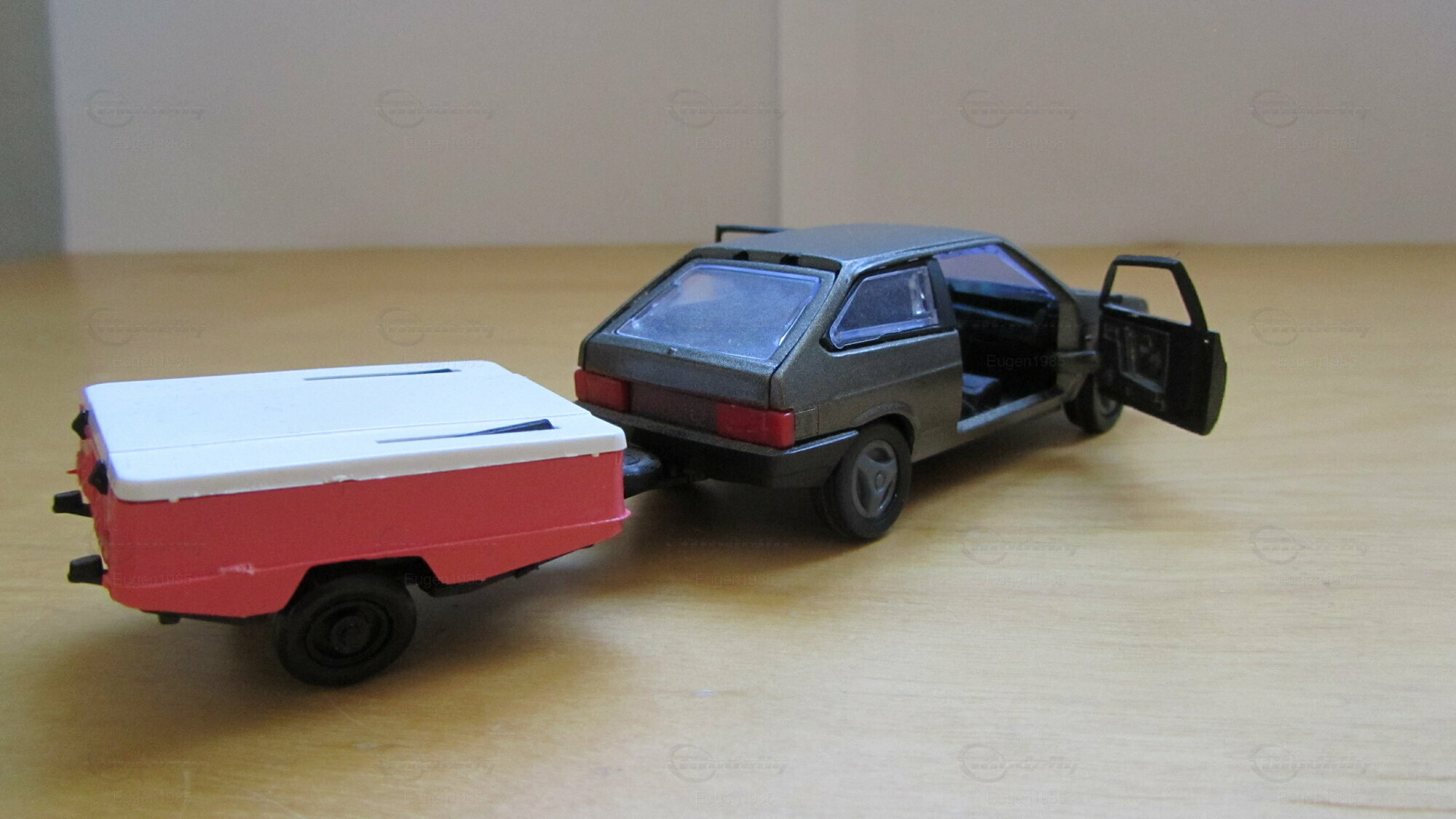 Avtovaz Lada 2108 with Skiff soviet camping trailer(diecast 1:43, Inkoteks)