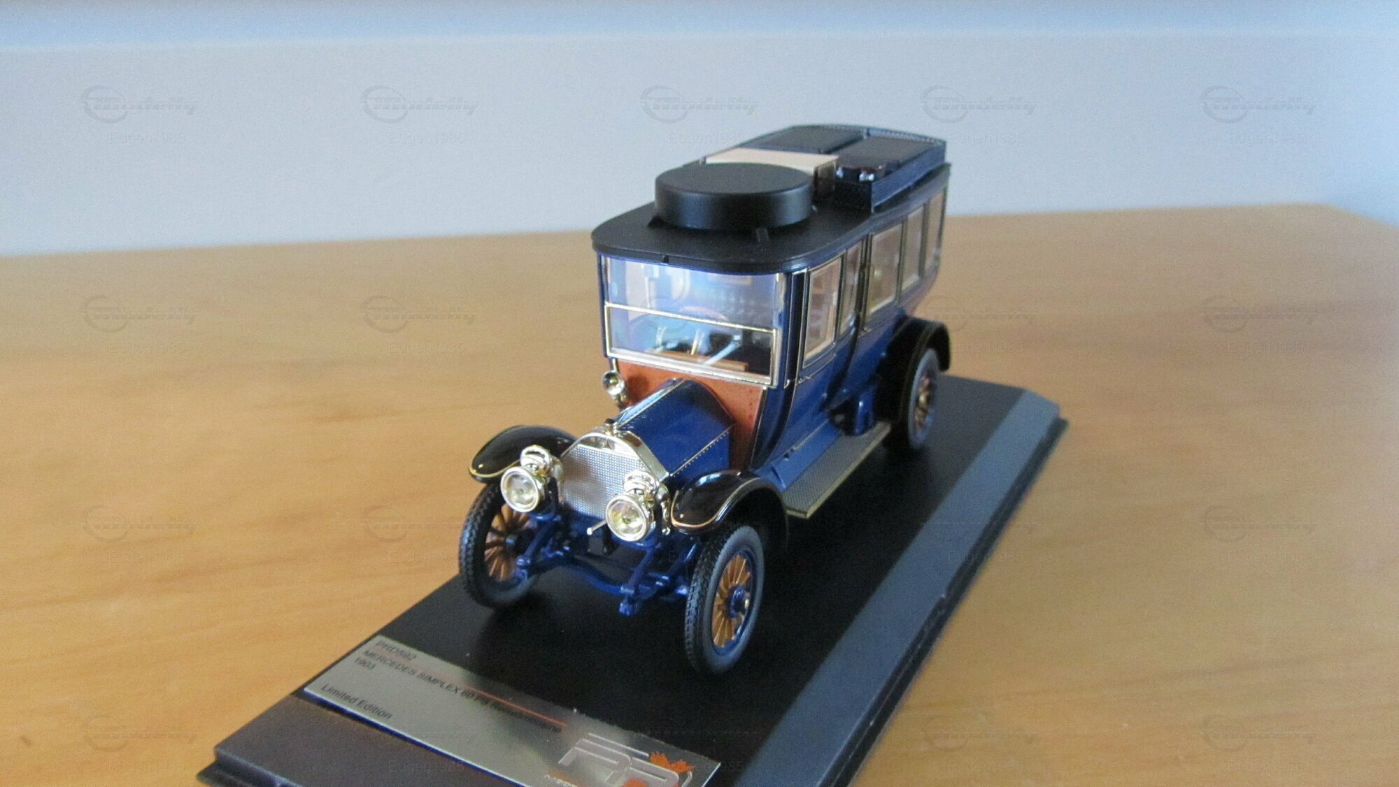 This Premium X model of the Mercedes Simplex Limousine is remarkable not only for its detail but also for its exclusivity – it's a limited edition. This significantly increases its collectible value and appeal. The authentic design, including gold accents and black roof, adds to the realistic representation. The model is mounted on a display base, making it ideal for exhibition and protection in any collection. The combination of historical details and high-quality manufacturing makes this model a cherished item for automotive enthusiasts and model car fans worldwide.
