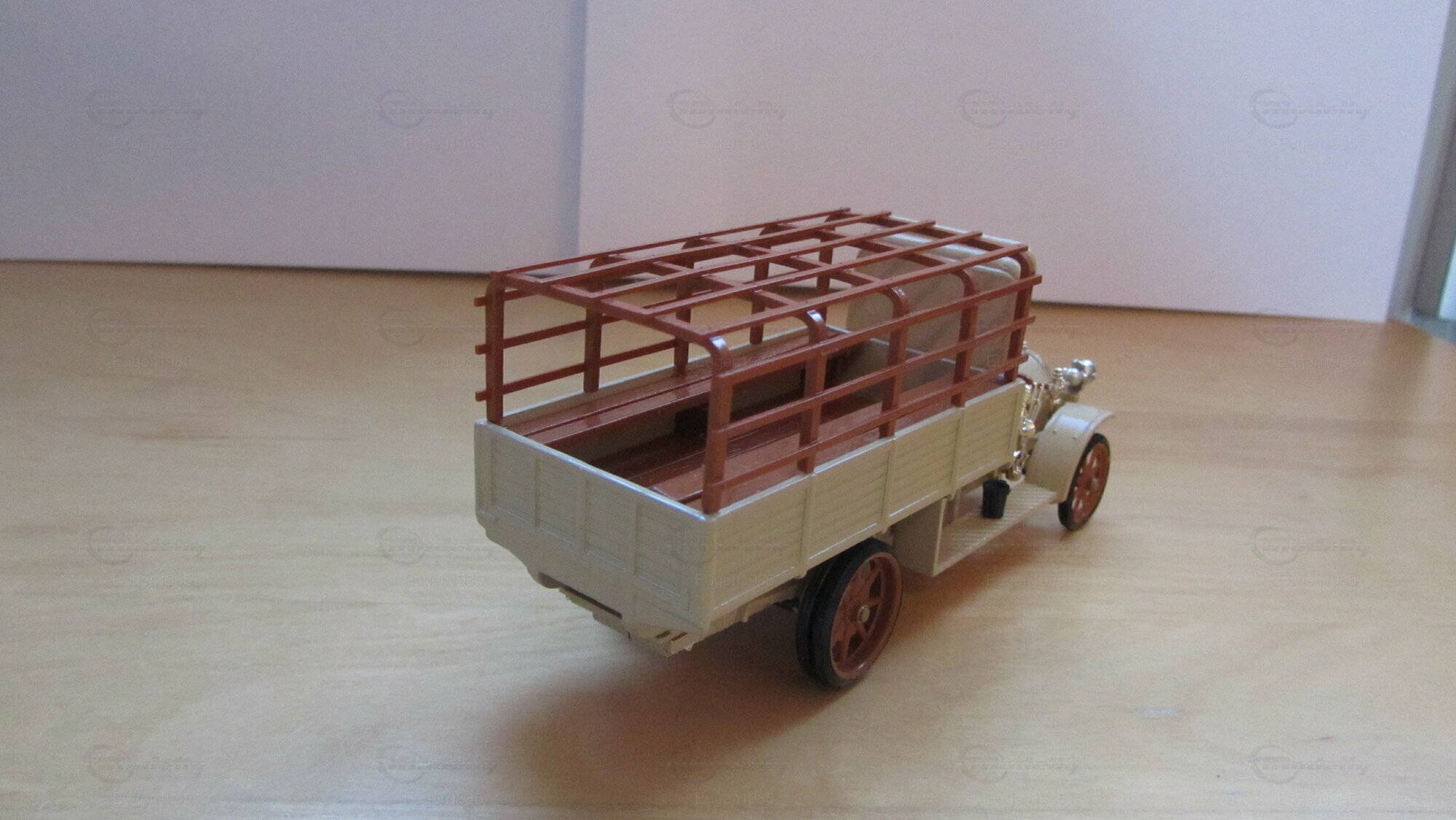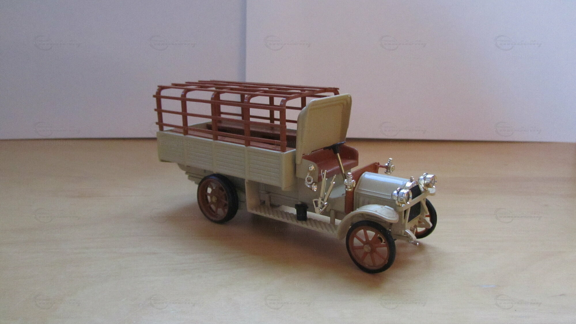 For model car collectors, the Fiat 18BL in 1/43 scale could be a highlight of the collection. This model, produced by Rio Models, is crafted from high-quality die-cast material, ensuring detail and durability. The model is a precise replica of the original, with the intricate paintwork and detailed elements like headlights, radiator, and cargo bed structure standing out. Detailed wood grain and metal connections on the cargo securing were meticulously replicated. This reproduction is part of the collection of Modelly member "Eugen1985," showcasing the attention to detail and authenticity that Rio Models brings to its products.