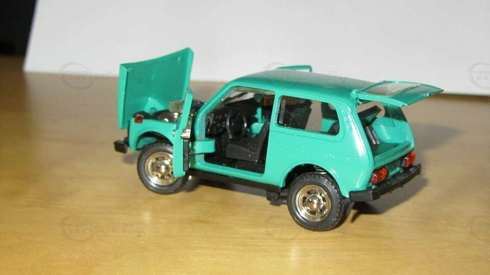 My second Lada Niva model in my collection in scale 1:43. Everything opens. The model has front steering wheels and suspension. The model is made in The Soviet Union