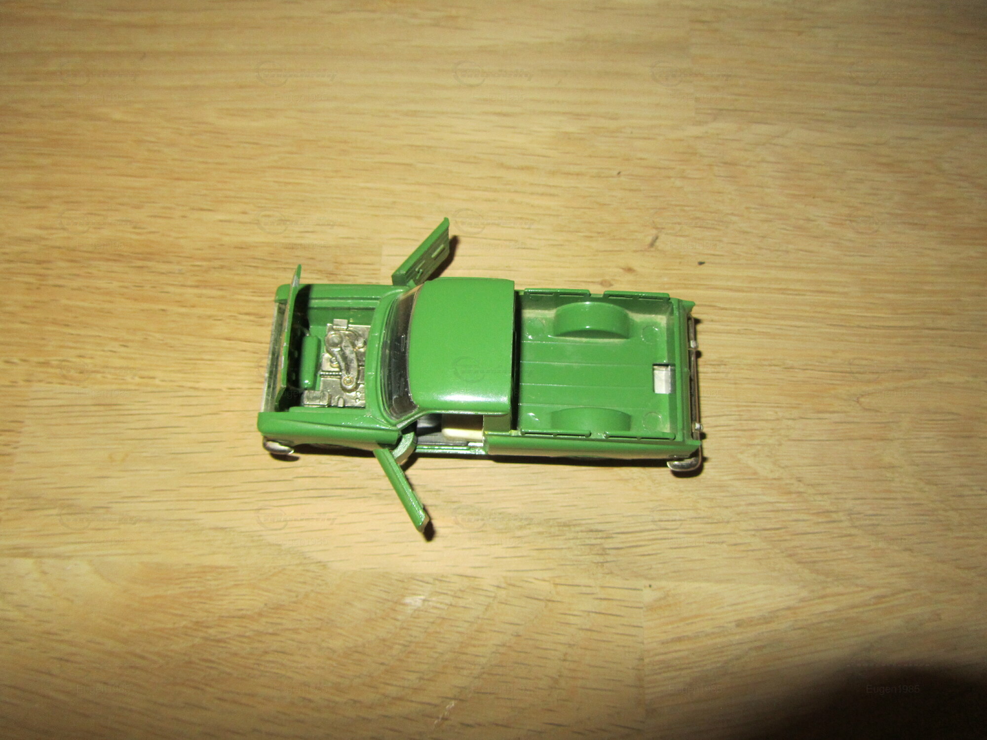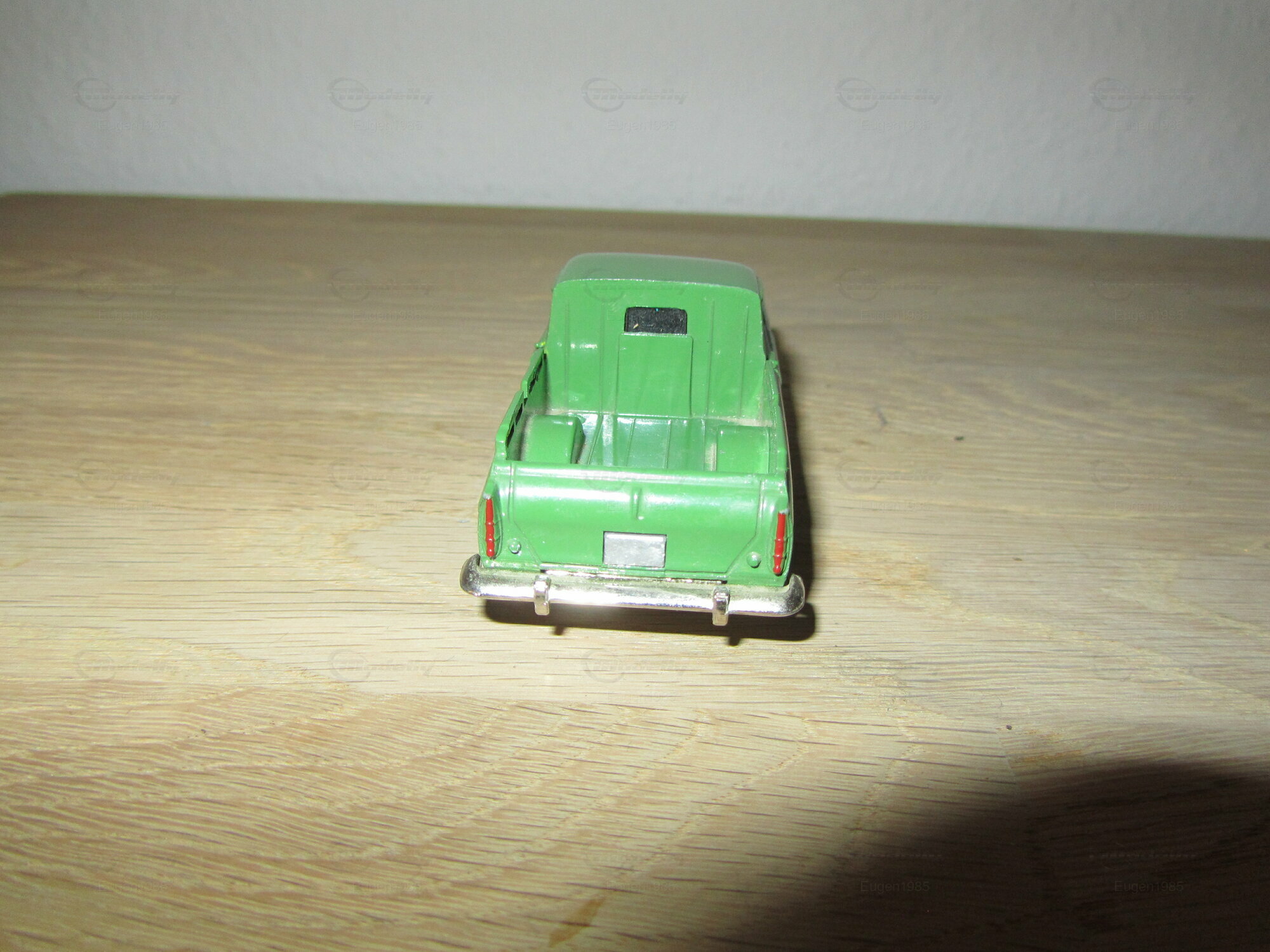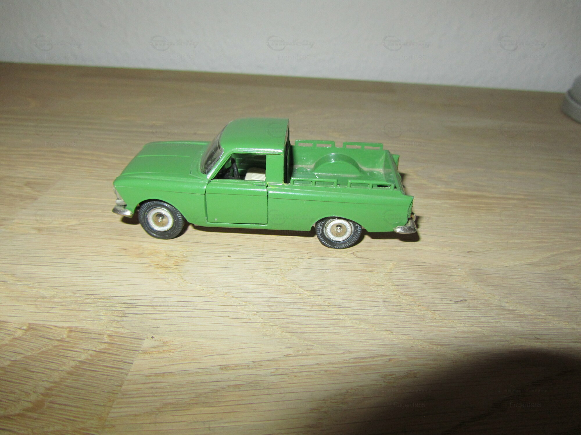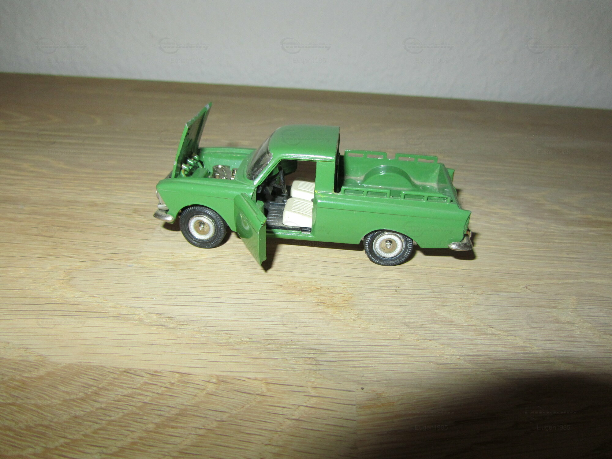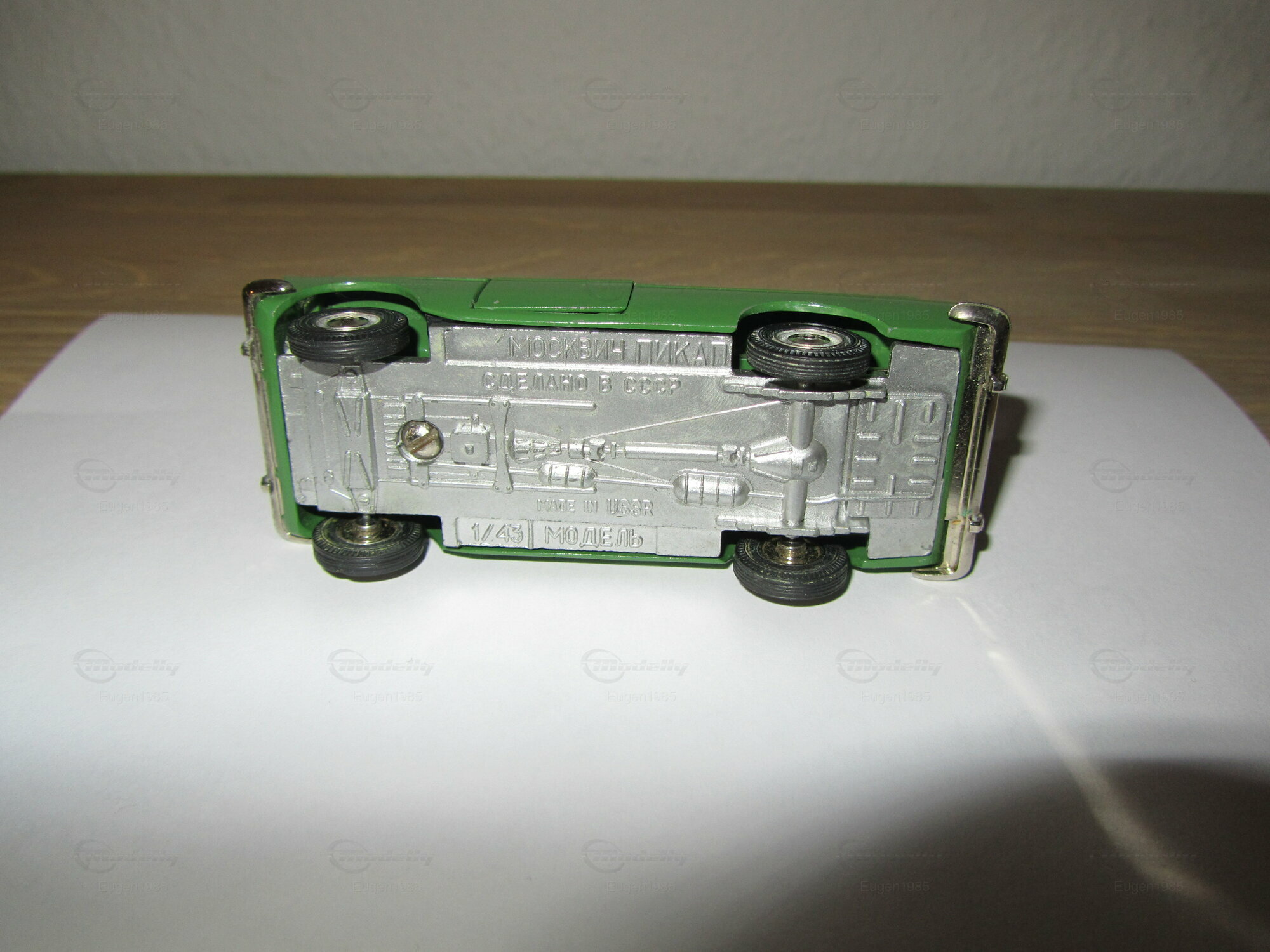 This is Moskvitch Pickup. The model is made by Saratov during The Soviet Union in scale 1:43. It has suspension, opening hood and front opening doors.