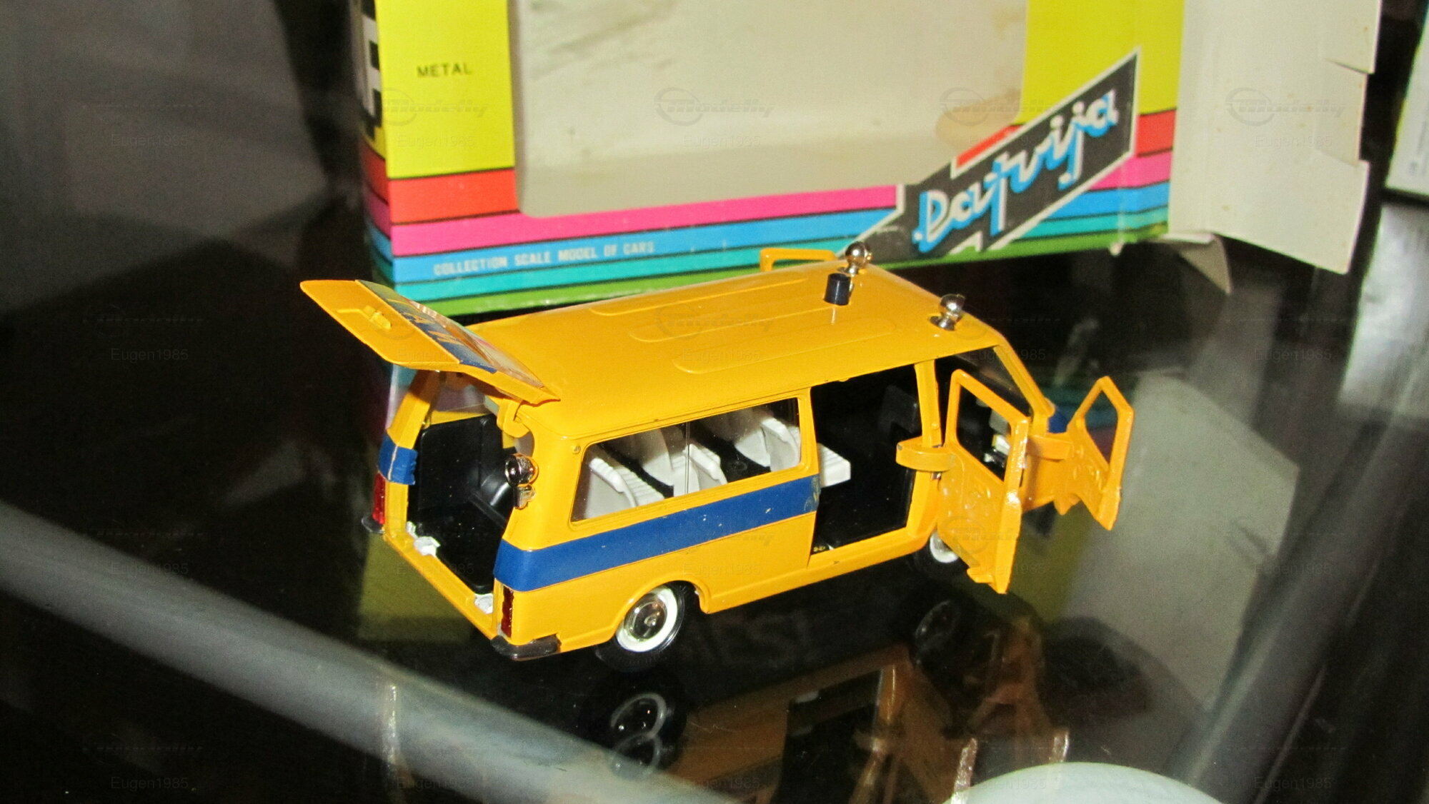 This is RAF 2203 Soviet Police. The model is made by Saratov in The Soviet Union in scale 1:43. Everything opens besides the hood.