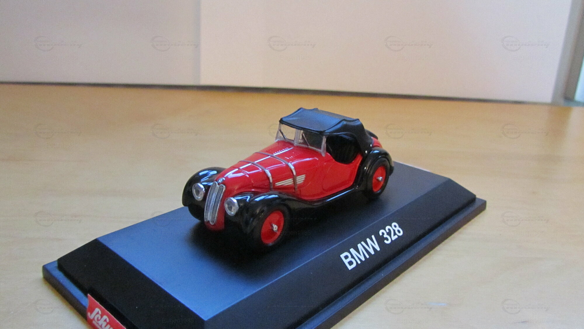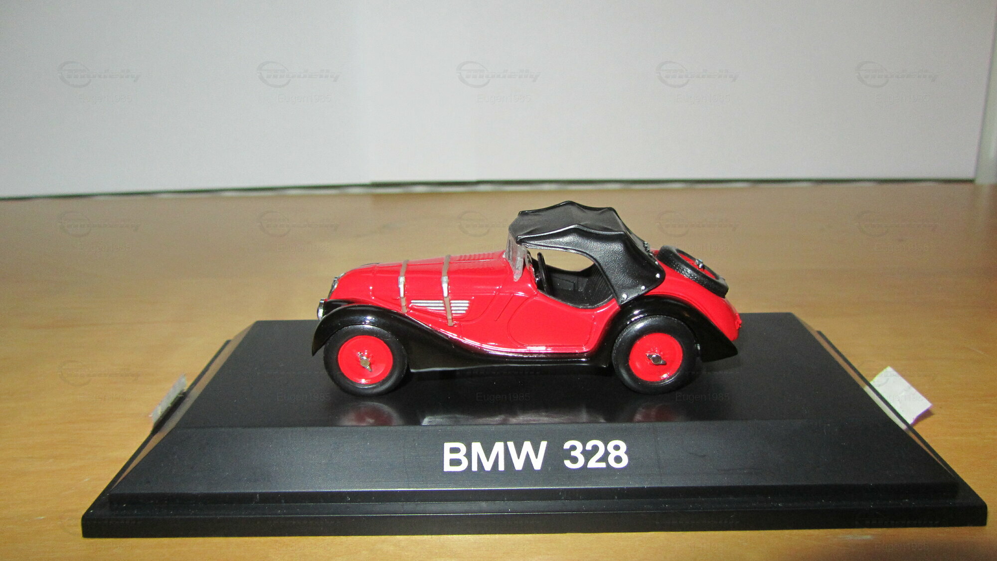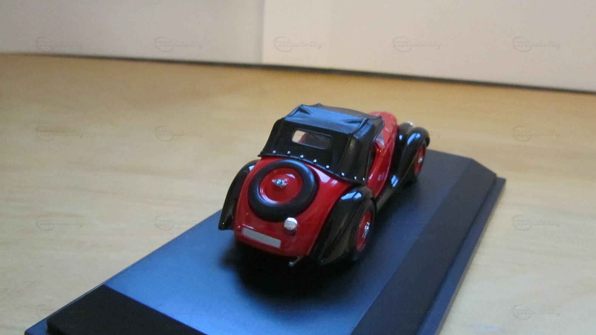 For model car enthusiasts worldwide, German manufacturer Schuco offers a meticulously crafted replica of this classic vehicle in a scale of 1/43. Crafted from durable die-cast material, this model showcases precise detailing and an accurate representation of the original's distinctive features. This particular model is part of the collection of Modelly member "Eugen1985". Featuring a vibrant red paint finish with black wheel arches and a black fabric top, the model closely mirrors the original car. The chrome accents on the headlights, grille, and hood hinges further enhance the car's elegant design.