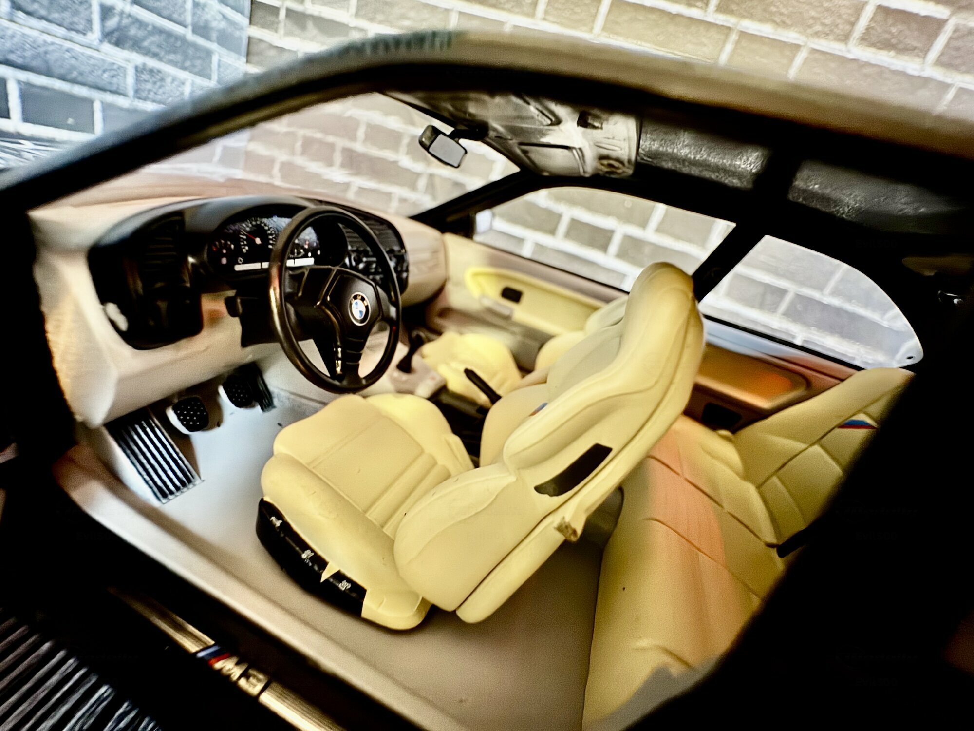 The model shown is based on the BMW E36 M3, the third-generation M3 built on the E36 3 Series platform. The E36 was produced from 1992 to 1999 and replaced the E30. The BMW E36 M3 was the first M3 that BMW offered more broadly as a sedan and convertible; the E30 predecessor was mainly known as a homologation coupe. The project’s chief designer was Claus Luthe, and the production E36 styling is partly credited to Boyke Boyer. The M-specific drivetrain work was done by BMW M GmbH, with engine development under Paul Rosche. The BMW E36 M3 shifted the model line away from pure homologation specials toward a high-performance road car with clear motorsport DNA. To place it in time: 1992, the launch year of the BMW E36 M3, saw things like the Maastricht Treaty being signed, the Summer Olympics in Barcelona, and Whitney Houston releasing “I Will Always Love You.” Just giving you a feel for the era and how old the car is.