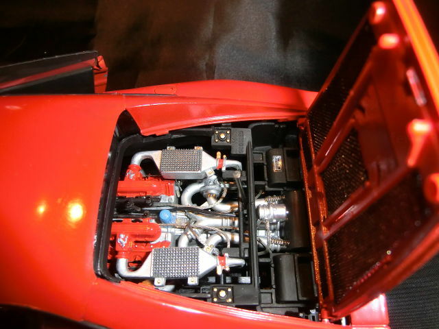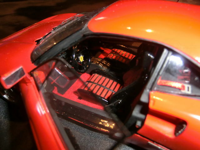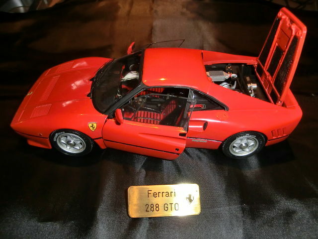 This model of the Ferrari 288 GTO by Bburago in a 1/18 scale is part of the collection of Modelly member “ferri599”. It represents an extremely detailed and carefully crafted miniature. This is a modified miniature not representing the product originally made by Bburago. Prominent details include intricately reproduced ventilation grilles on the hood and fenders, as well as extensively detailed wheels and brakes. The interior, with its visibly accurate red and black color scheme, faithfully replicates the seats and dashboard of the original. All these features make it a highly esteemed collector's item among model building enthusiasts worldwide.